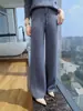 Pantalones anchos y gruesos de punto para mujer, otoño e invierno, cintura alta, holgados, rectos, informales, largos, con rayas verticales.