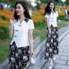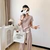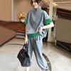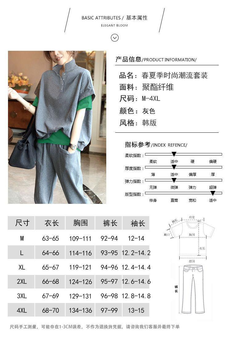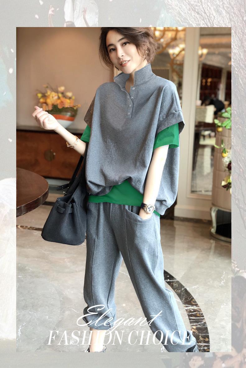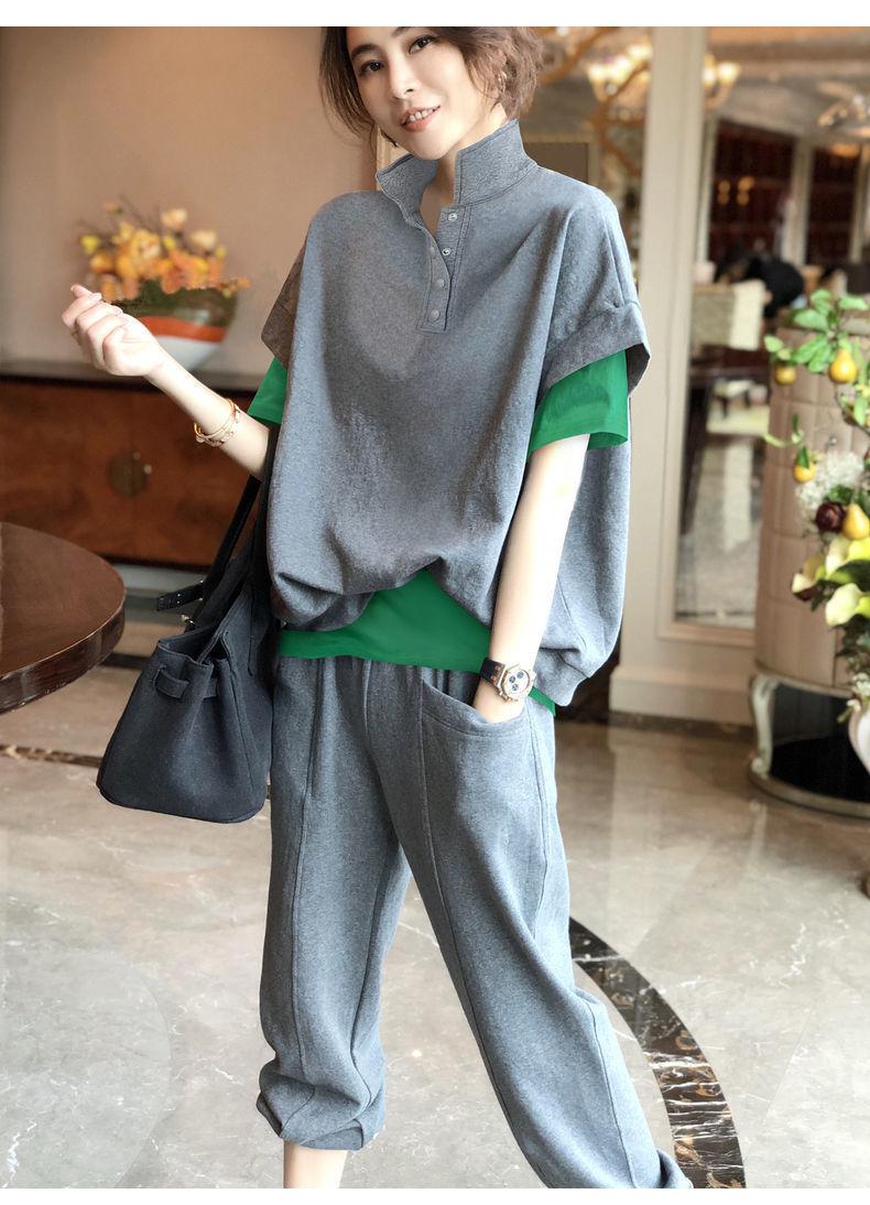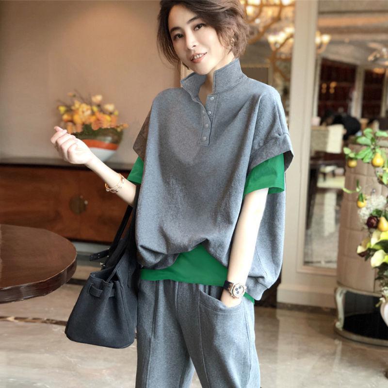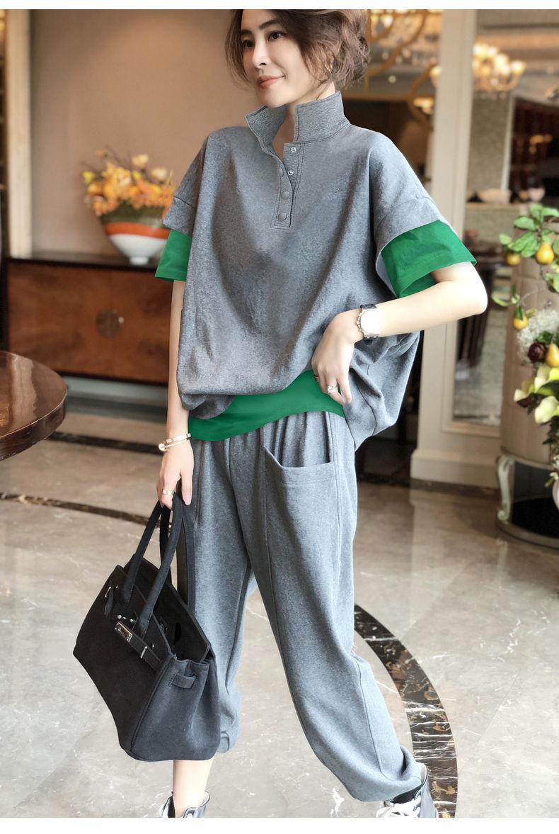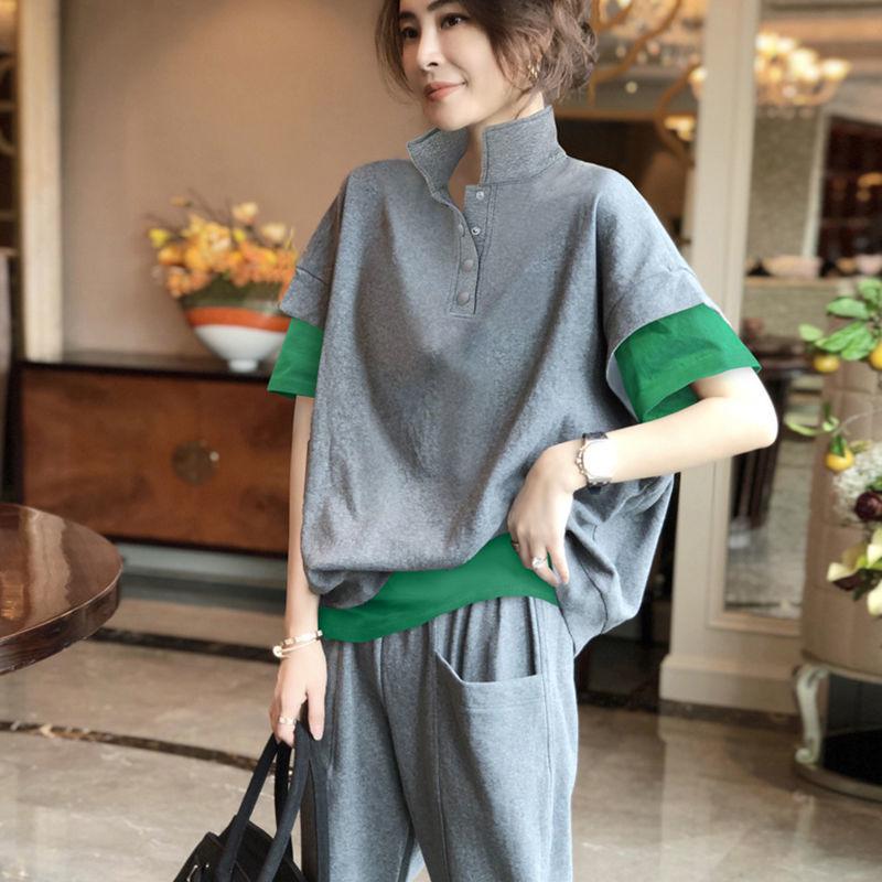 Traje de Moda Elegante Gris Falso de Dos Piezas de Manga Corta para Mujer Nuevo de Verano Transfronterizo Holgado Reductor de Edad Casual de Dos Piezas Traje de Moda