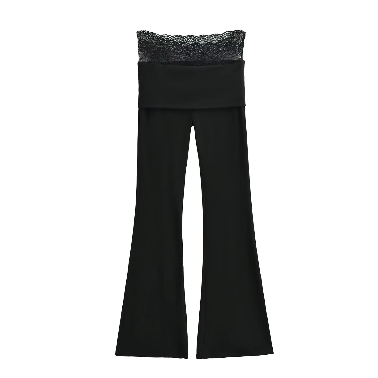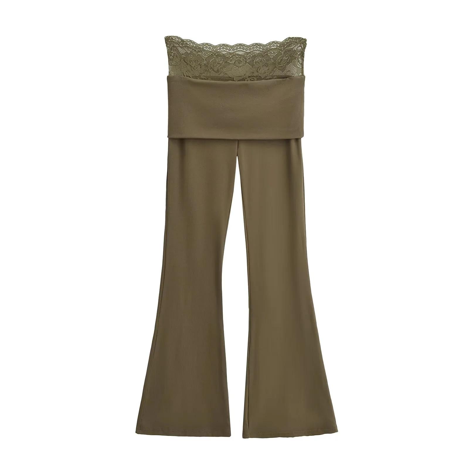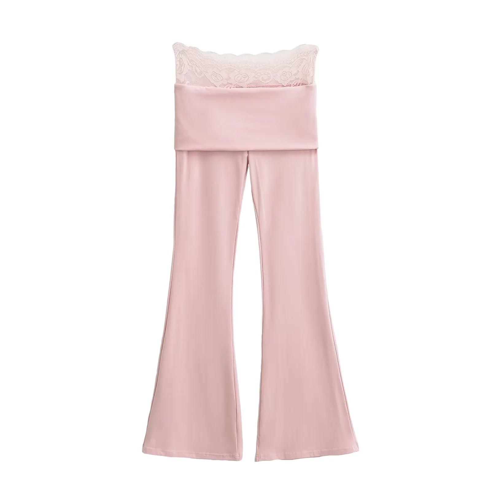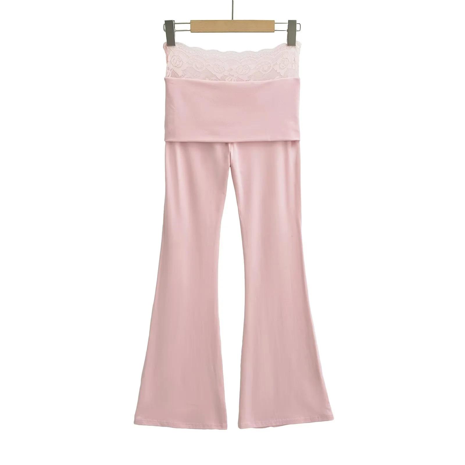 Pantalones Slip de Cintura Alta Ajustados con Encaje para Mujer Verano Nuevo Pantalones Acampanados Ajustados a la Cadera Pantalones Casuales