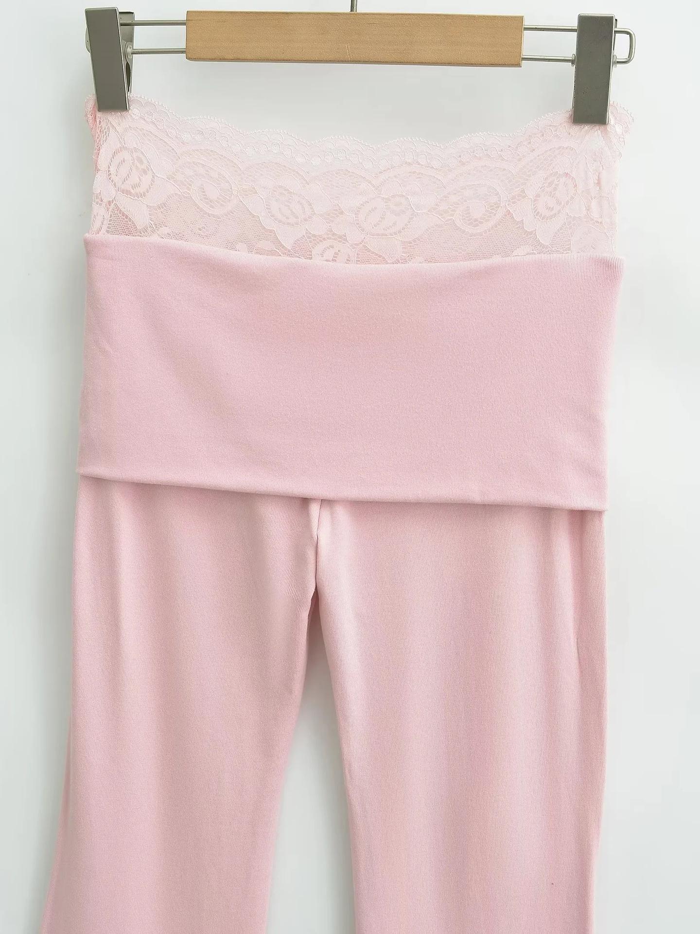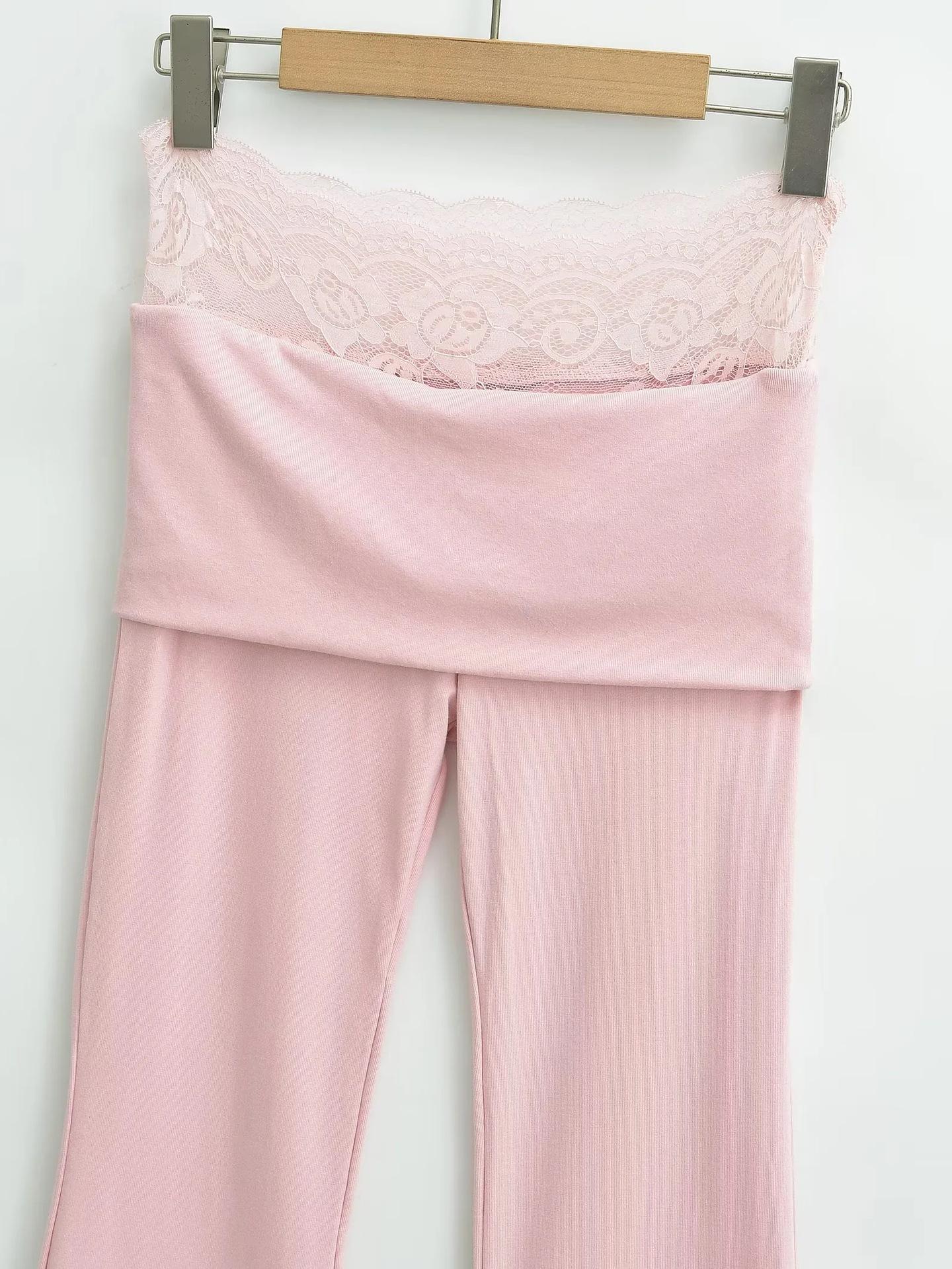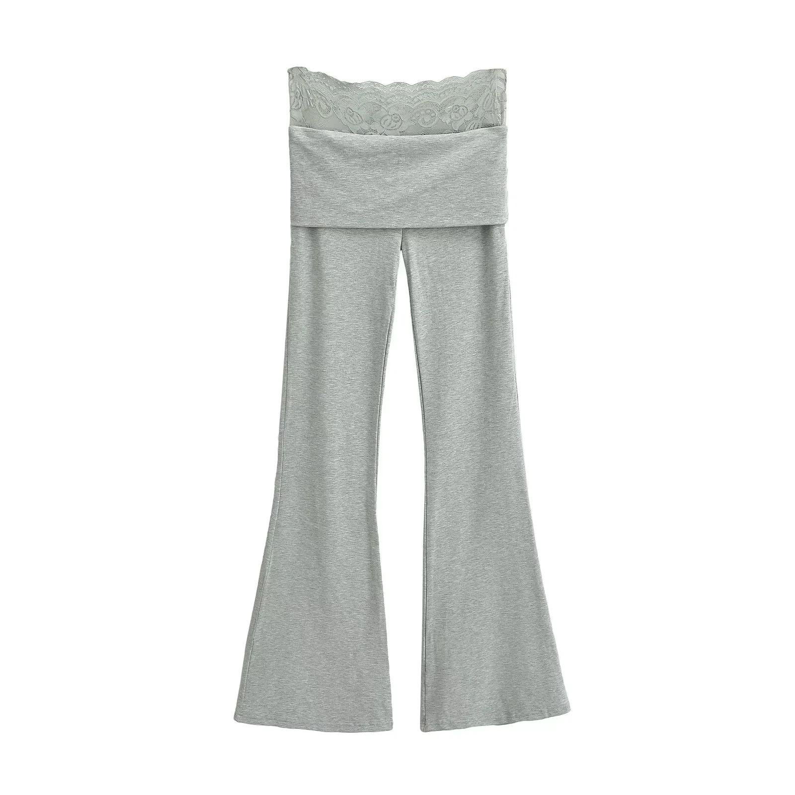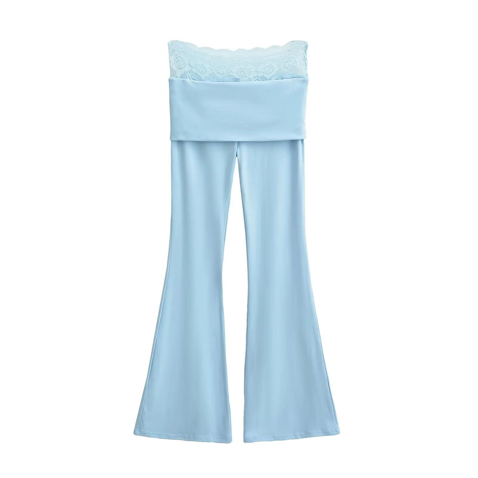 Pantalones Slip de Cintura Alta Ajustados con Encaje para Mujer Verano Nuevo Pantalones Acampanados Ajustados a la Cadera Pantalones Casuales