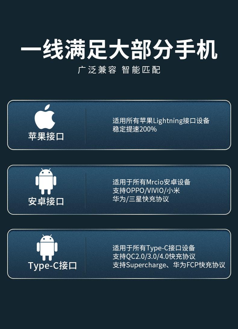 Apple white 0.6m [apple+android+type-c] three levels of fast charging at the same time, Magic black 1.2m [appl...
