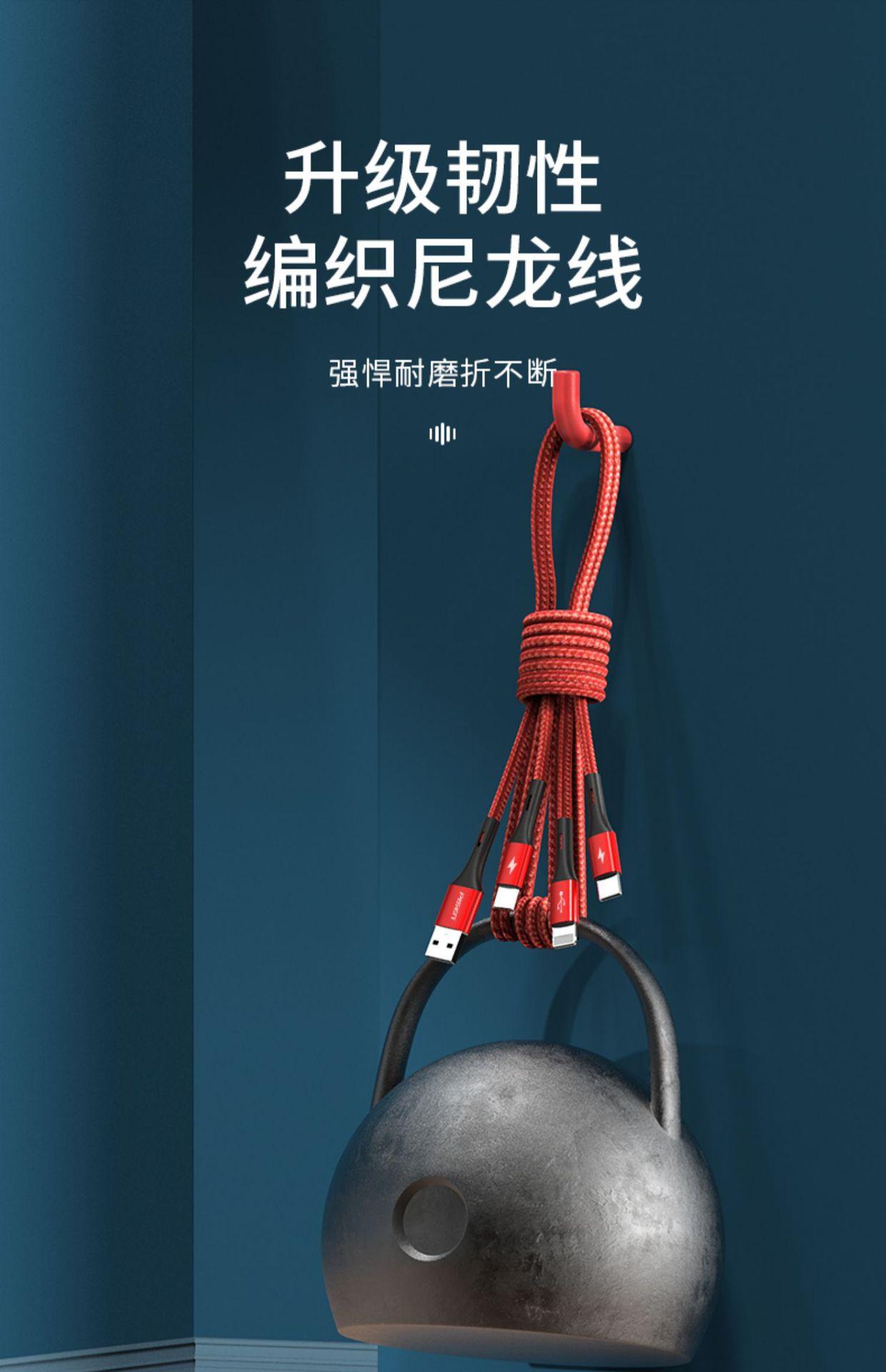 Chinese red 1.5 m [Apple + Android + type-c] bold wire core★Safe fast charging does not hurt the machine Three-in-one