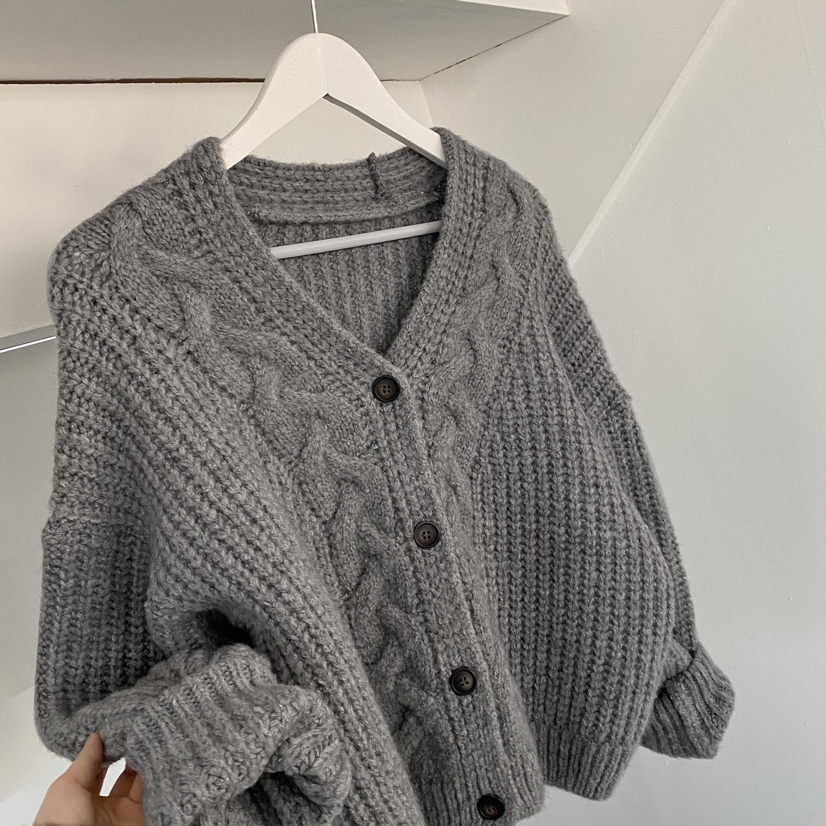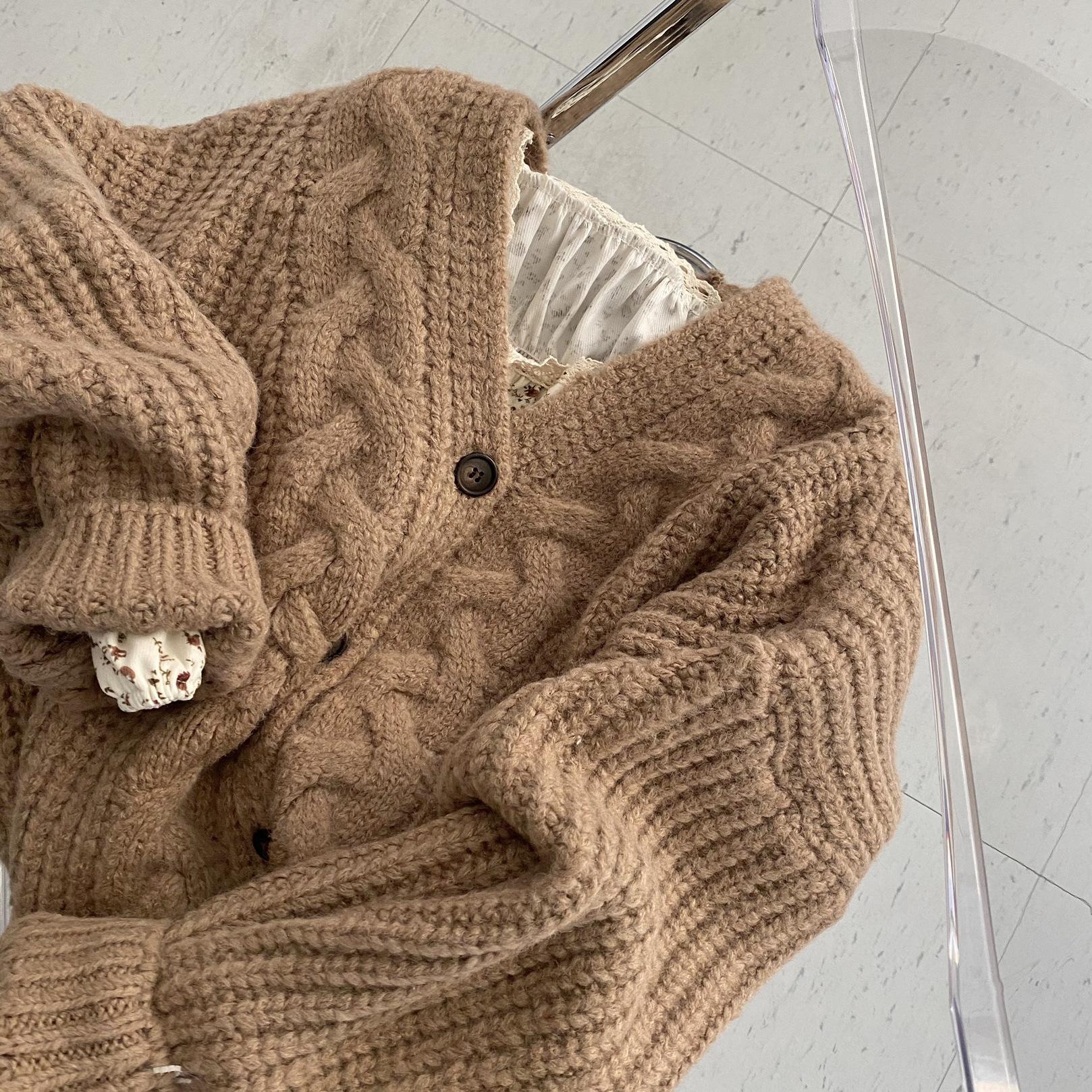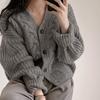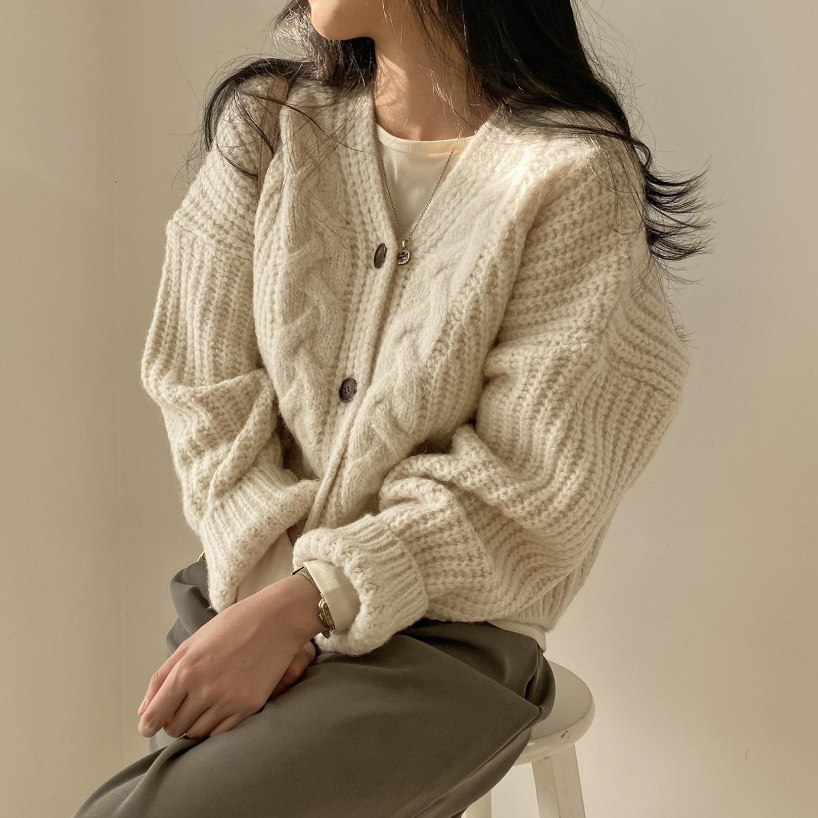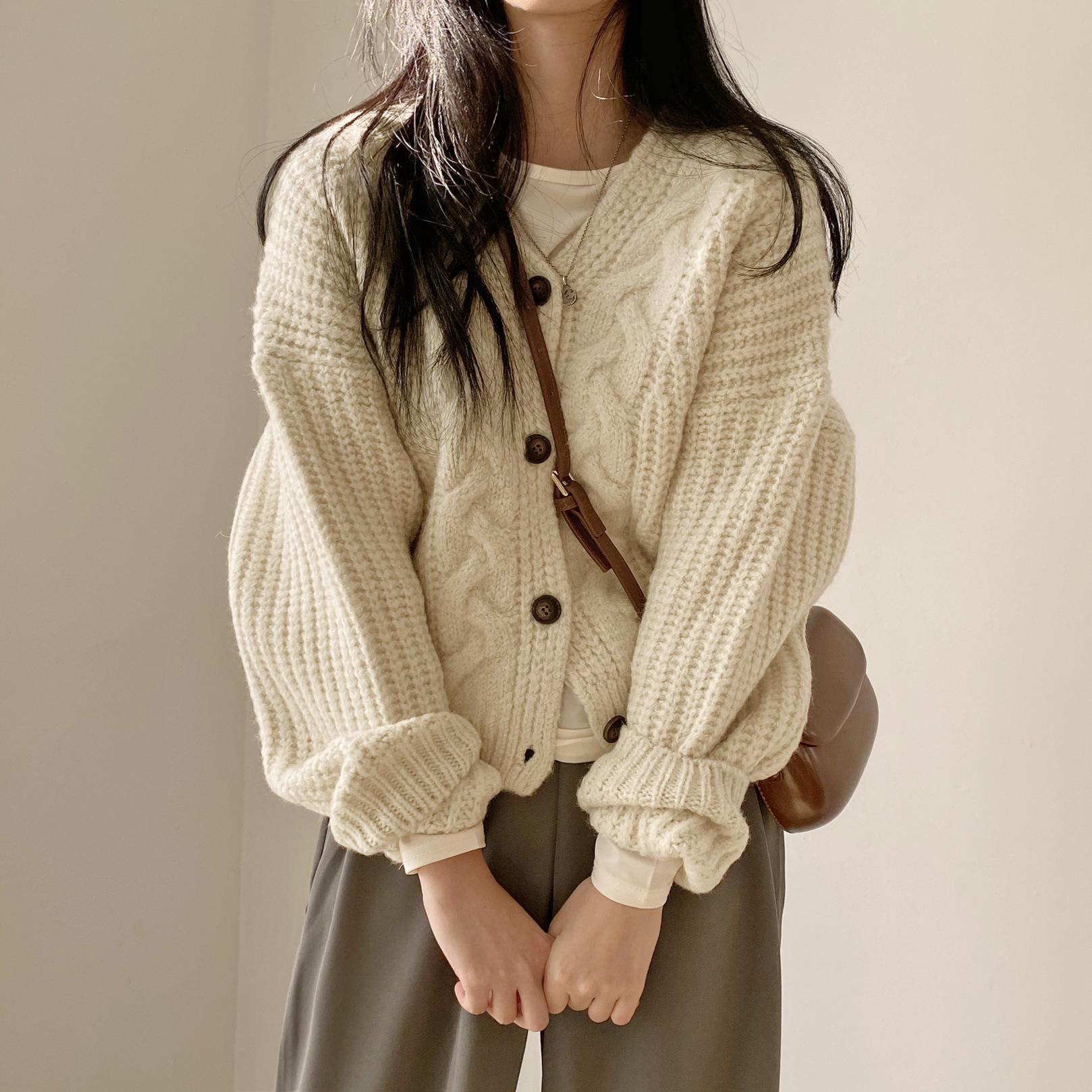 Abrigo de Suéter Grueso Cálido Trenzado de Otoño e Invierno para Mujer Estilo Perezoso Holgado Elegante Combinable Cárdigan Corto de Punto Moderno