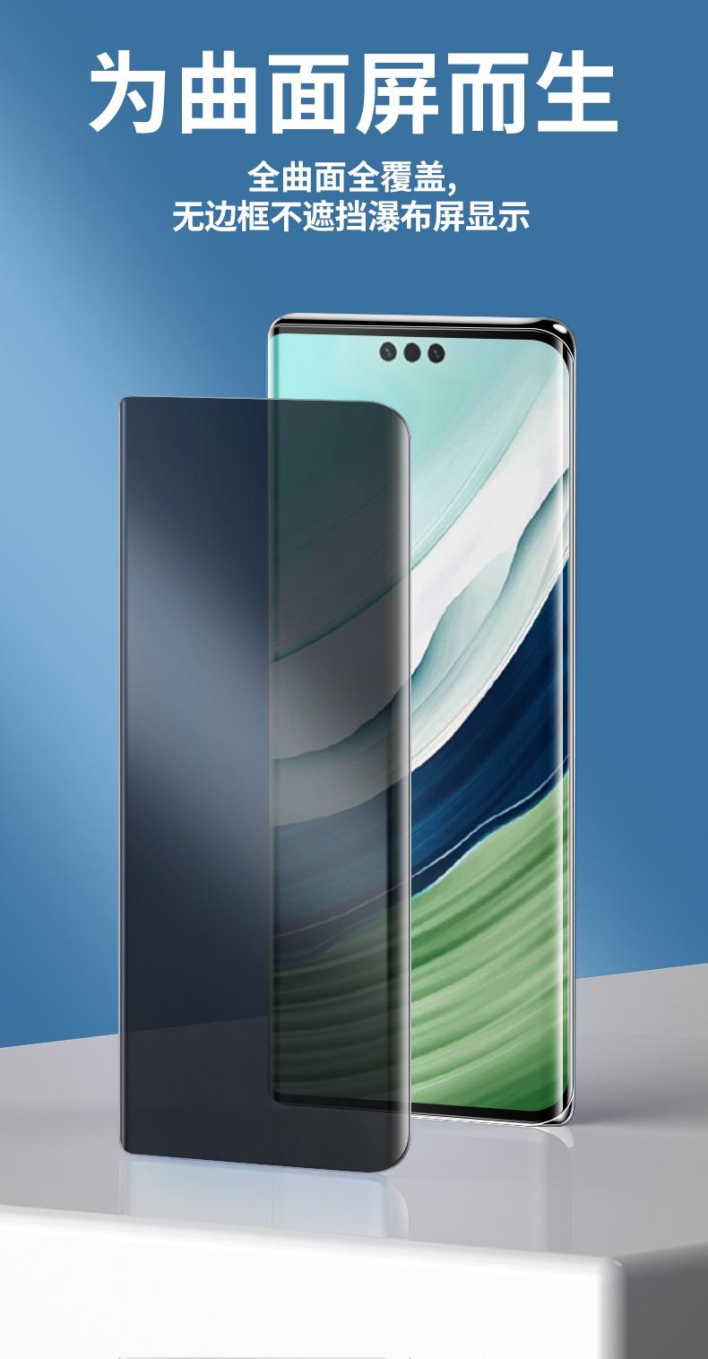 Película templada para Huawei Mate60pro, superficie curva, 70pro, luz azul, 50pro, anti-espía, UV, adhesiva completa, RS