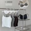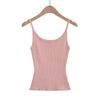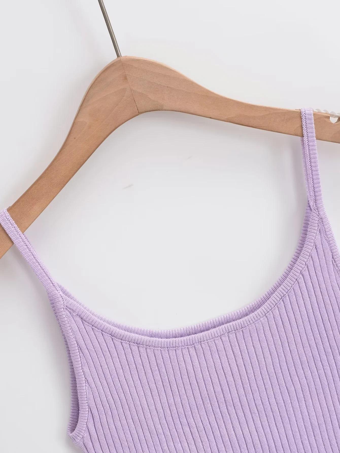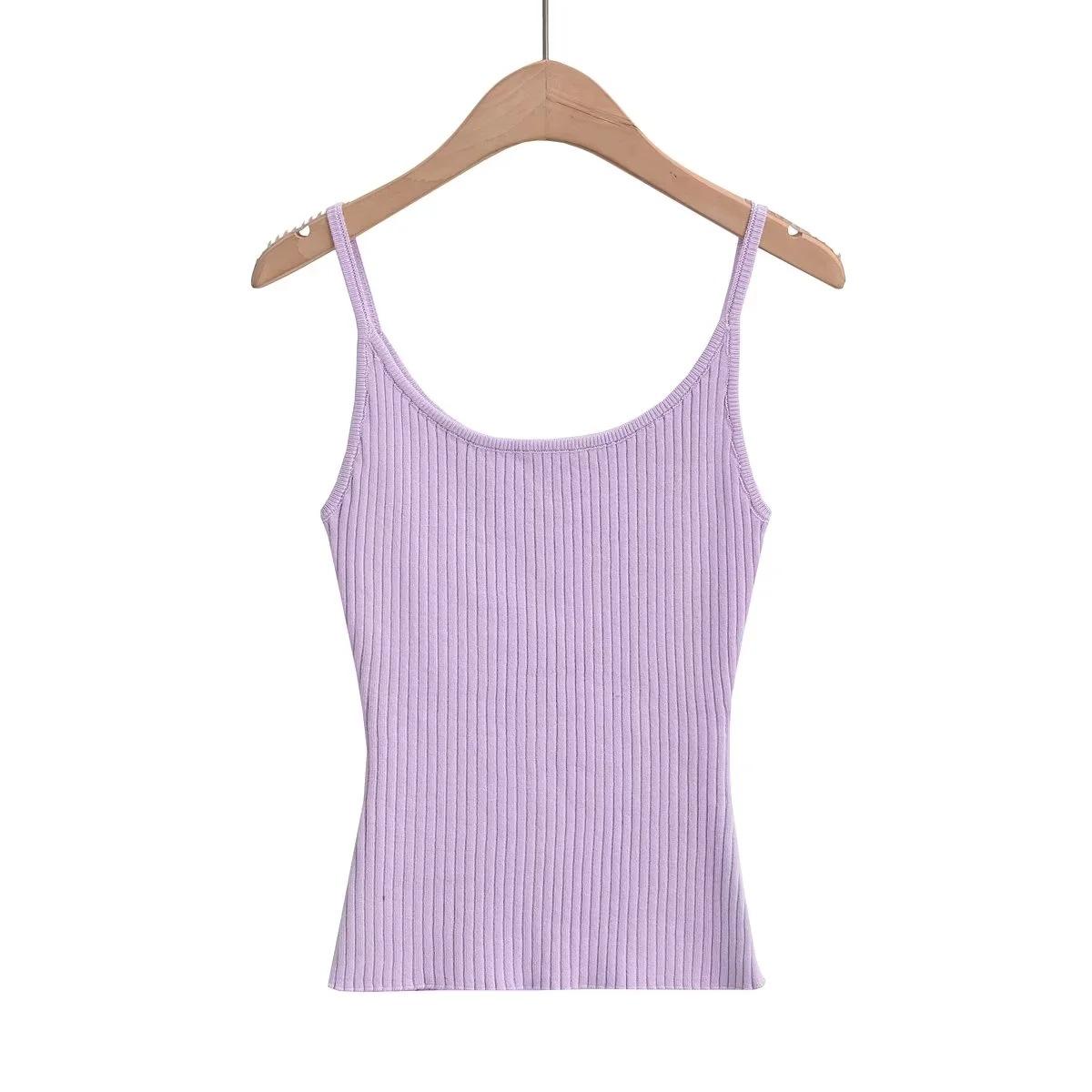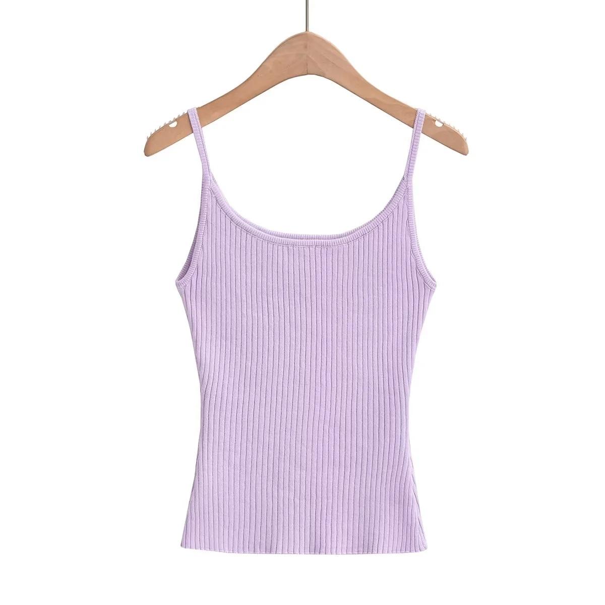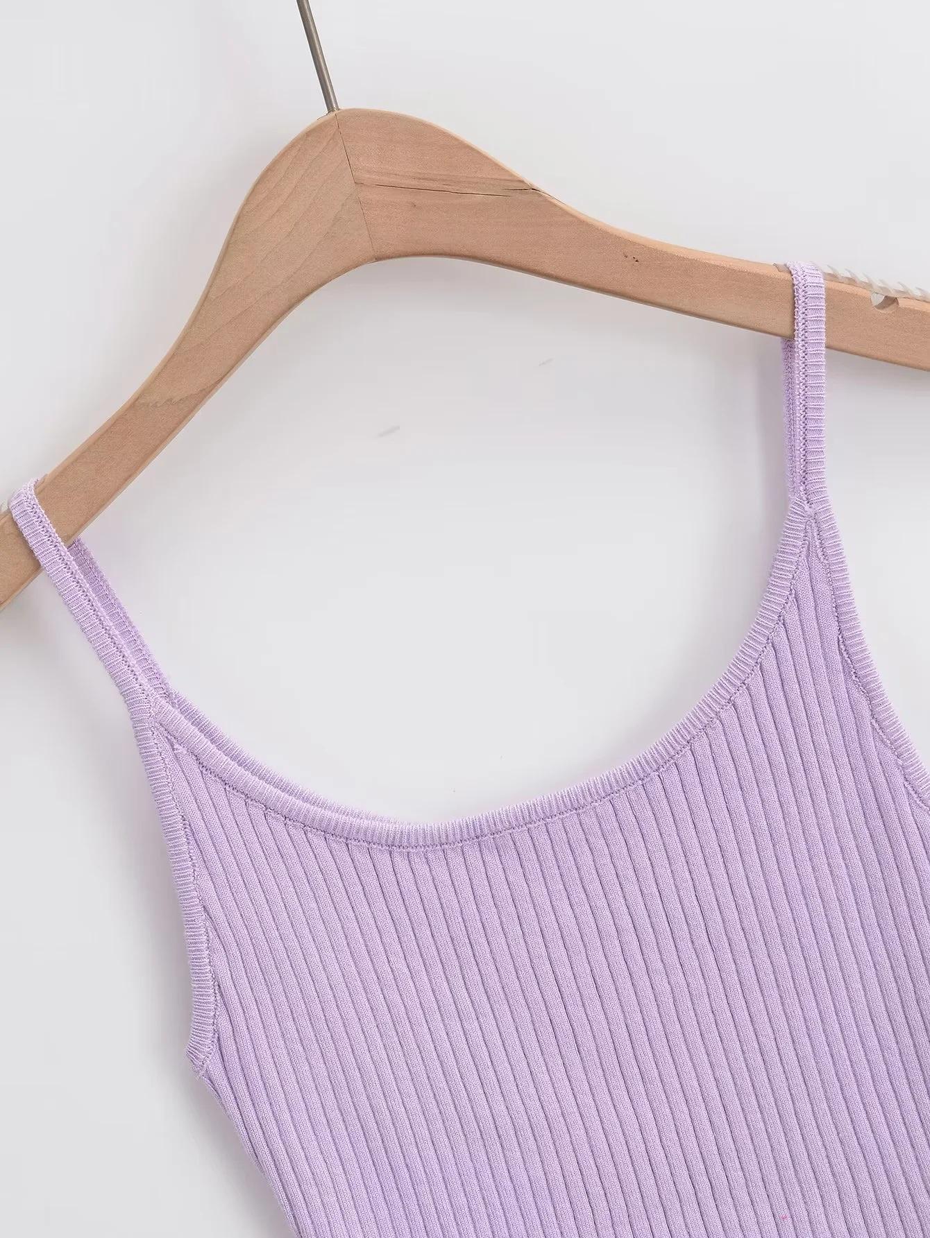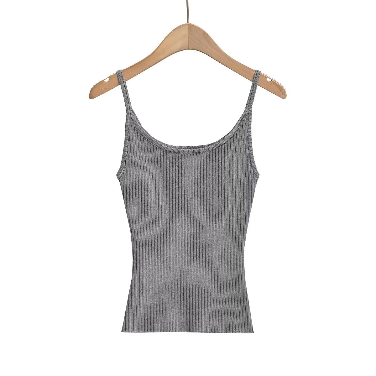 Top de tirantes de estilo europeo y americano de moda de verano 2023, nuevo top de tirantes de punto de color liso con escote en U y corte entallado vertical.