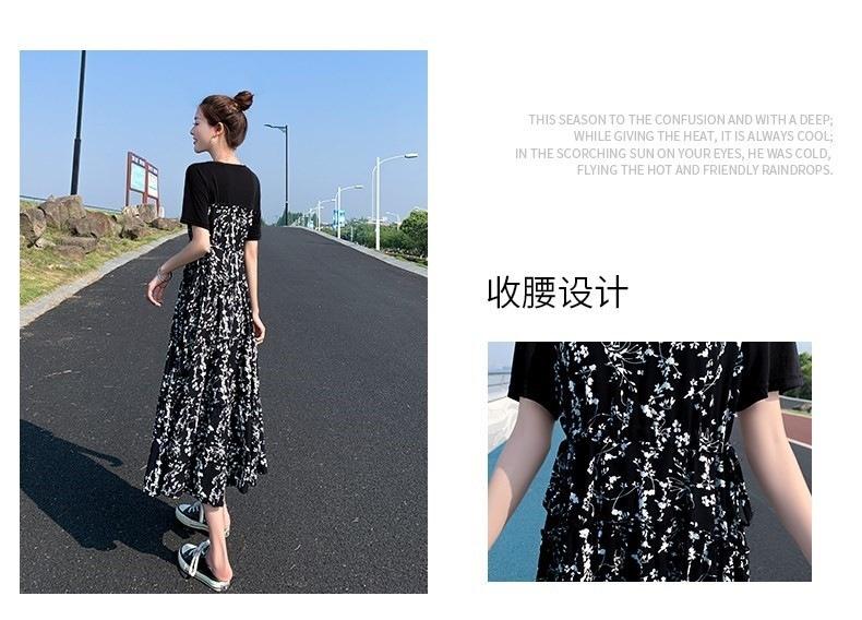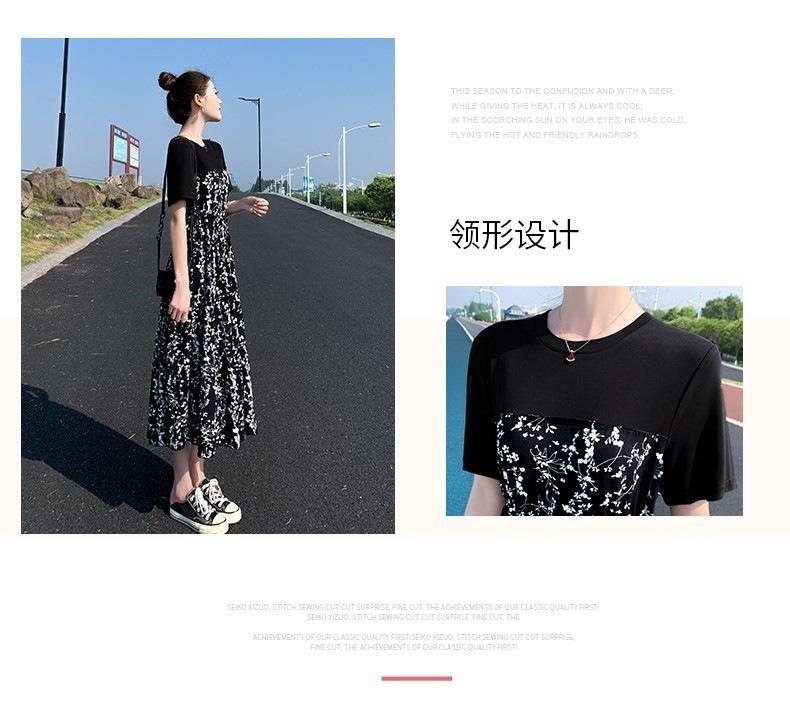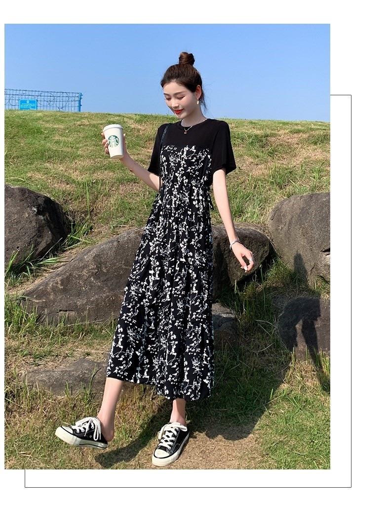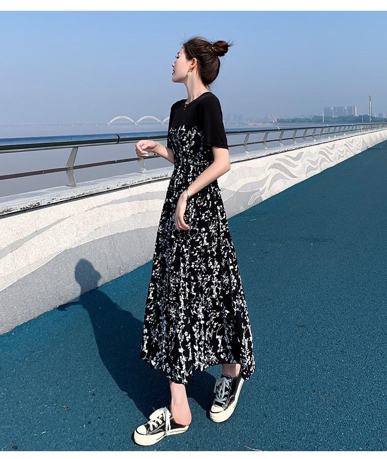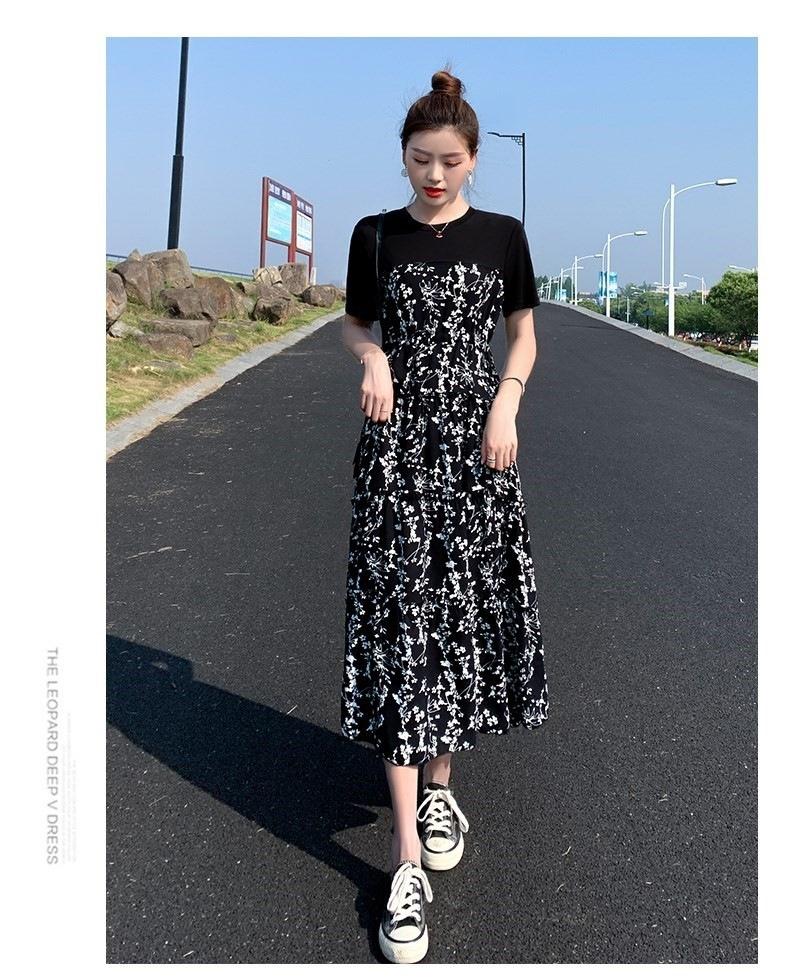 Vestido de Mujer 2025 Verano Nuevo Estilo Estilo Hepburn Largo Medio Empalmado Falda Floral Temperamento Cintura Alta Slim Falda Larga Verano