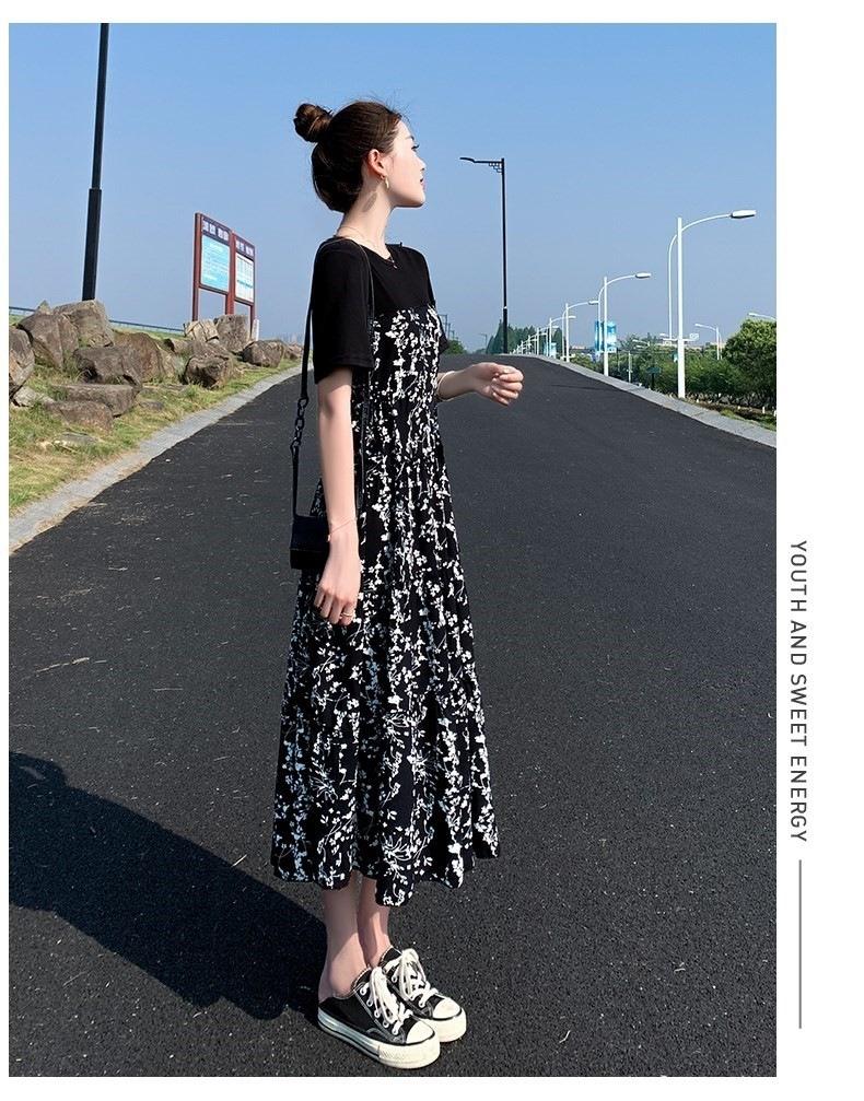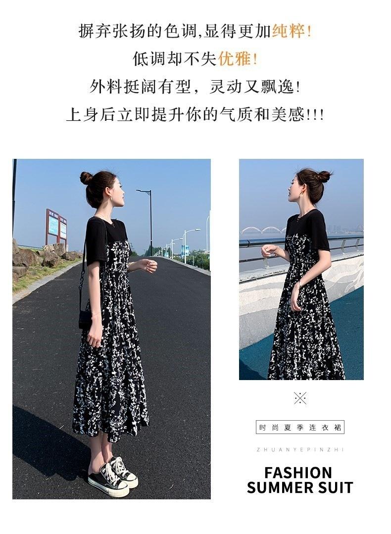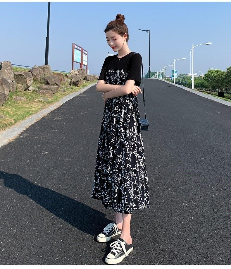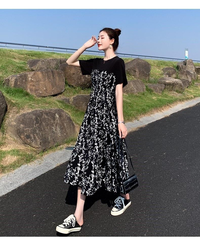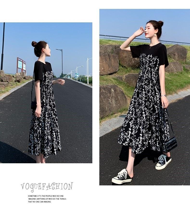 Vestido de Mujer 2025 Verano Nuevo Estilo Estilo Hepburn Largo Medio Empalmado Falda Floral Temperamento Cintura Alta Slim Falda Larga Verano