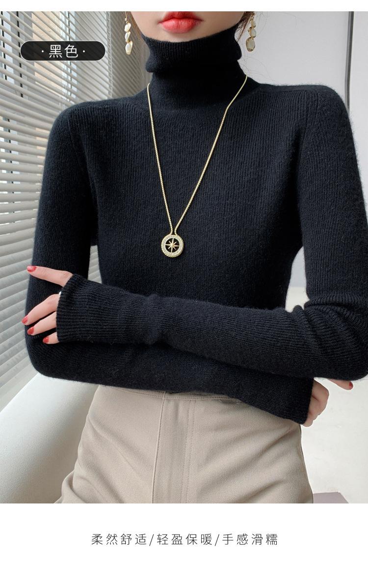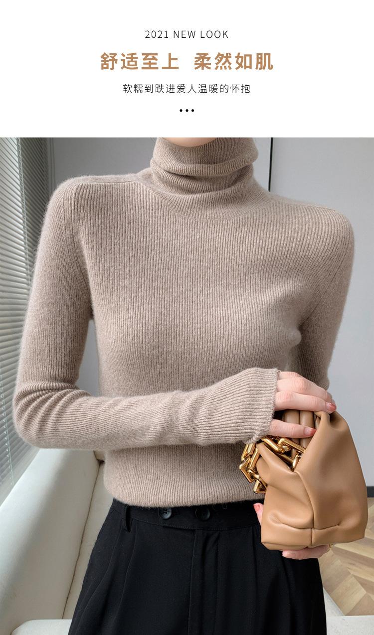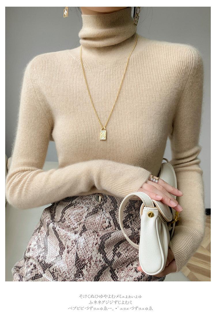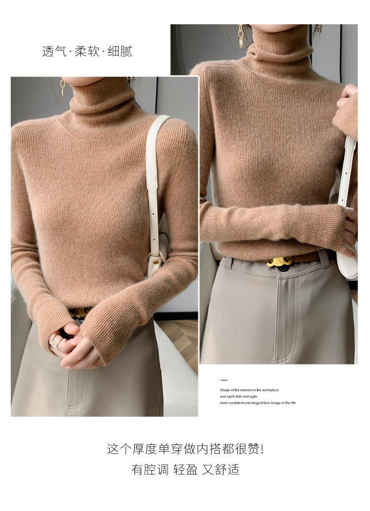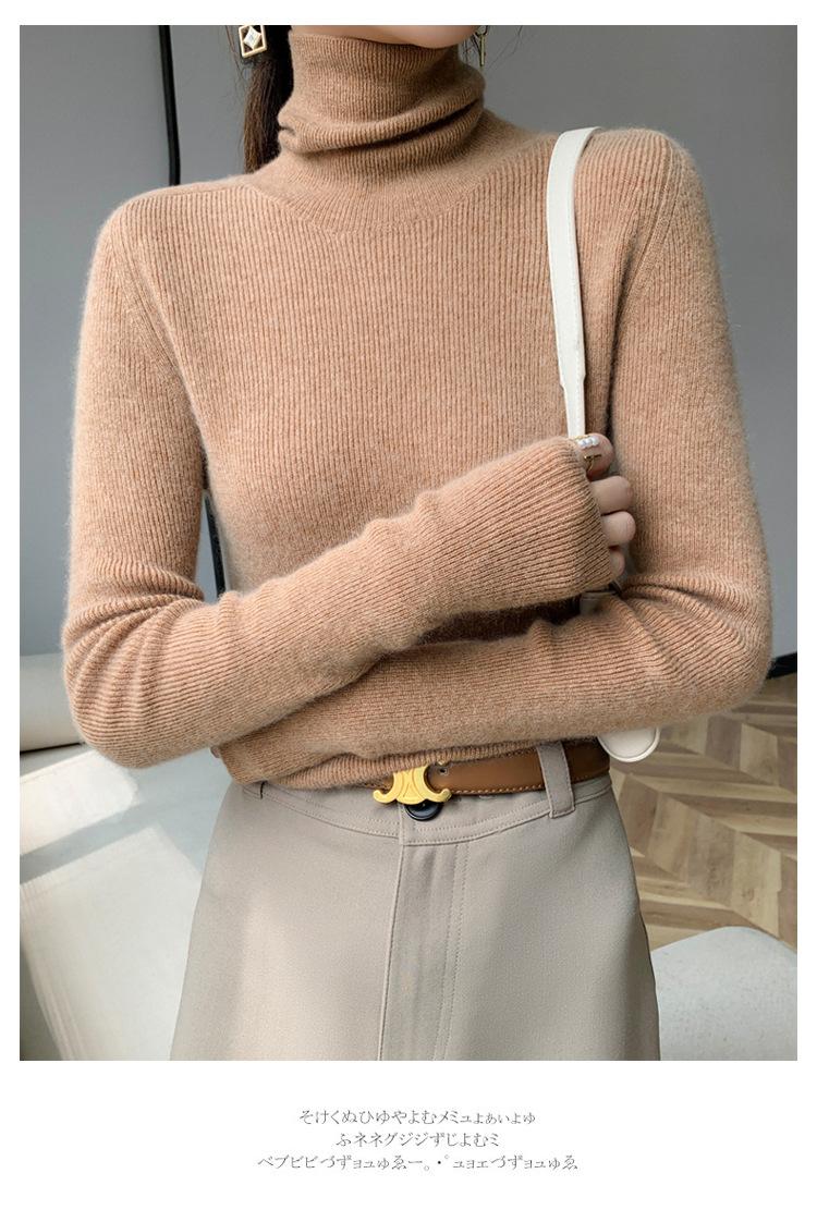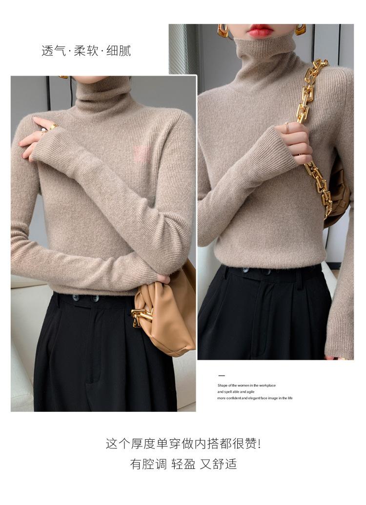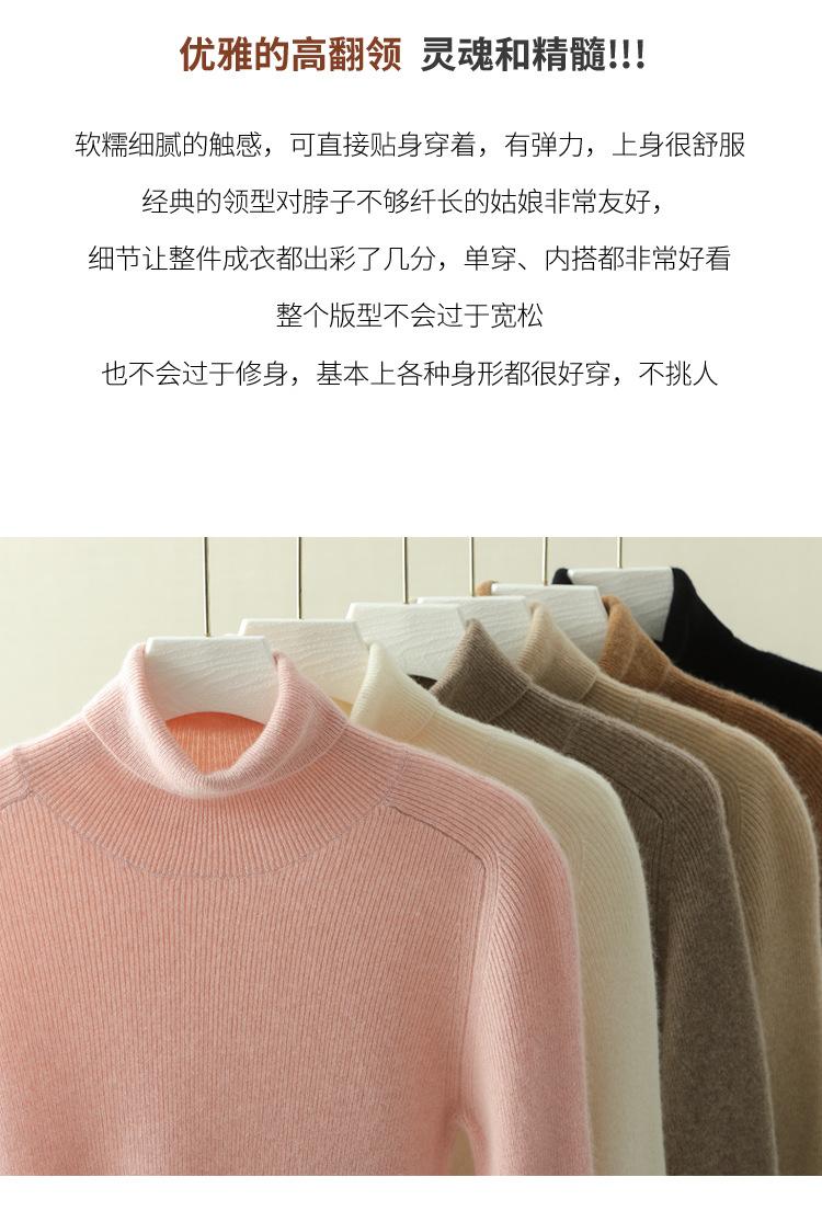 Suéter de Cachemira de Cuello Alto para Mujer 100% Cachemira Pura Corte Ajustado Tejido Otoño e Invierno Camiseta Inferior Suéter Pulóver para Mujer
