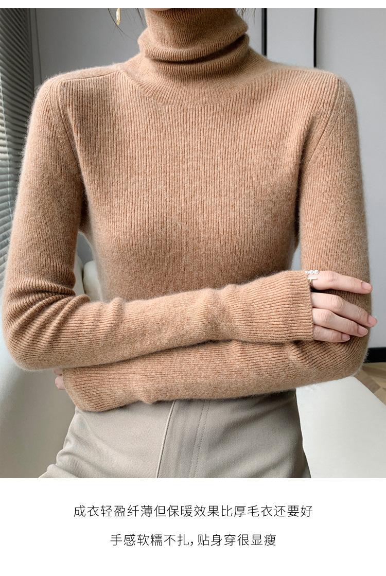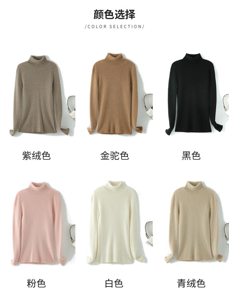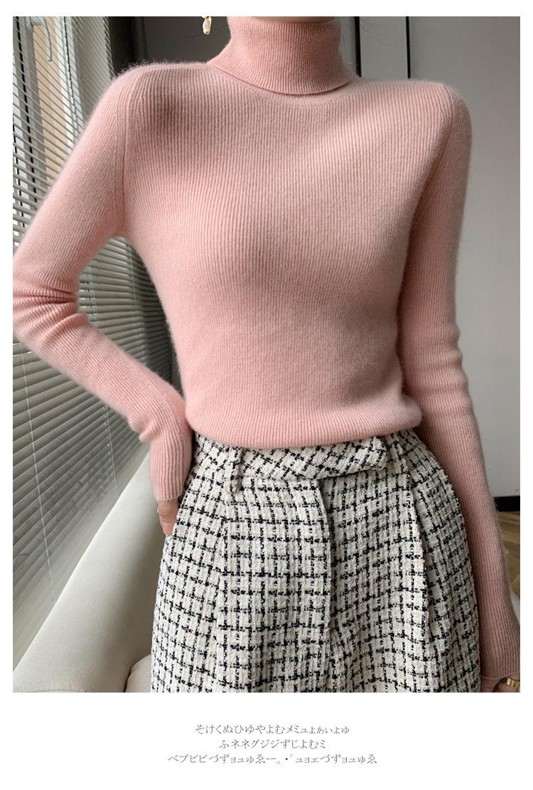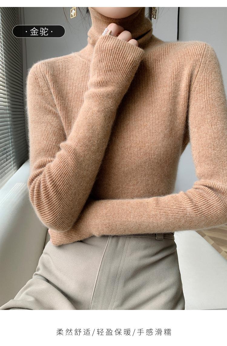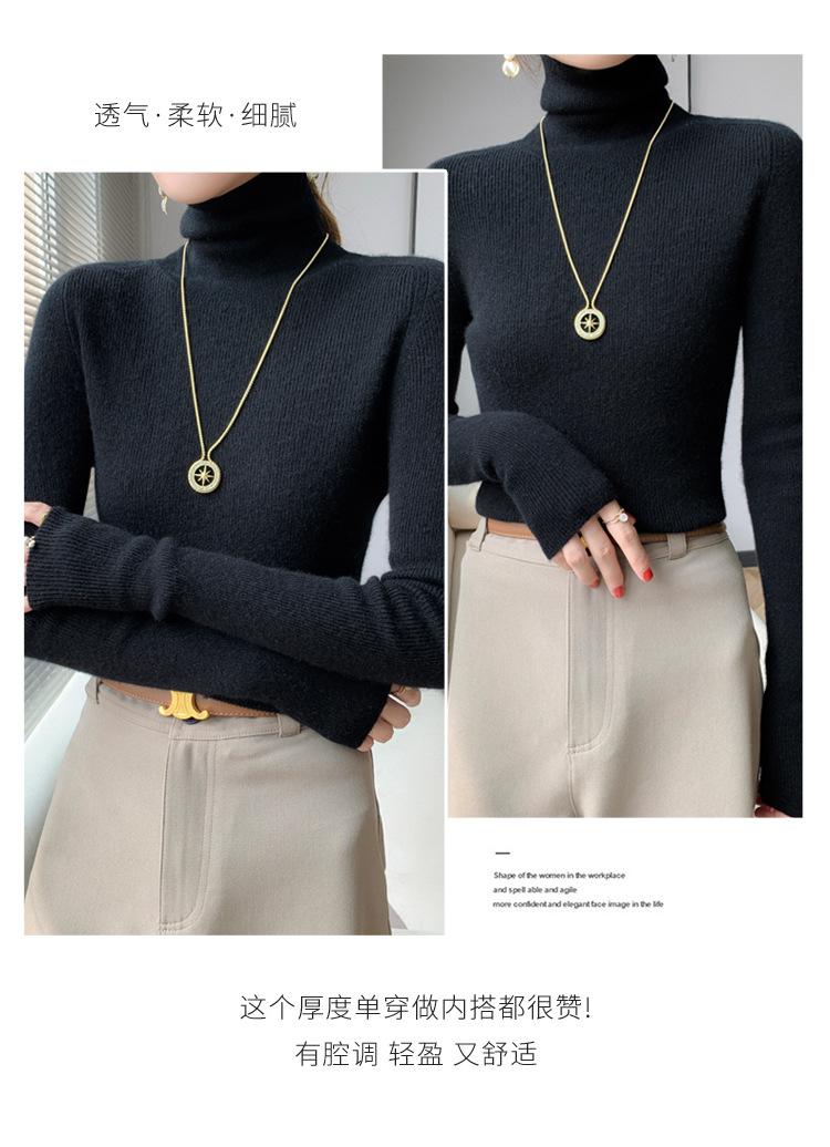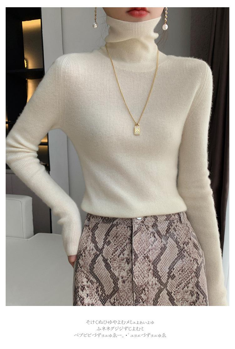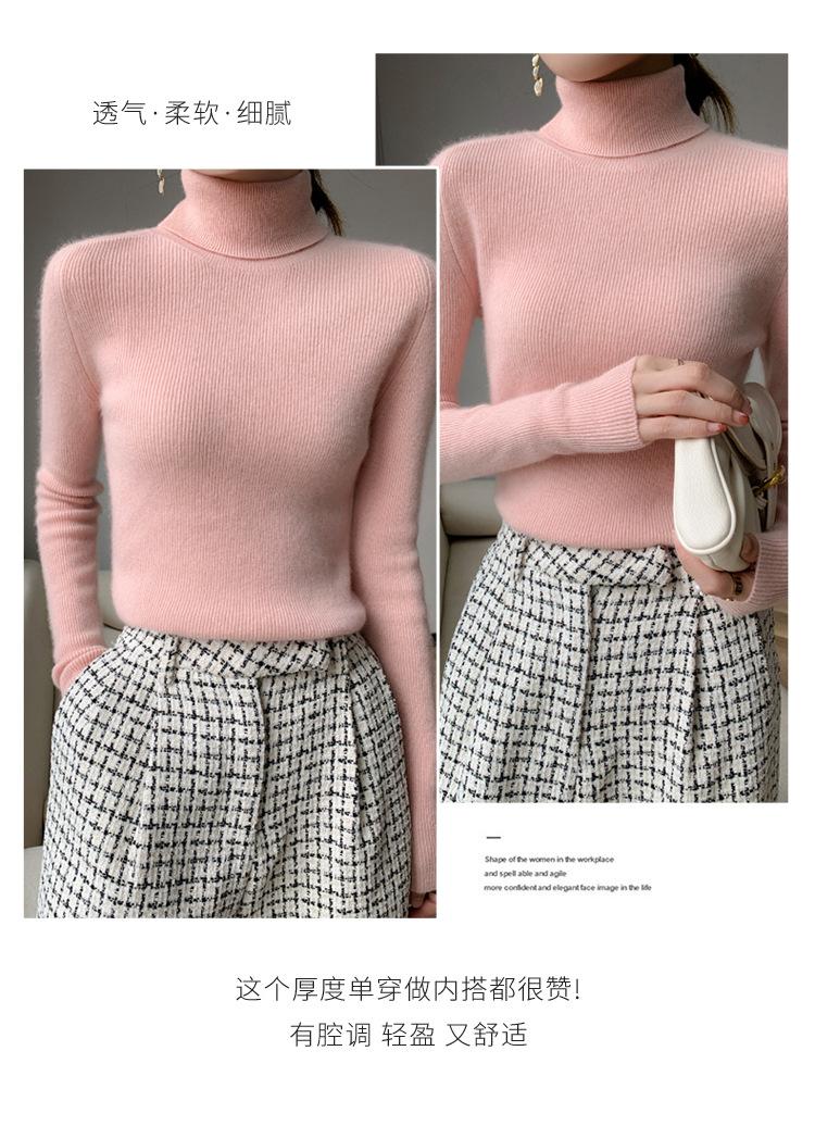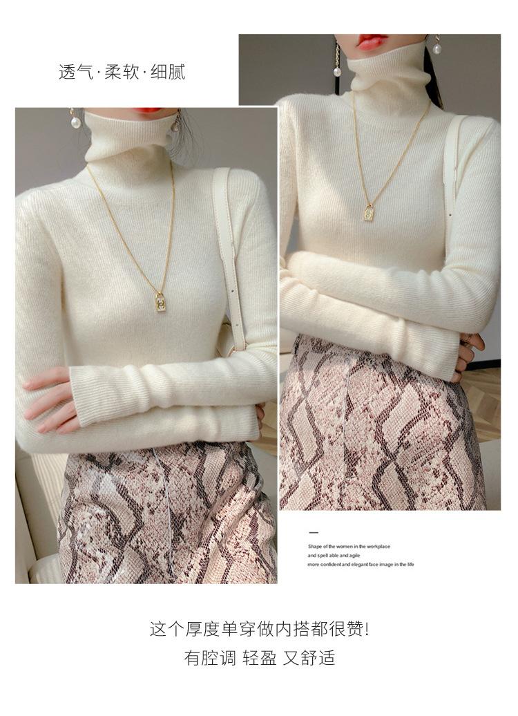 Suéter de Cachemira de Cuello Alto para Mujer 100% Cachemira Pura Corte Ajustado Tejido Otoño e Invierno Camiseta Inferior Suéter Pulóver para Mujer