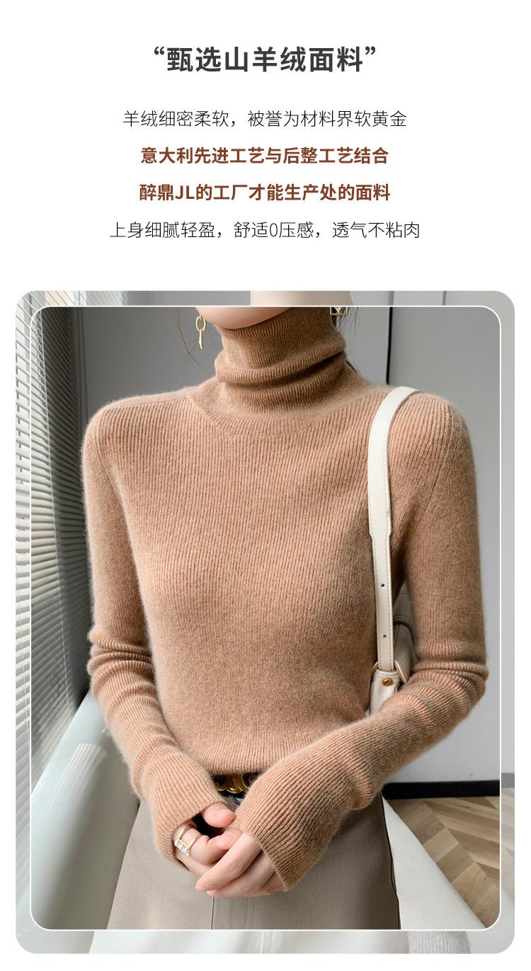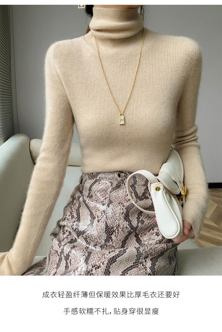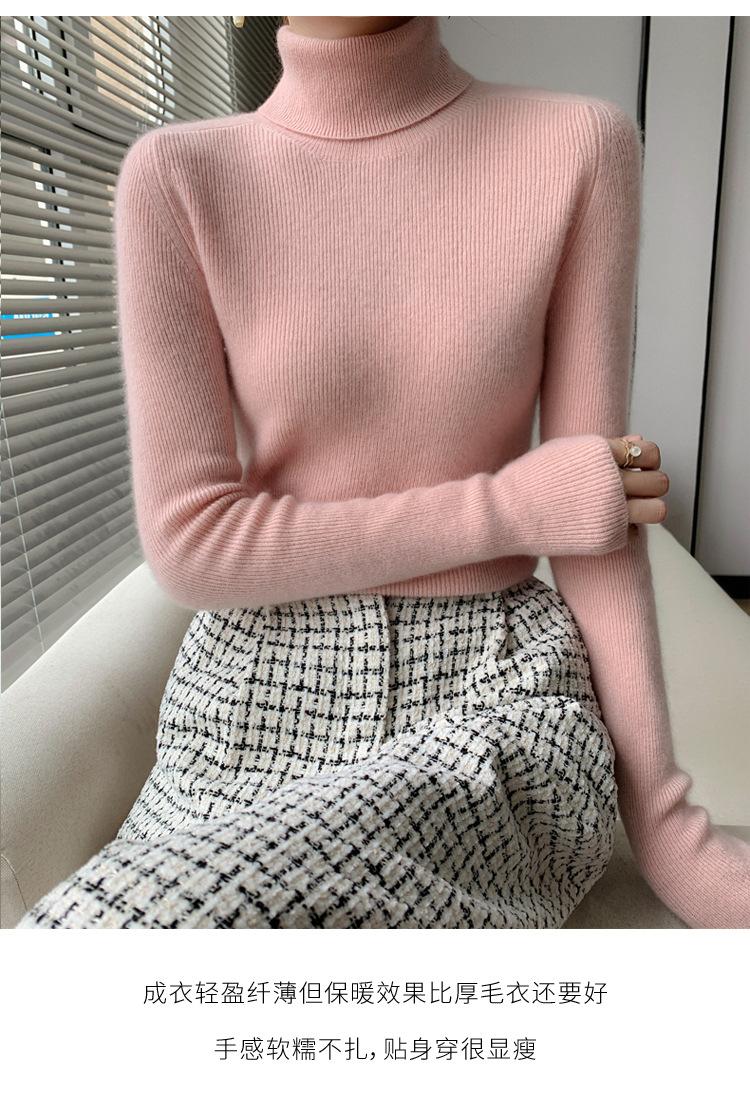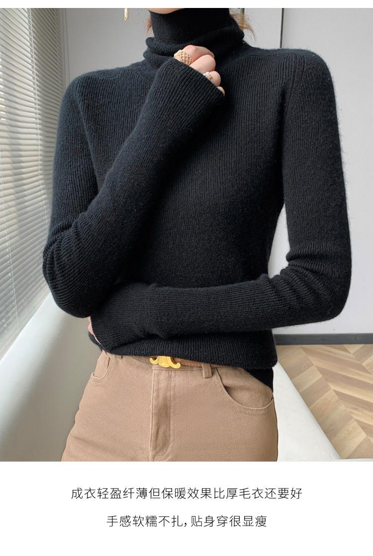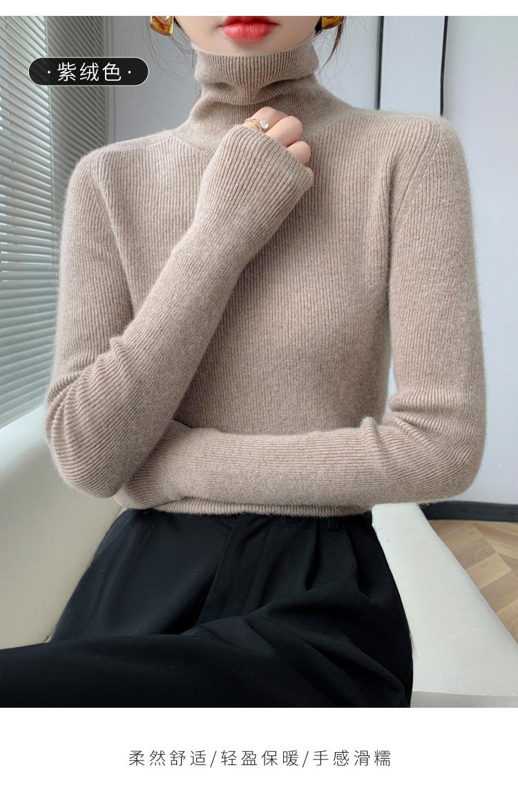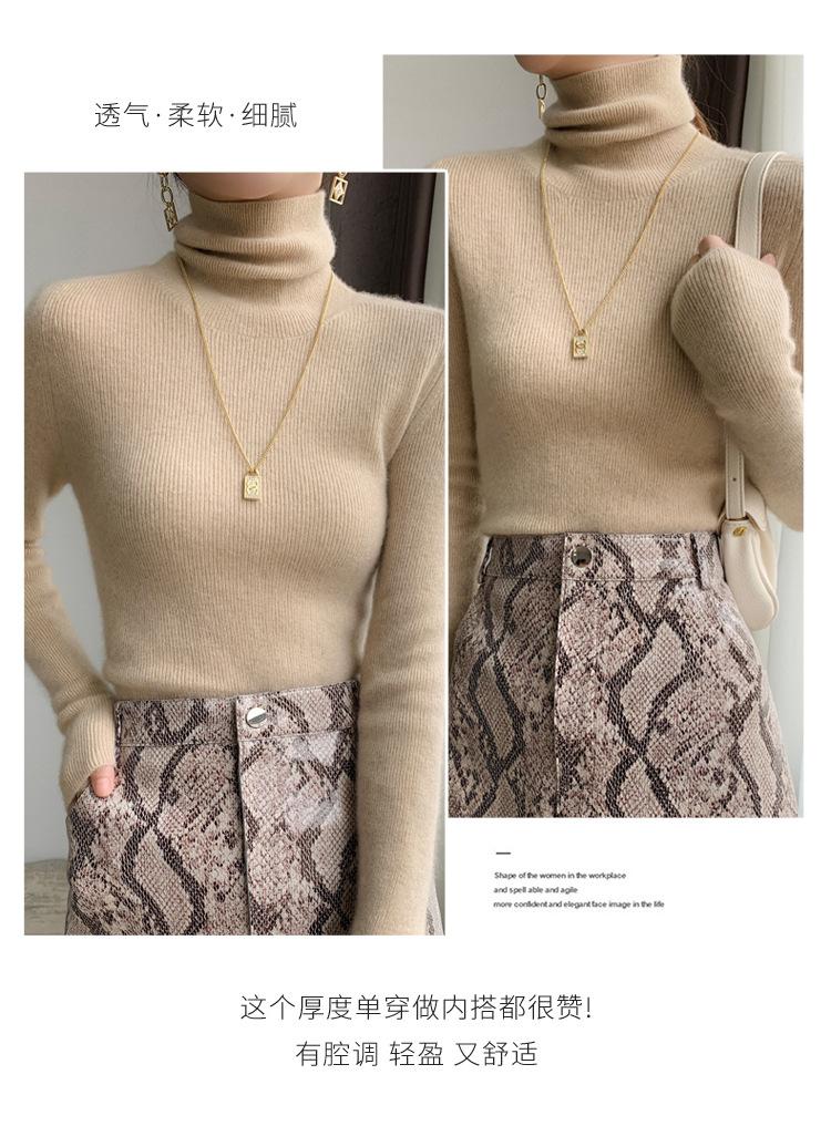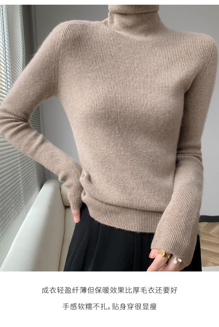 Suéter de Cachemira de Cuello Alto para Mujer 100% Cachemira Pura Corte Ajustado Tejido Otoño e Invierno Camiseta Inferior Suéter Pulóver para Mujer