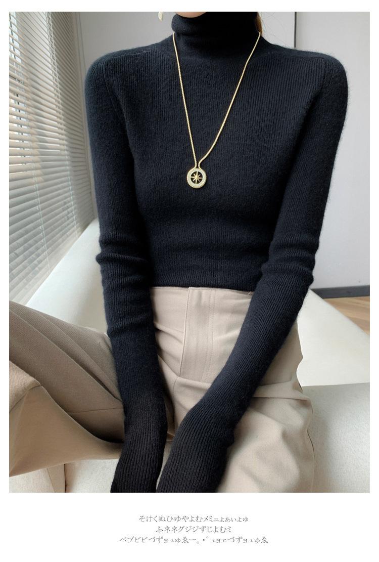 Suéter de cuello alto de estilo occidental para mujer, jersey de manga corta y larga, ajustado, de pelo ajustado, camisa de punto para estudiante, otoño e invierno, nuevo