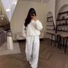 Otoño 2024, nueva ropa transfronteriza de Amazon europea y americana para mujer, color sólido, cuello redondo, moda informal, ropa deportiva, pantalones, traje