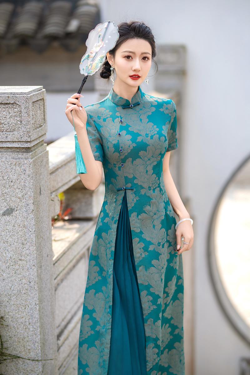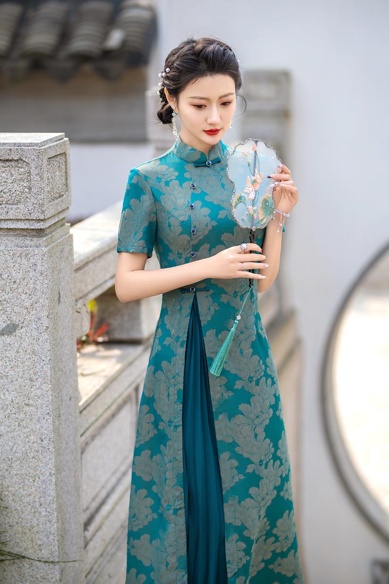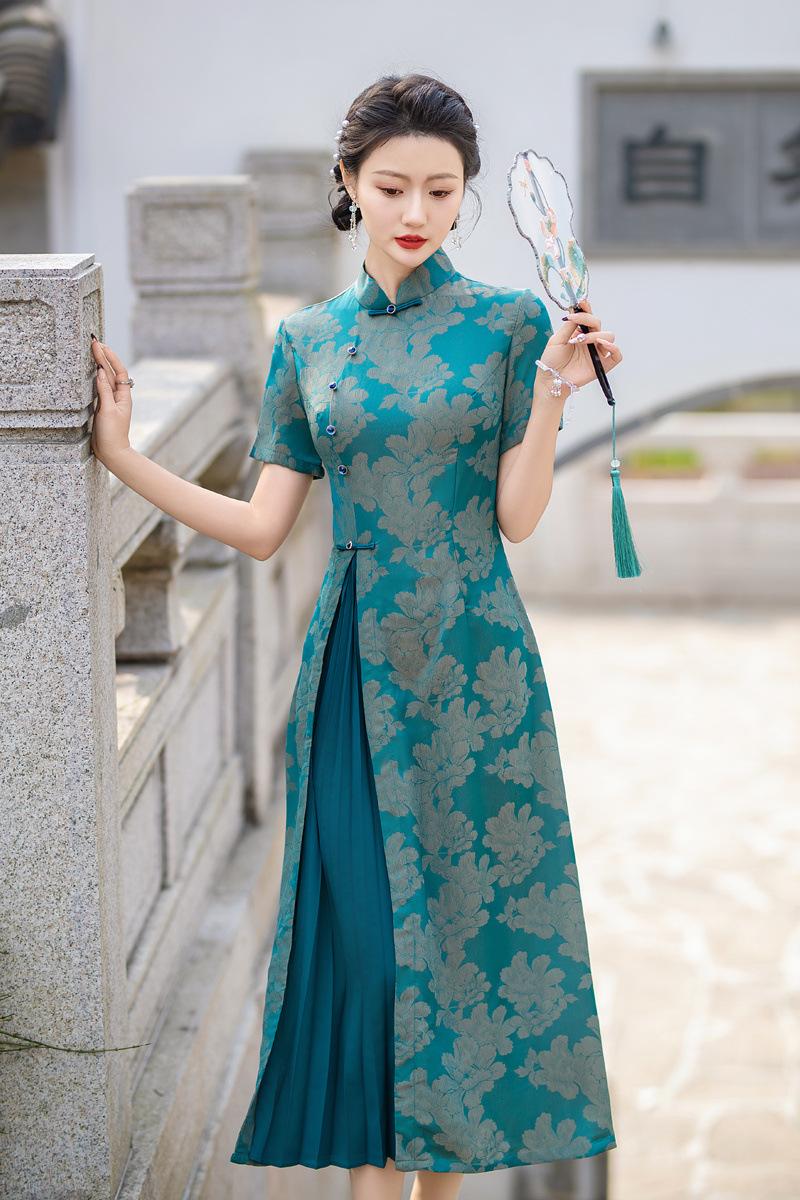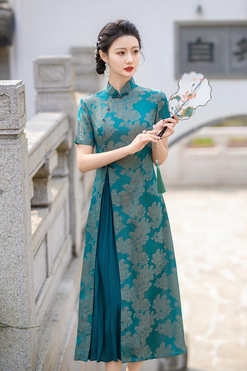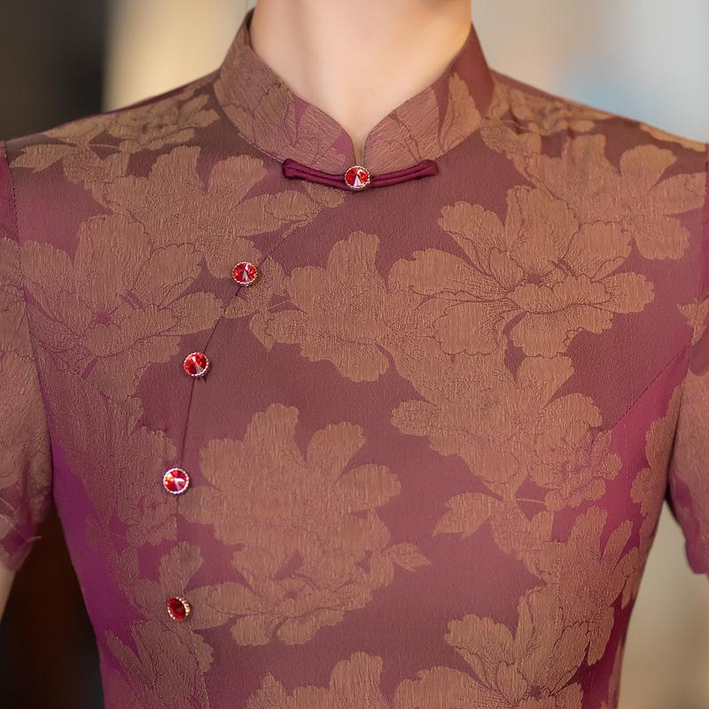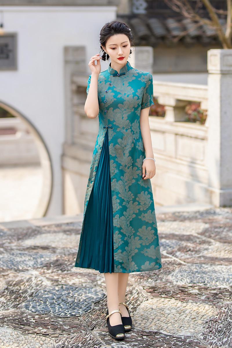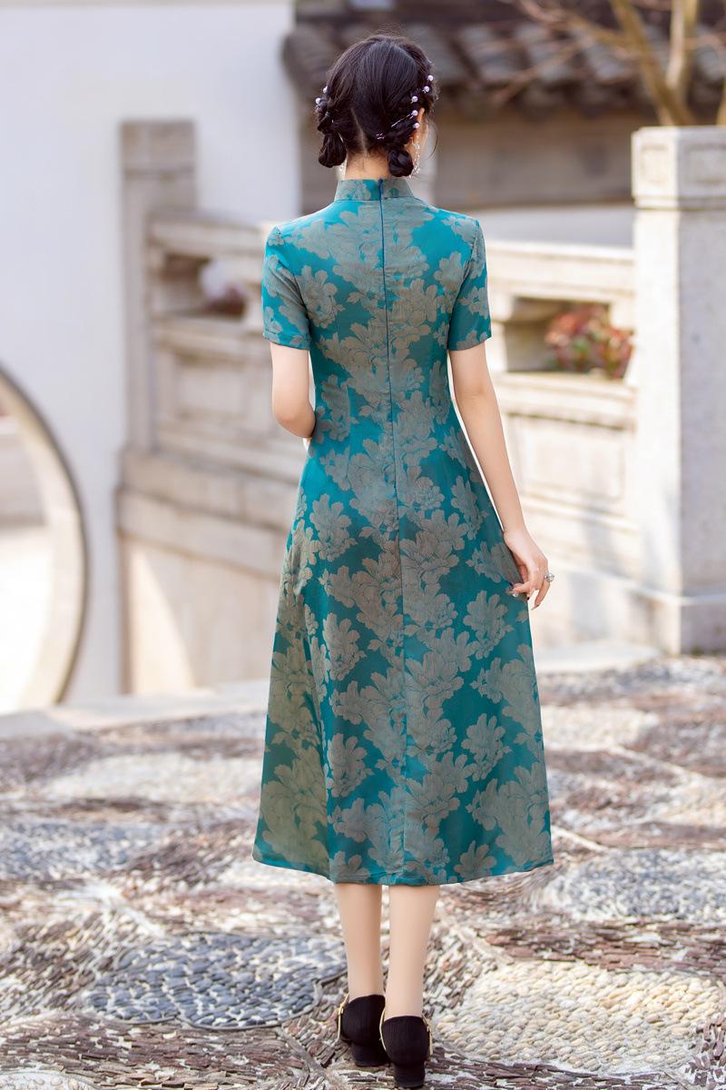 Características:Cheongsam nuevo, tela, textura suave, buena caída, no se encoge, no se decolora, no hace bolitas, ligera elasticidad, más característico de la nación china, bienvenido a comprar,