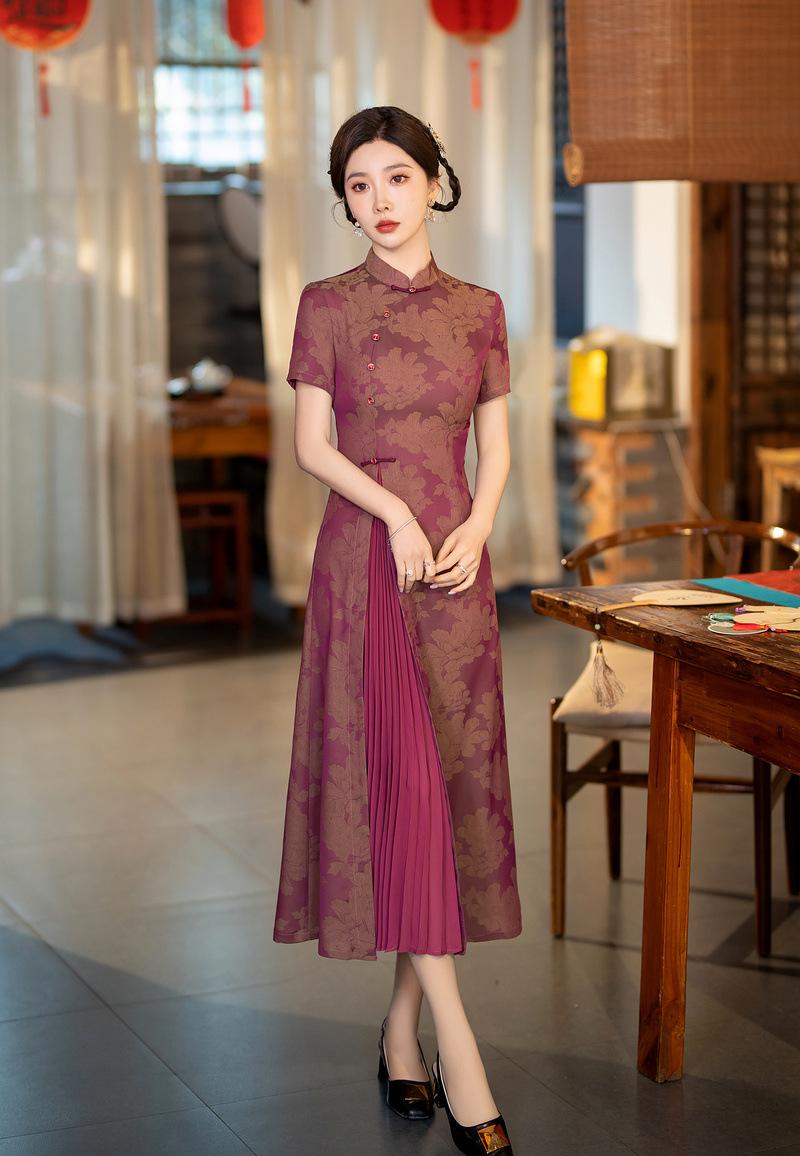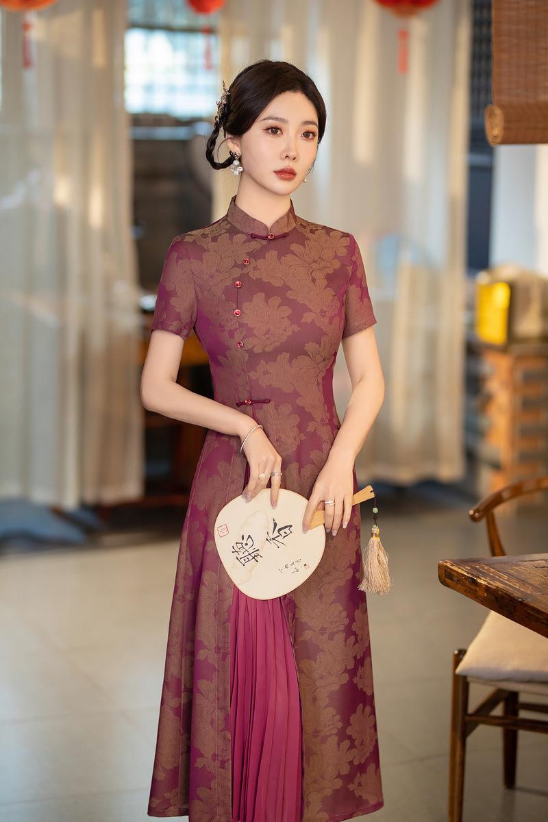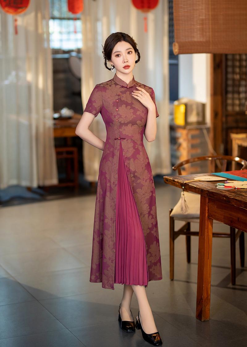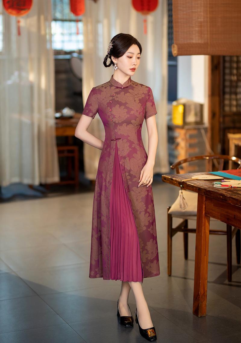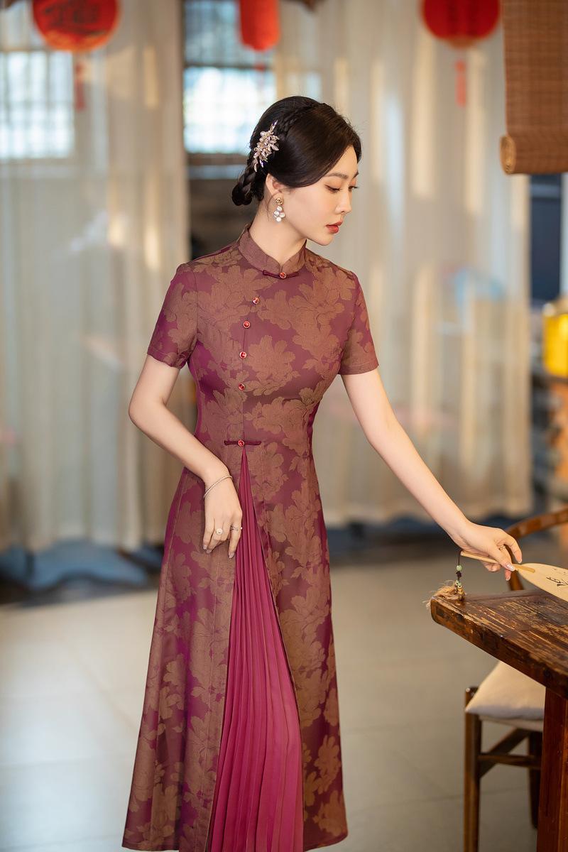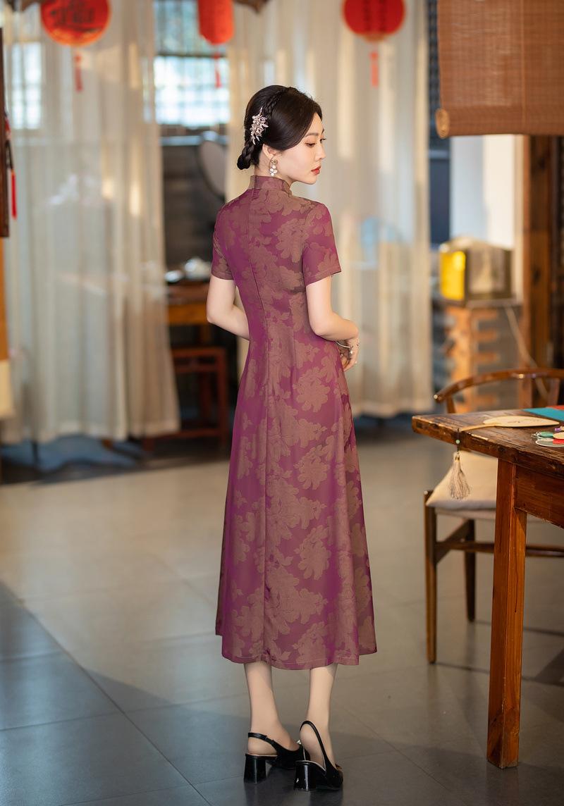 Características:Cheongsam nuevo, tela, textura suave, buena caída, no se encoge, no se decolora, no hace bolitas, ligera elasticidad, más característico de la nación china, bienvenido a comprar,