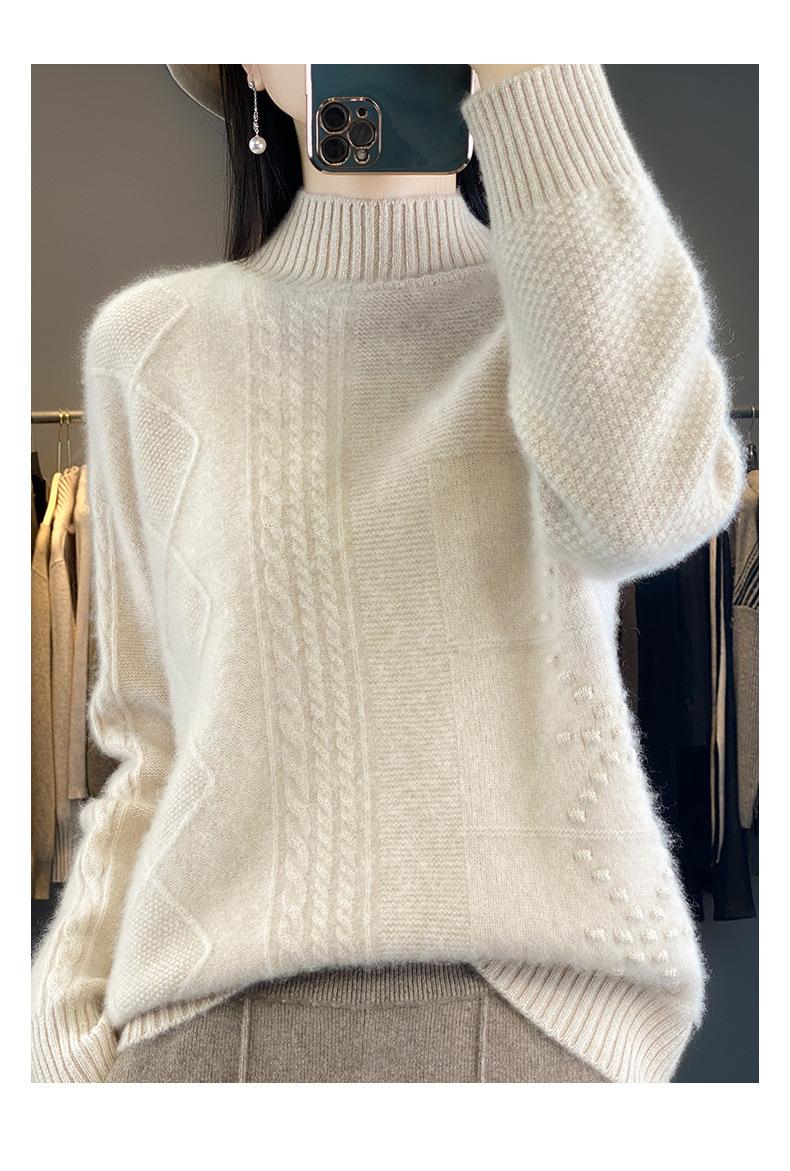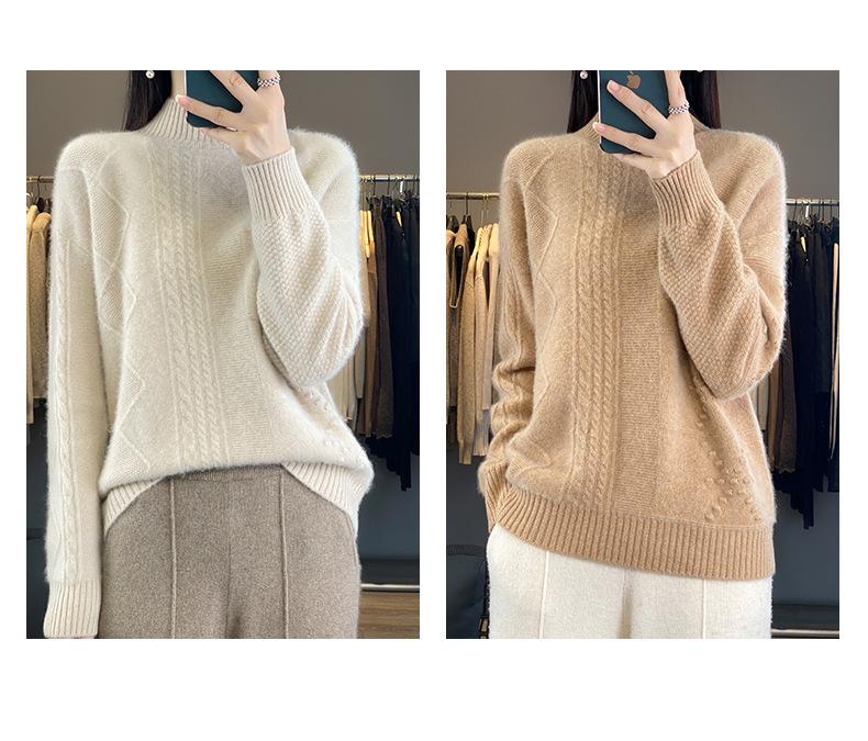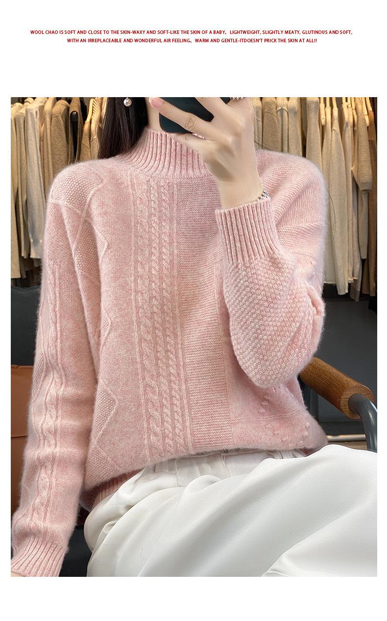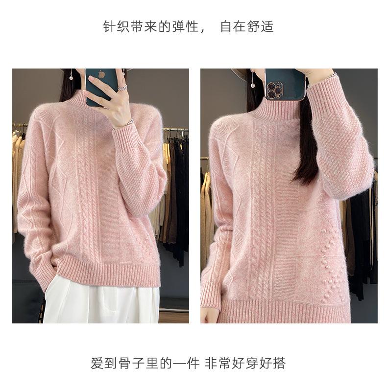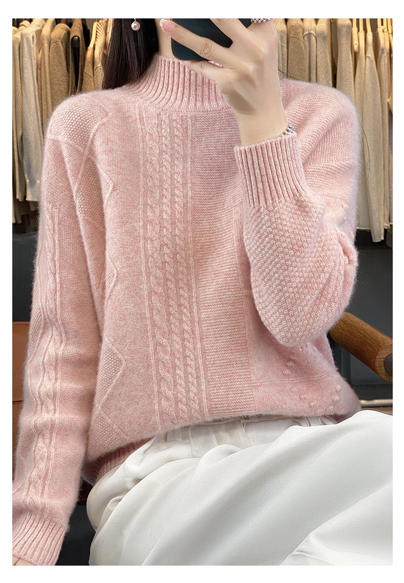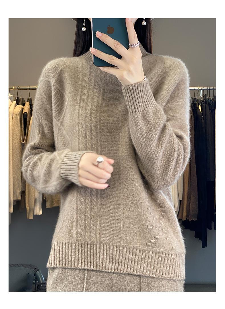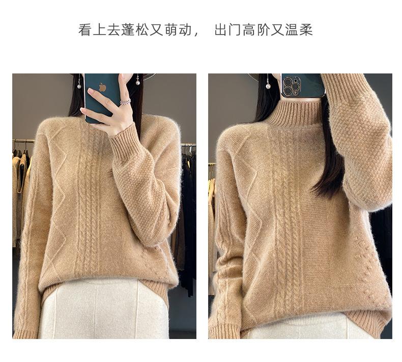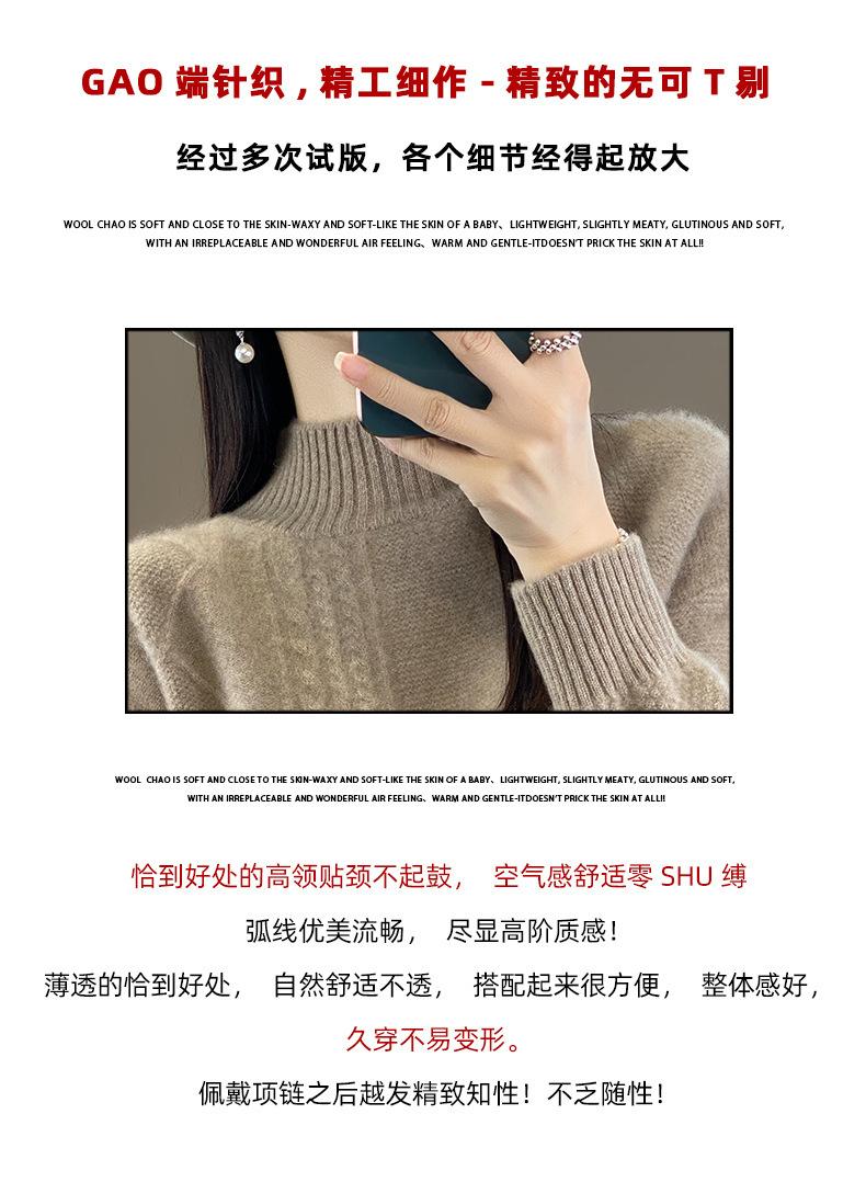 Suéter de cuello alto medio para otoño e invierno, nuevo, de punto de color liso para mujer, suéter con parte superior torcida interior gruesa