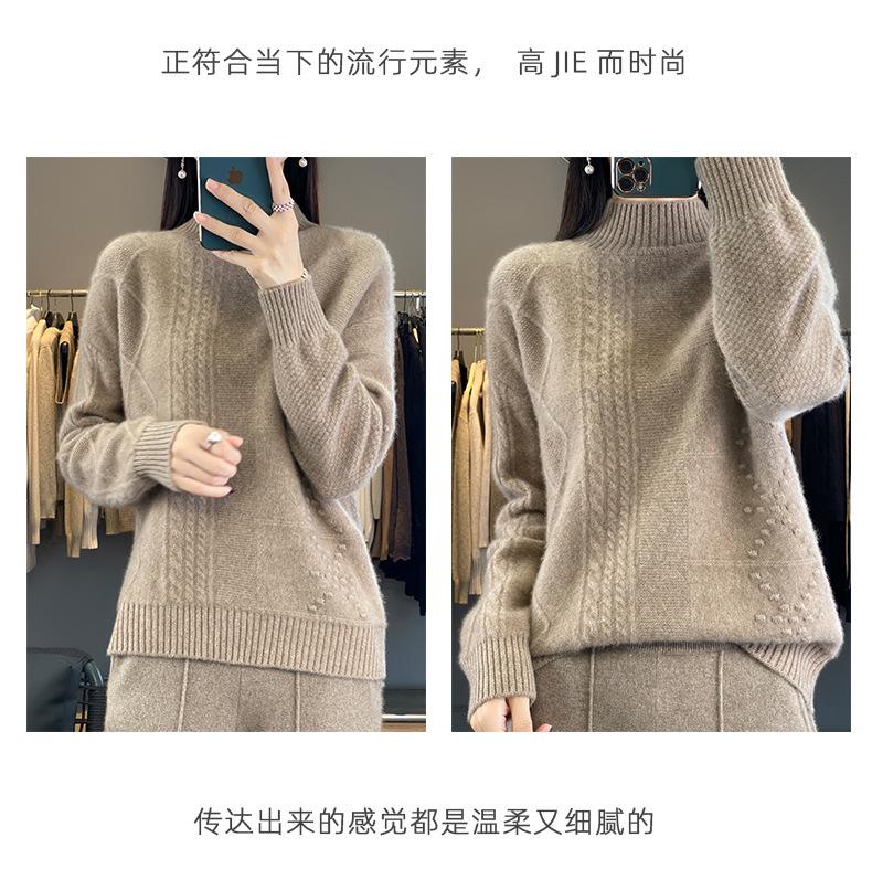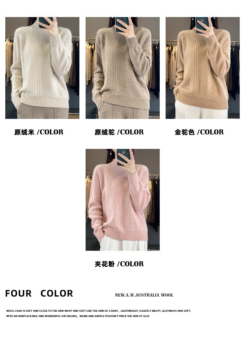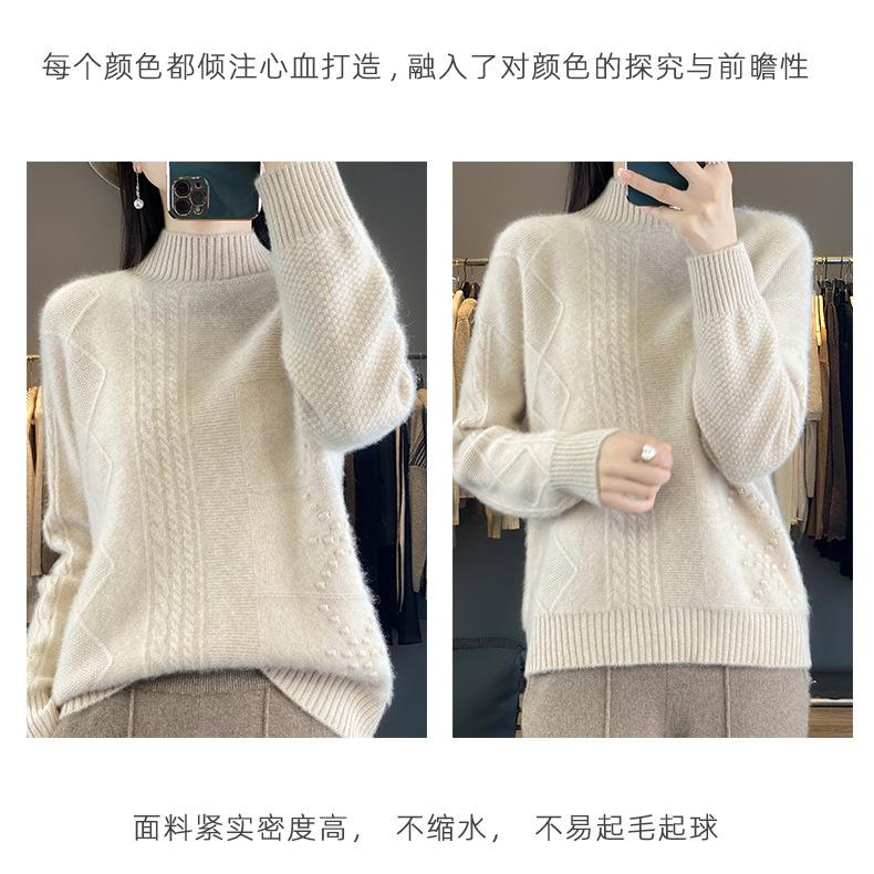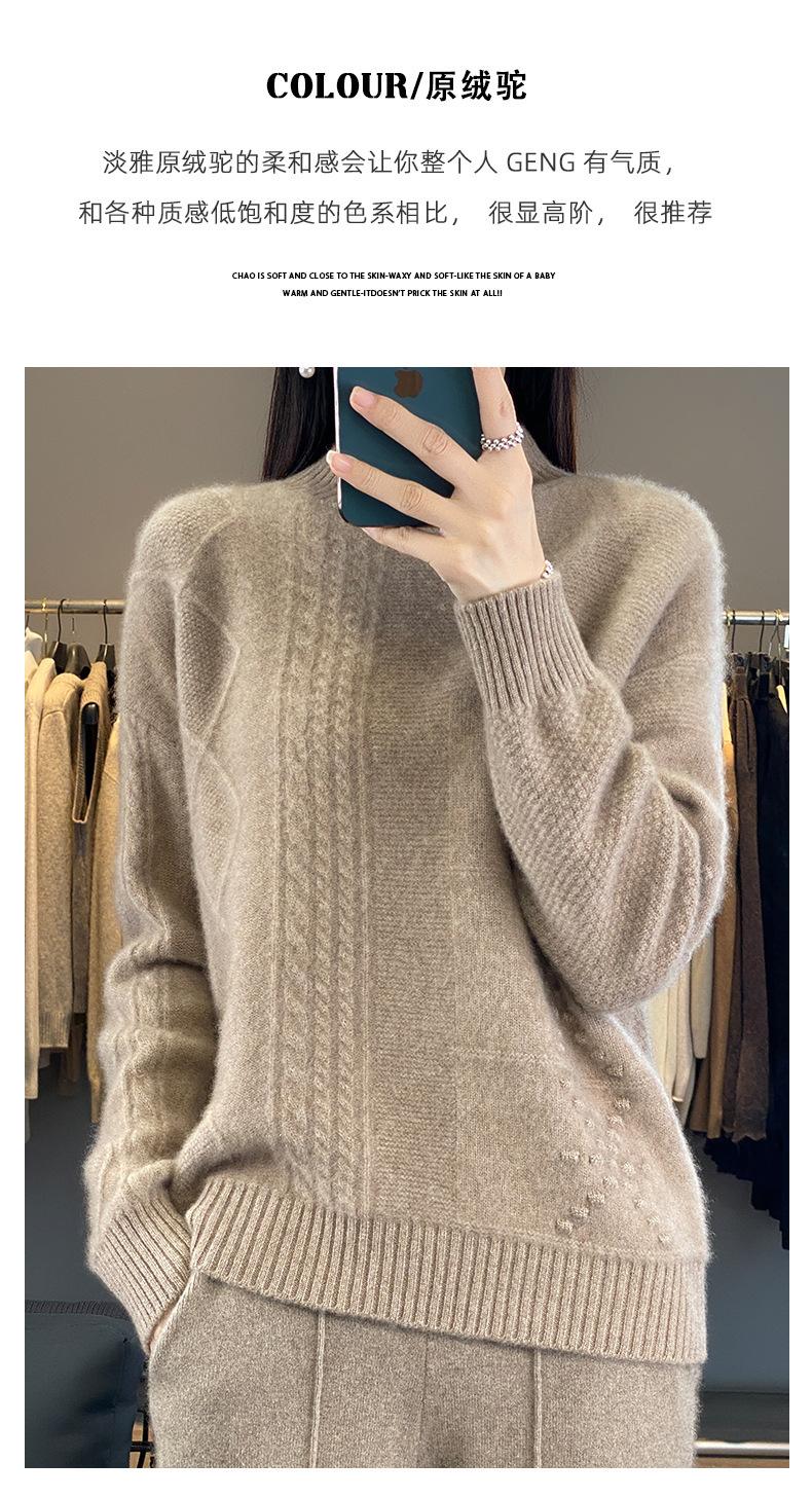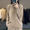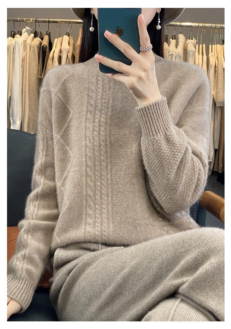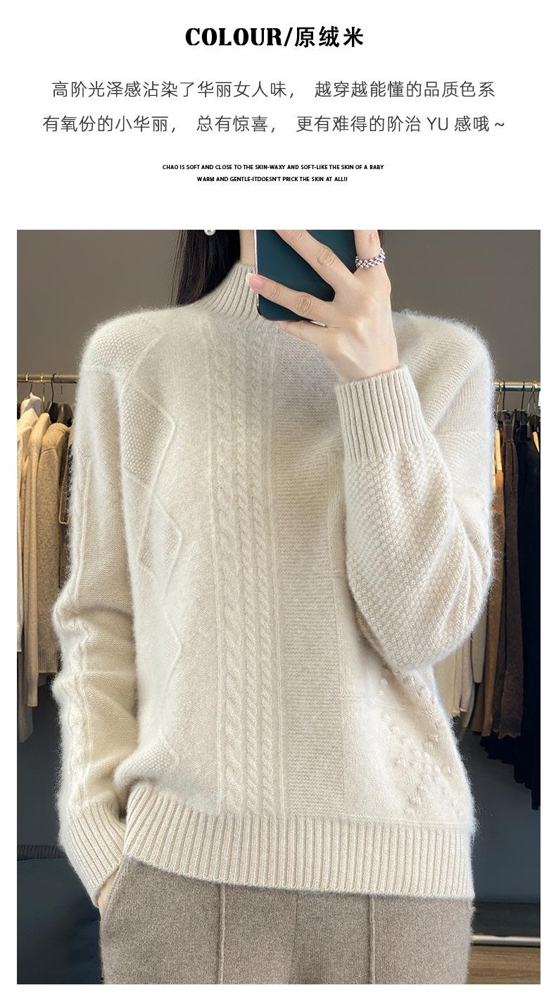 Suéter de cuello alto medio para otoño e invierno, nuevo, de punto de color liso para mujer, suéter con parte superior torcida interior gruesa