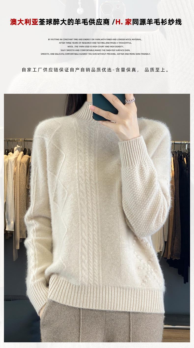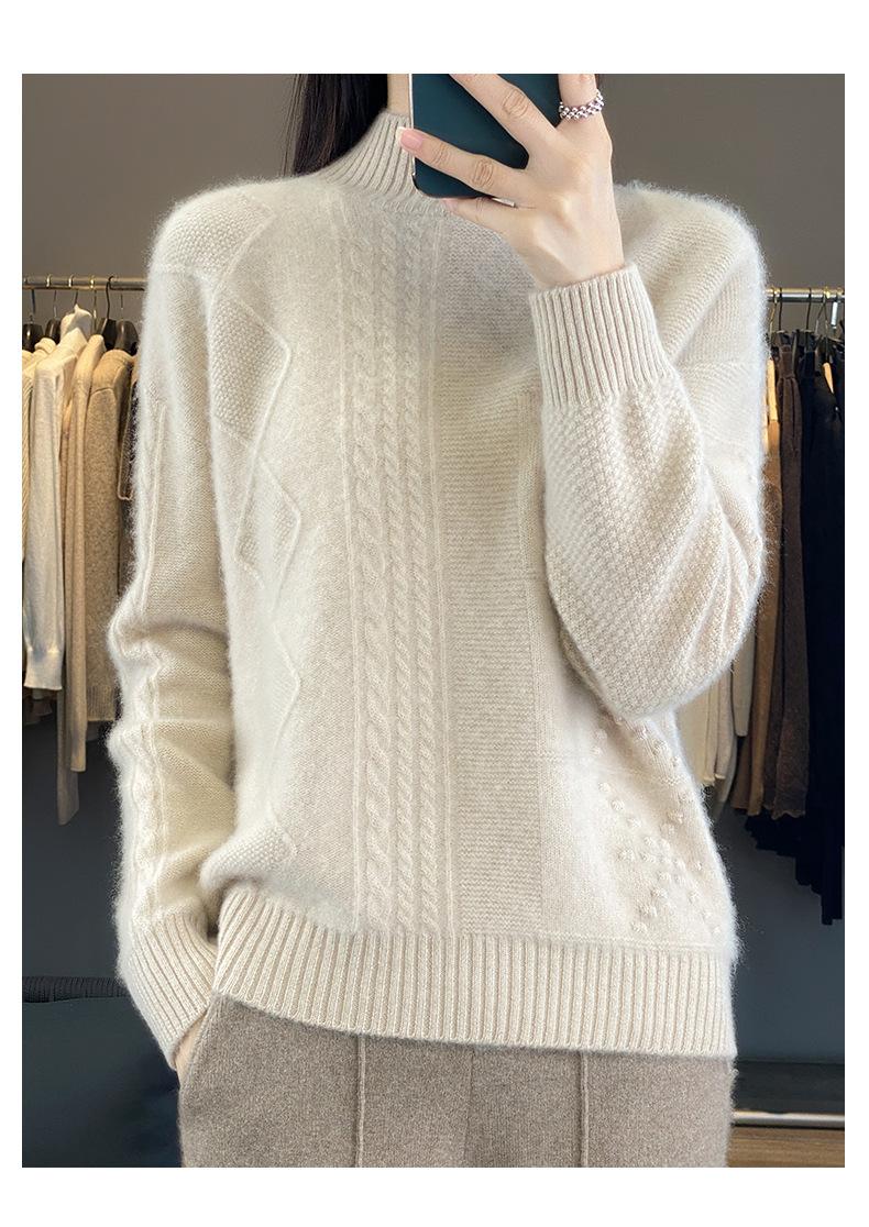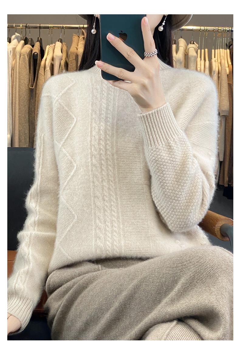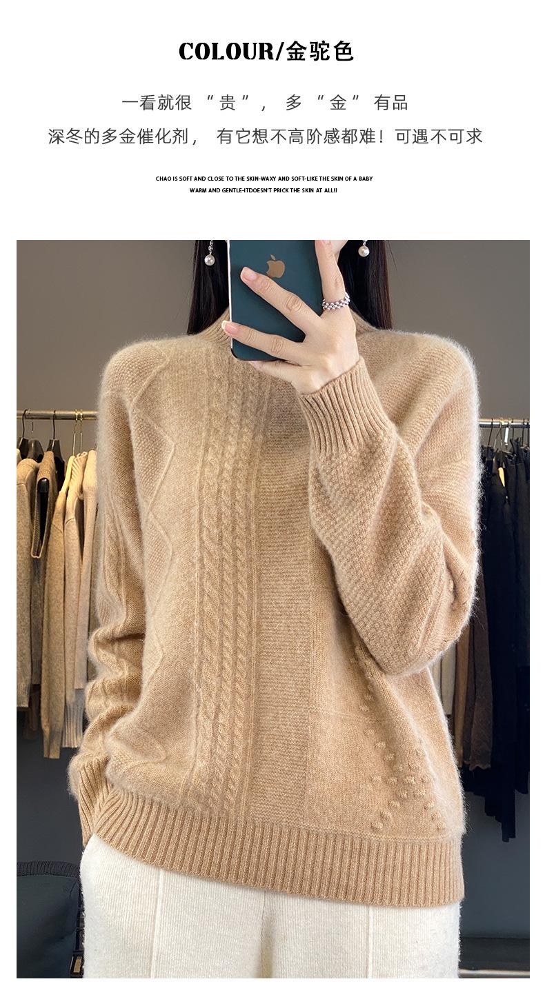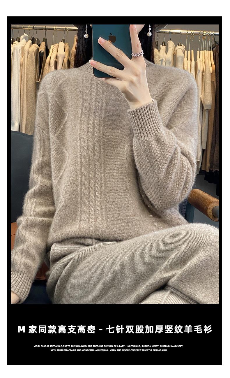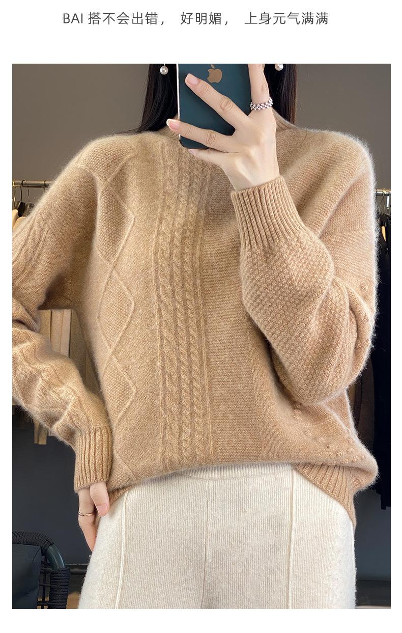Suéter de cuello alto medio para otoño e invierno, nuevo, de punto de color liso para mujer, suéter con parte superior torcida interior gruesa