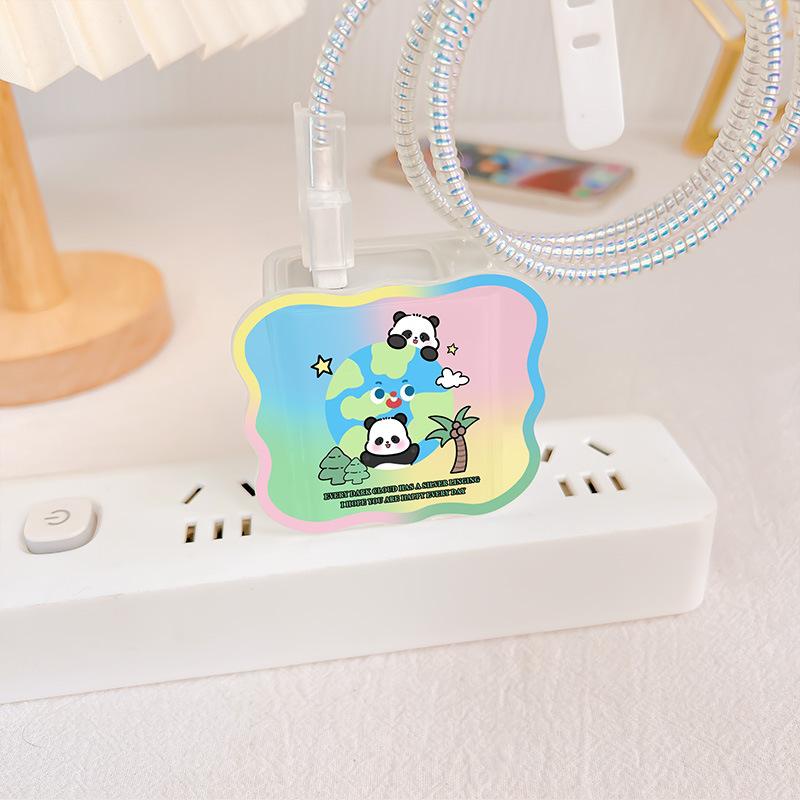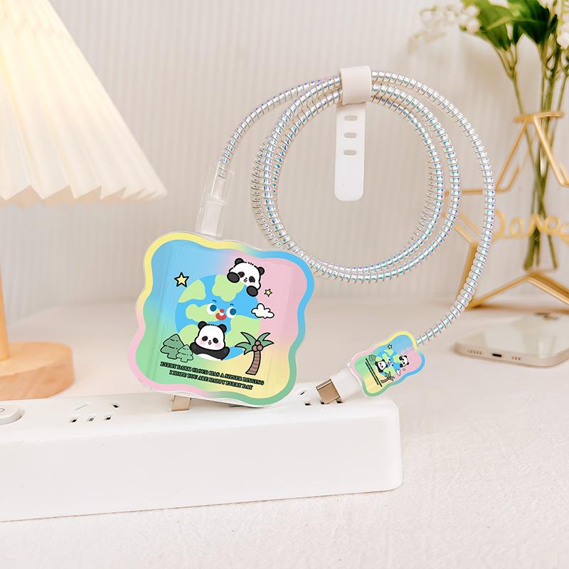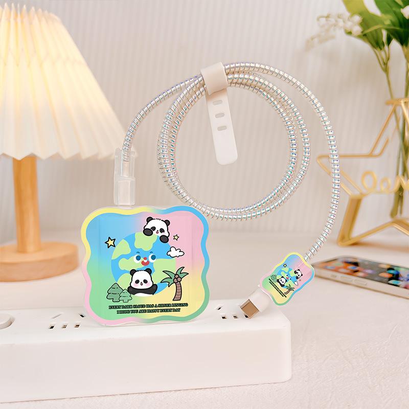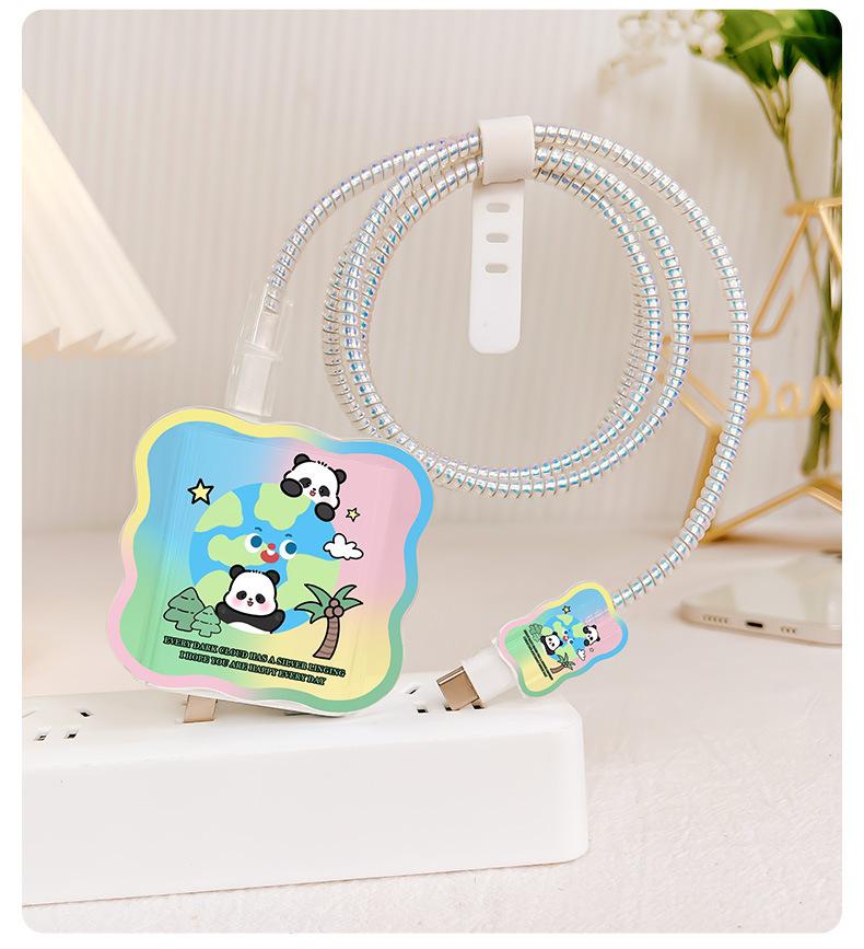 Modelo de Ola Adecuado para Cubierta de Cabezal de Carga Huawei 88W Cubierta Protectora para Cable de Datos de Carga Dispositivo Creativo para Morder Cables Panda Tierra