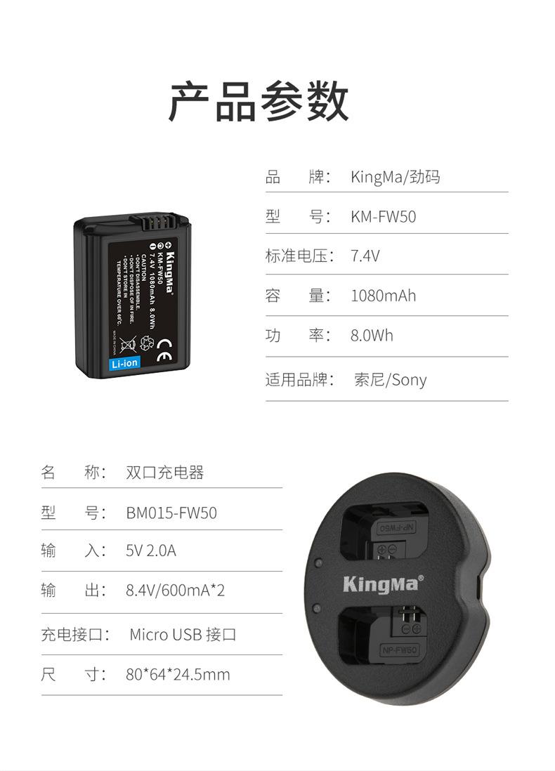 Cargador de batería para cámara Sony NP-FW50 con código Jin para ZV-E10, A7R2, A7M2 y A6300