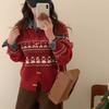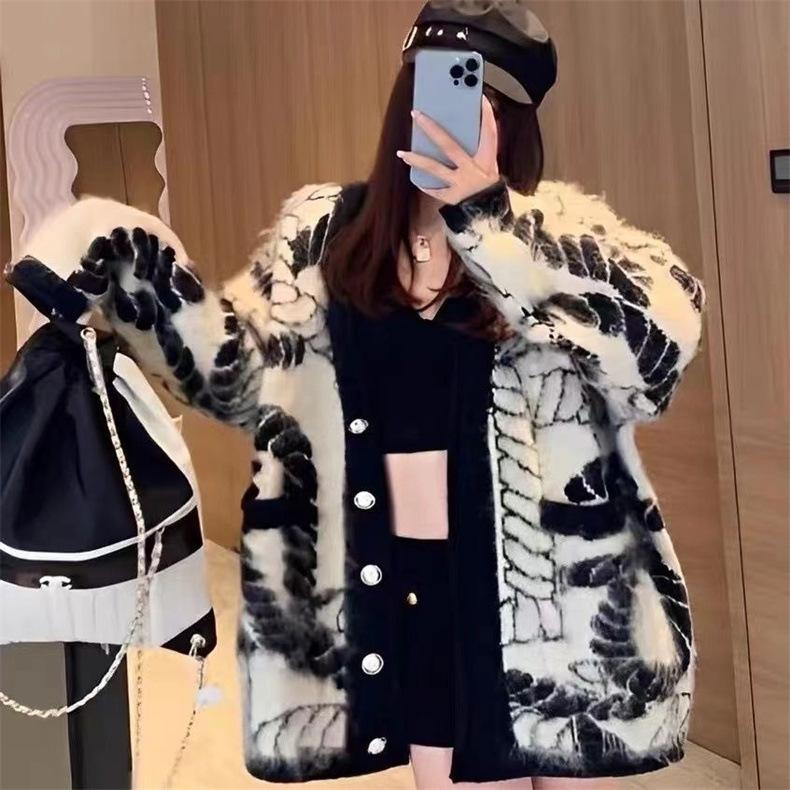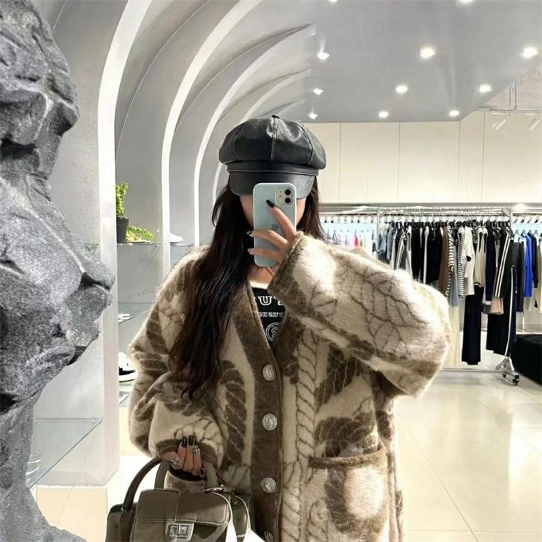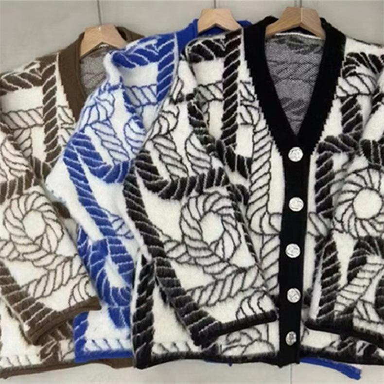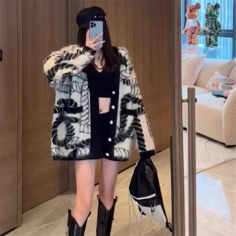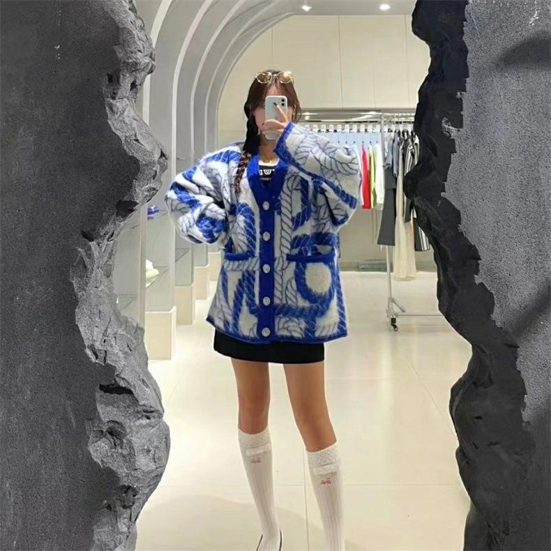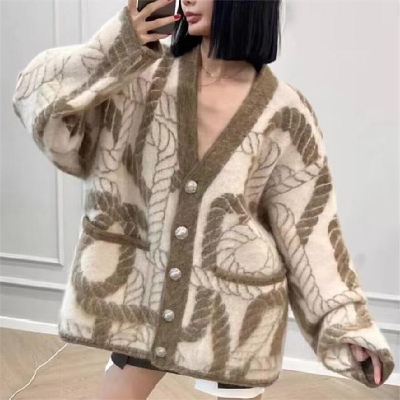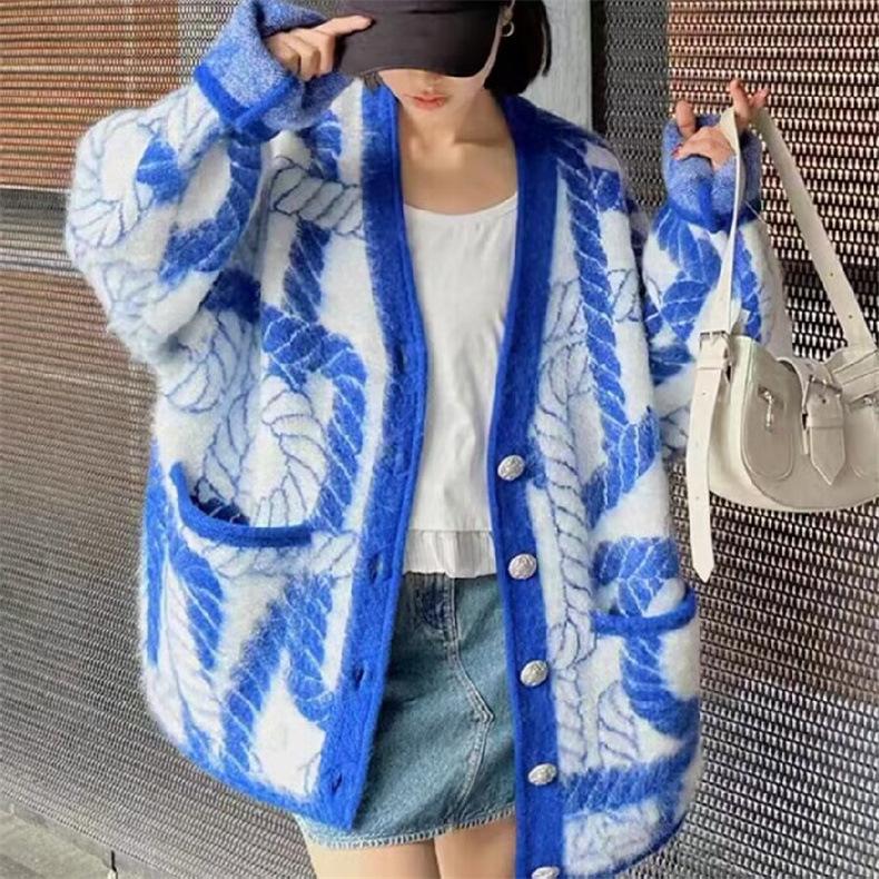 Suéter de Otoño e Invierno Nuevo Estilo Coreano para Mujer, Estilo Perezoso, Retro Holgado, Suave y Ceroso, Cárdigan Tejido Jacquard, Top, Chaqueta para Mujer