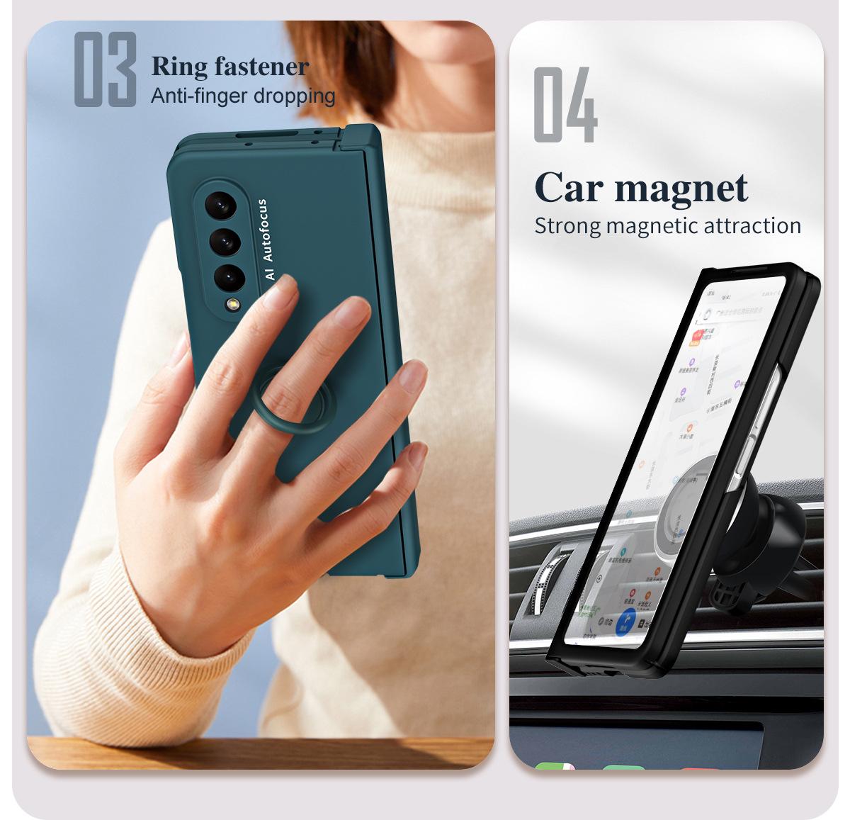 Compatible con la carcasa del teléfono móvil Samsung zfol5, la carcasa plegable Fol4 con bisagra de color sólido, soporte para automóvil, carcasa protectora resistente a caídas con todo incluido.