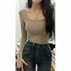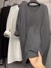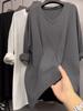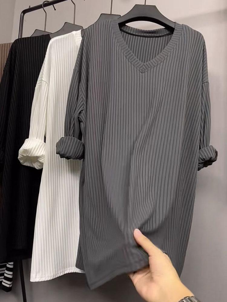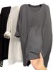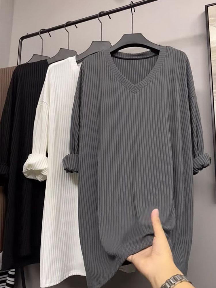 Camiseta de manga larga para mujer, estilo occidental, con cuello en V, holgada, de longitud media, estilo europeo 2023