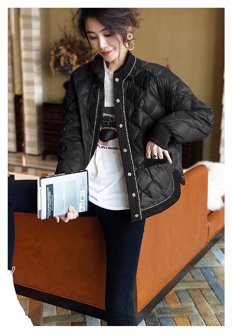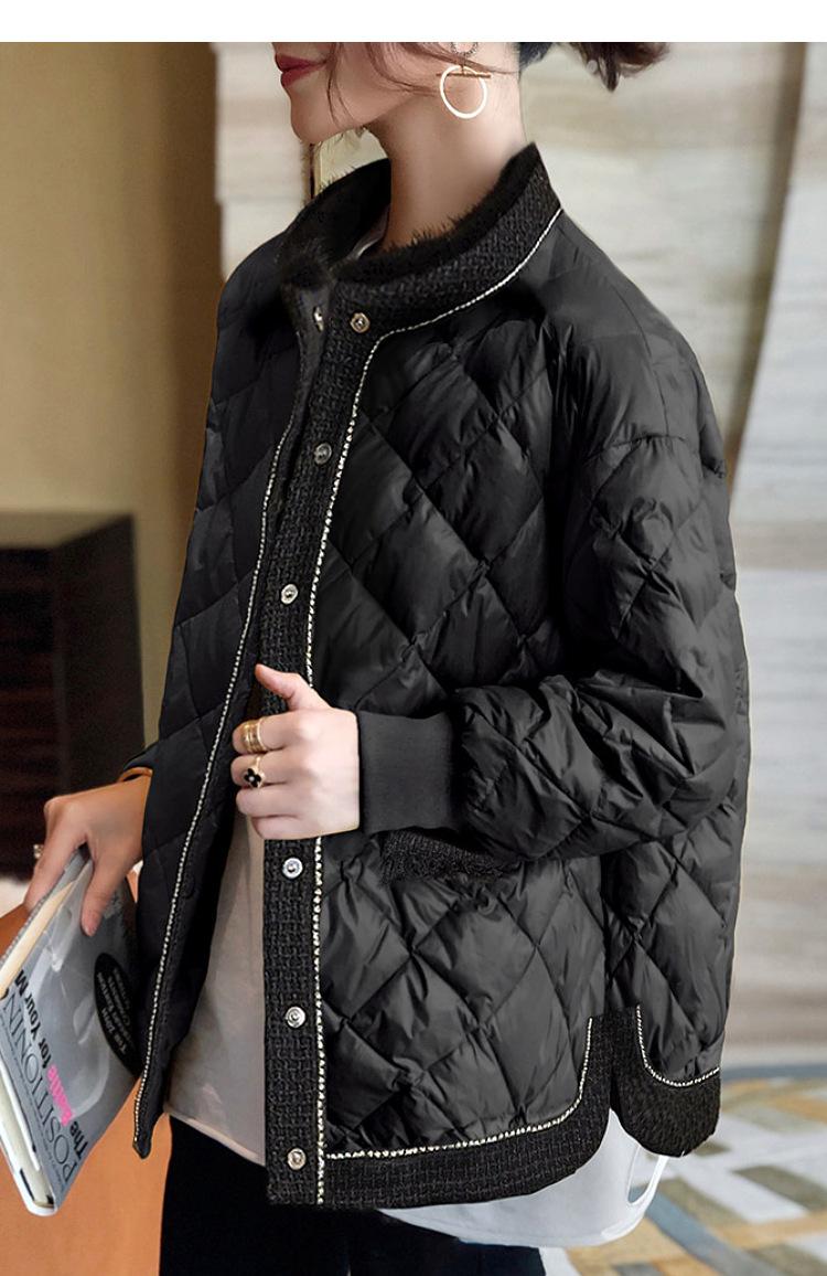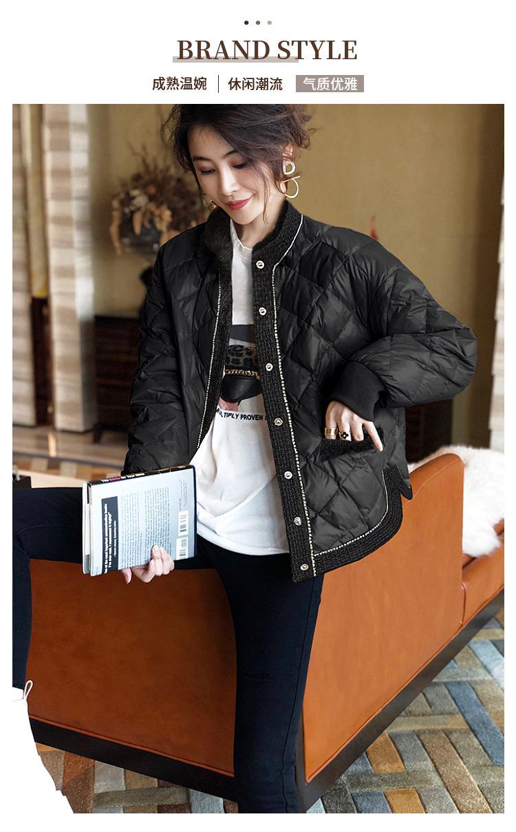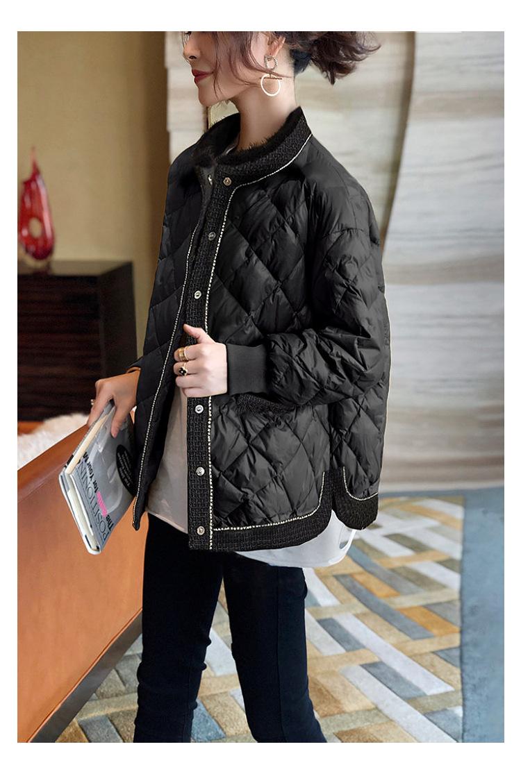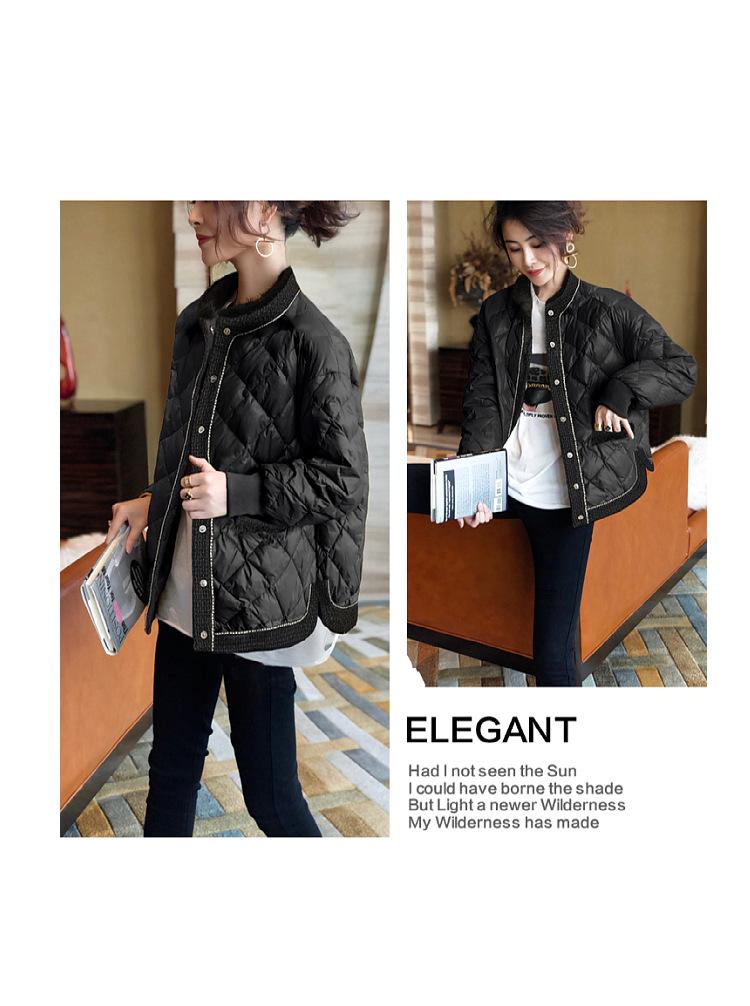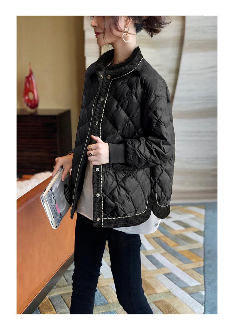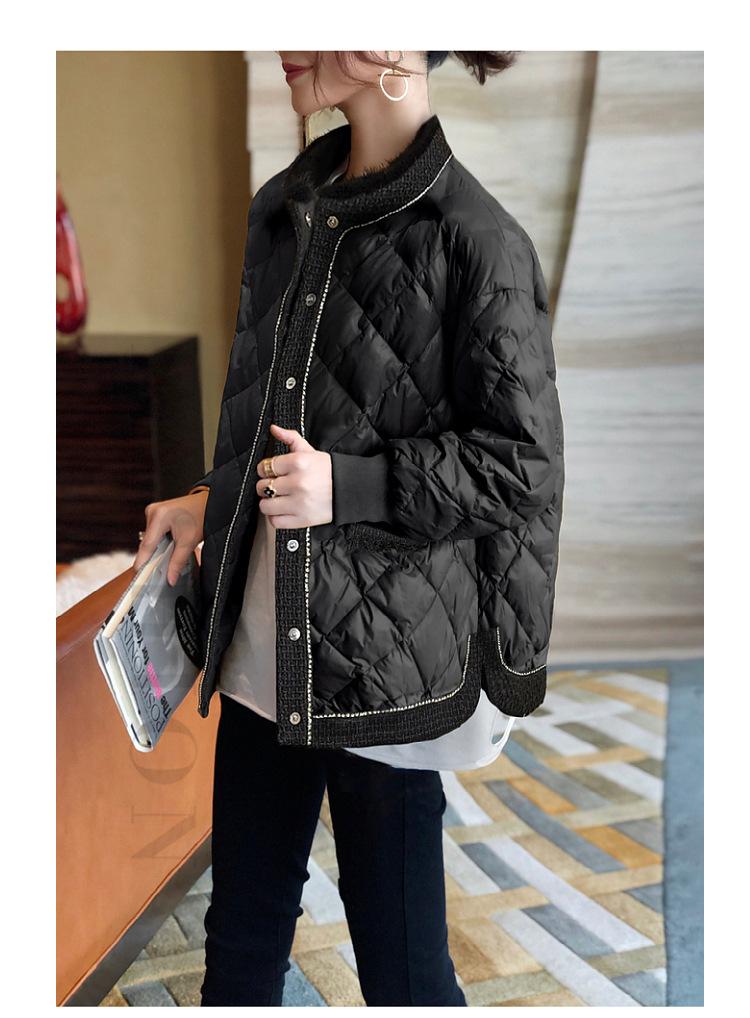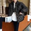 Abrigo acolchado de algodón ligero negro Camisa holgada de manga larga pequeña estilo occidental para mujer Otoño e Invierno 2023 Nuevo abrigo acolchado de algodón simple