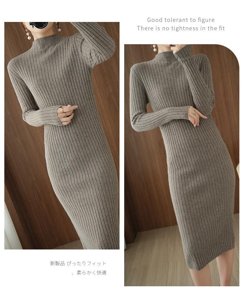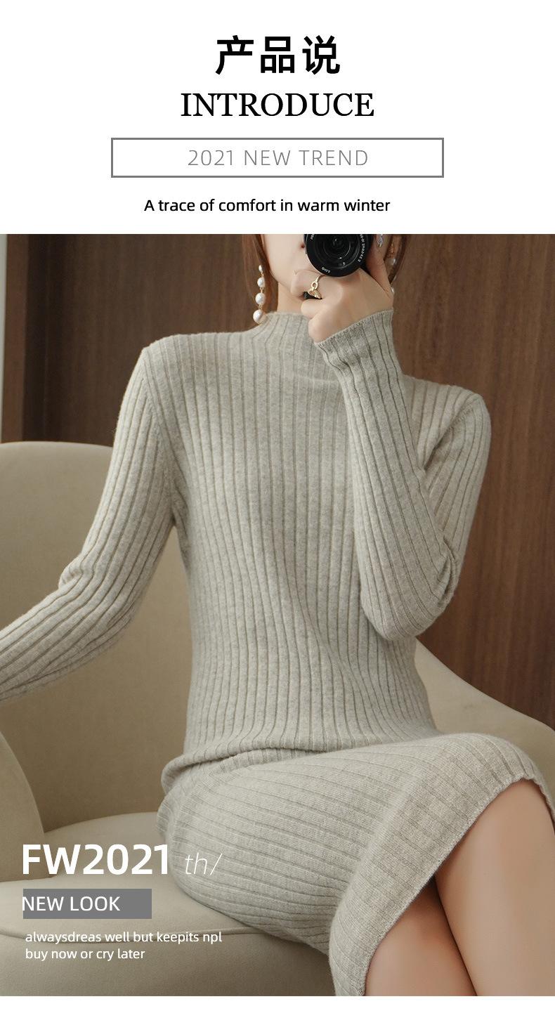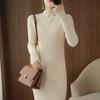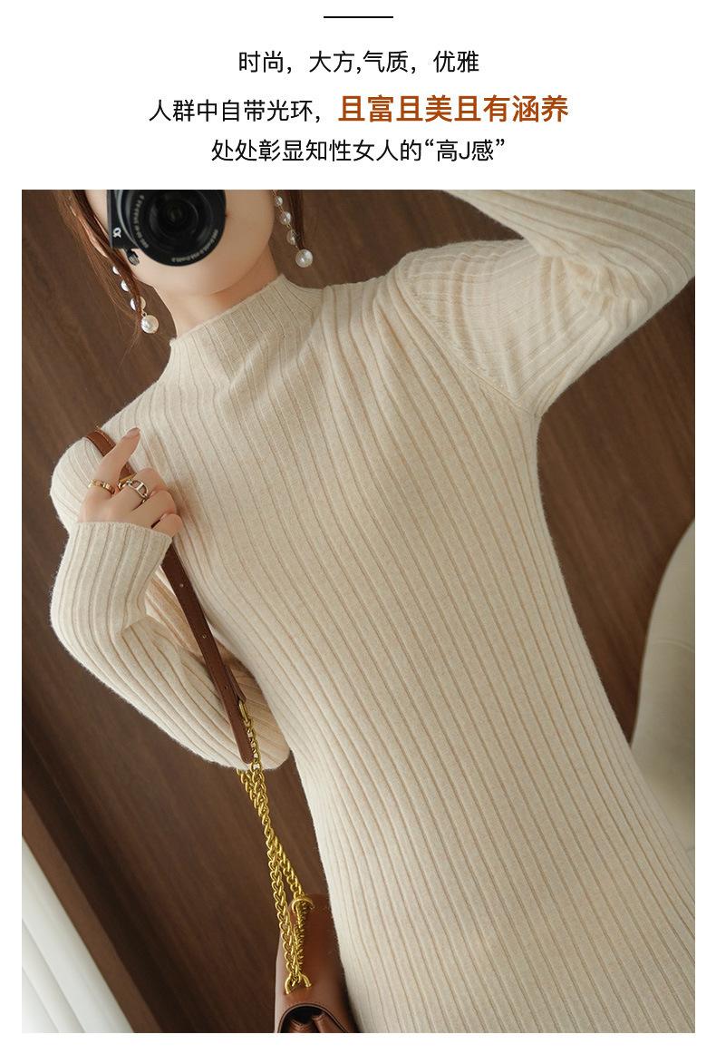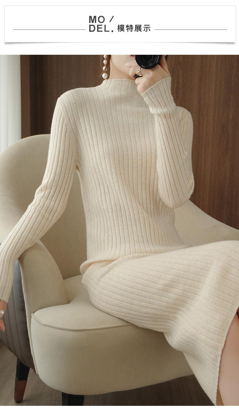 Suéter de cuello alto medio ajustado de estilo coreano para otoño e invierno de 2023, suéter grueso de lana de color sólido, suéter largo para mujer