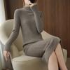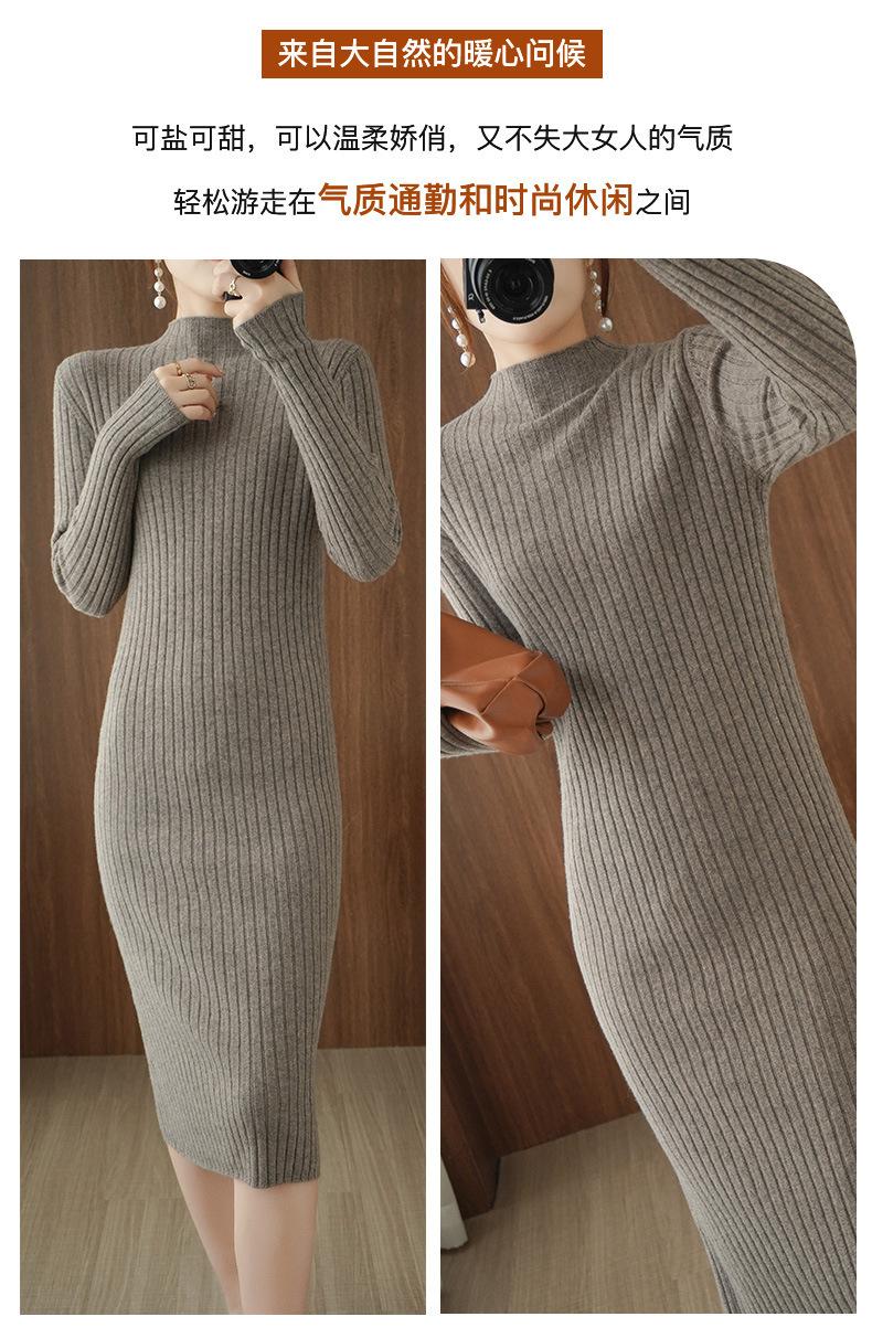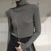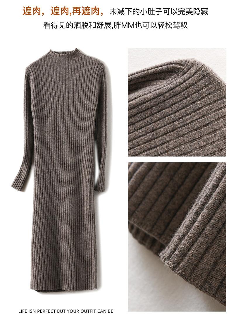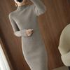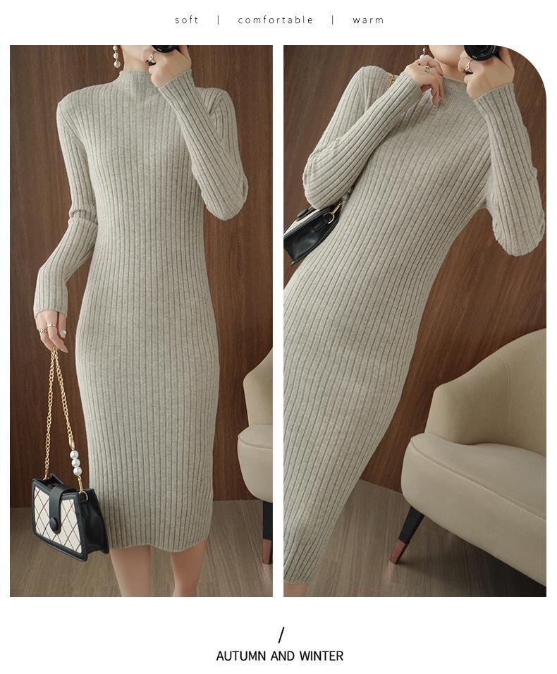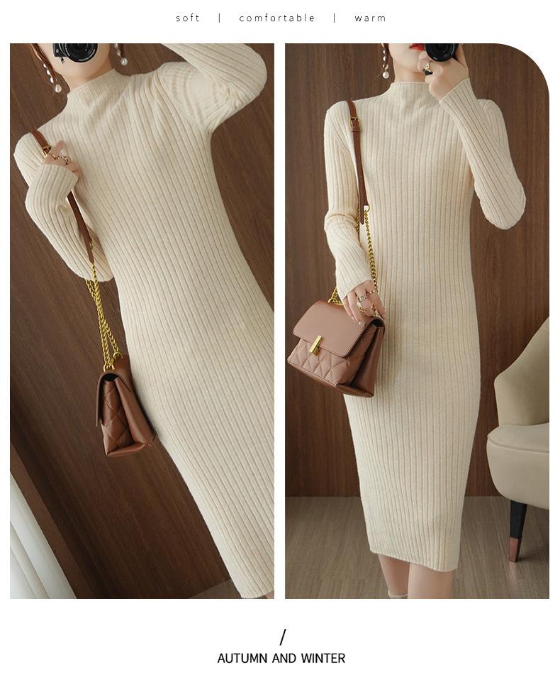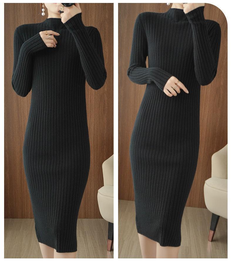 Suéter de cuello alto medio ajustado de estilo coreano para otoño e invierno de 2023, suéter grueso de lana de color sólido, suéter largo para mujer