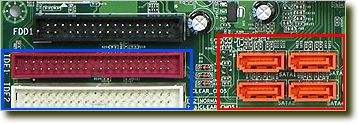 Comparación de los tipos de interfaz de disco duro en las placas base. El lado izquierdo es un disco duro con interfaz IDE (también llamado puerto paralelo) y el lado derecho es un disco duro SATA (también llamado disco duro con interfaz de puerto serie). Las interfaces SATA1, SATA2 y SATA3 son universales, pero las velocidades varían. Si la placa base tiene una interfaz como la de la derecha, compre un disco duro con puerto serie SATA. Si la placa base solo tiene una interfaz de puerto paralelo de tipo pin tradicional como la de la izquierda, compre un disco duro con puerto paralelo IDE. El rendimiento y los parámetros de un disco duro con puerto serie SATA son mejores que los de un disco duro con puerto paralelo IDE.
