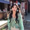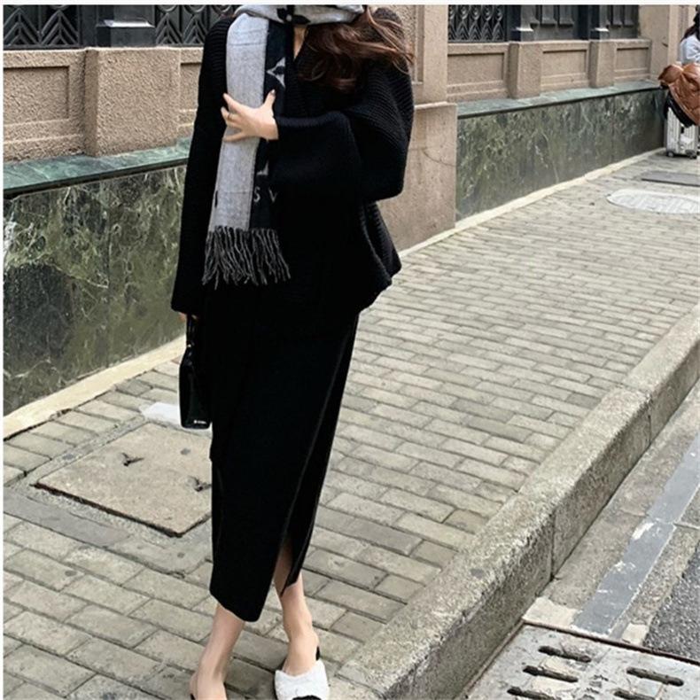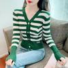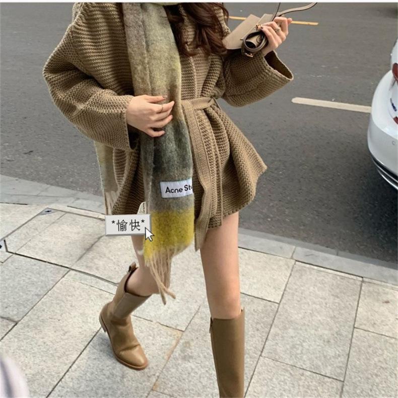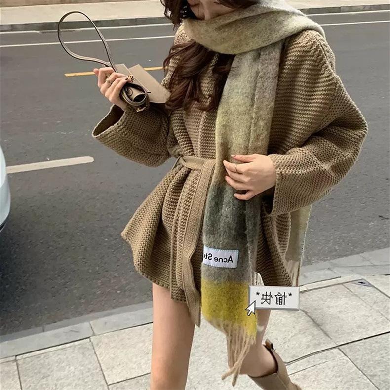 Suéter con cordones de estilo francés para mujer, cárdigan de punto holgado de longitud media con cuello en V y diseño grueso de otoño