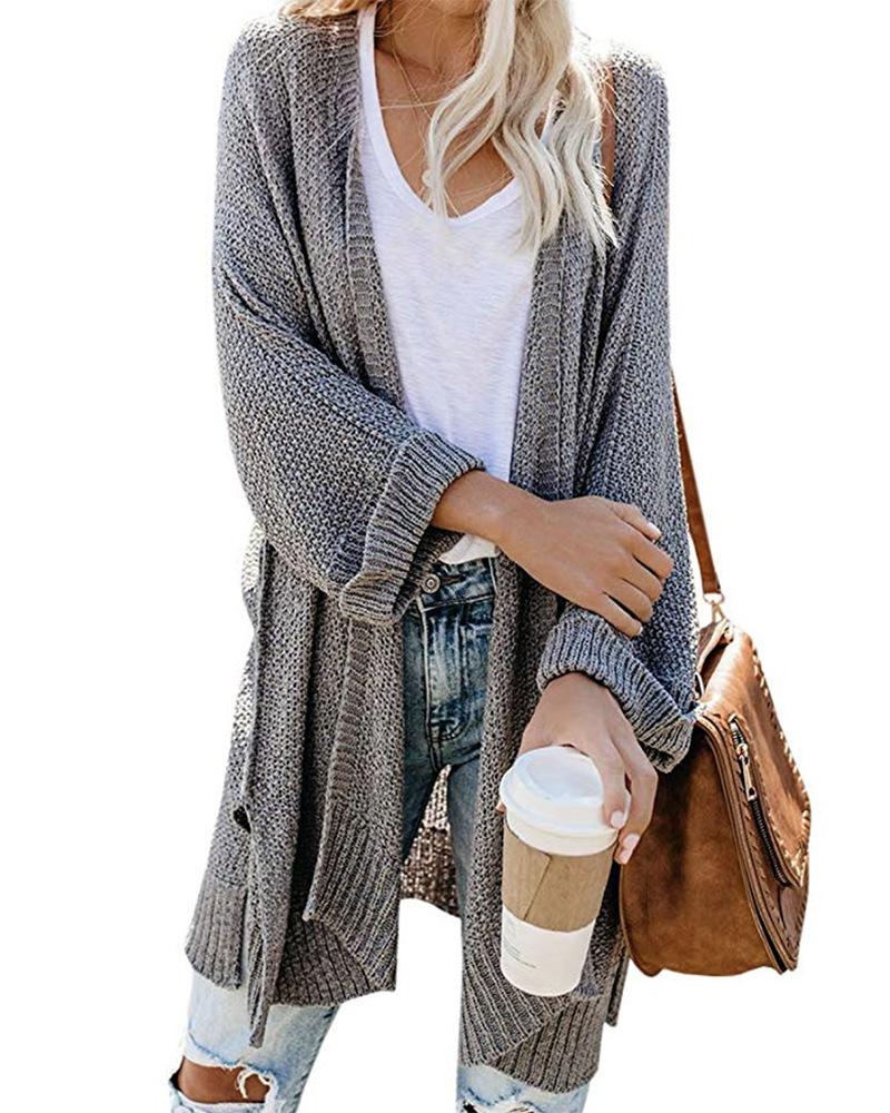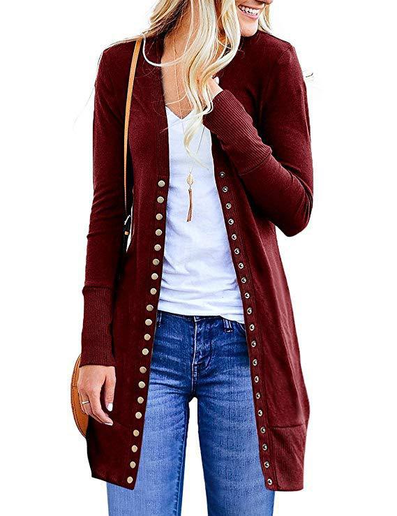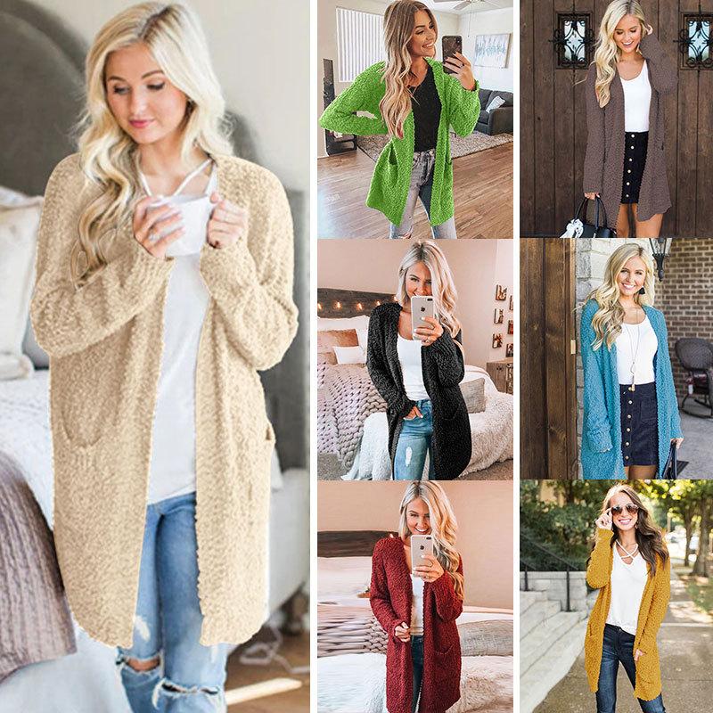 Suéteres de mujer de otoño e invierno Amazon nuevos suéteres de punto para mujer color sólido otoño e invierno botón largo cárdigan punto