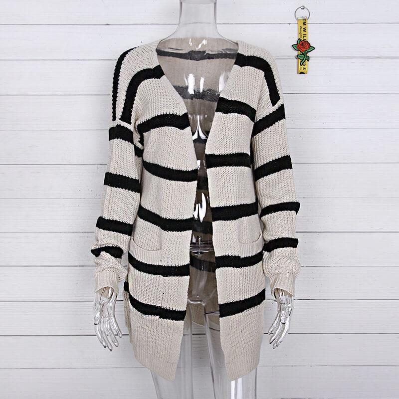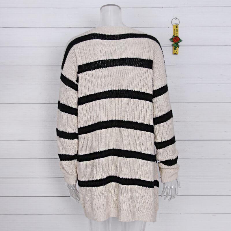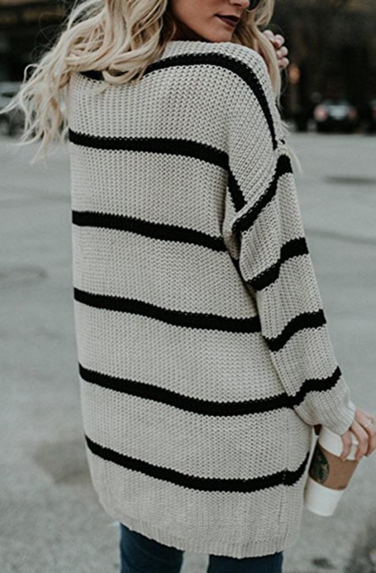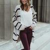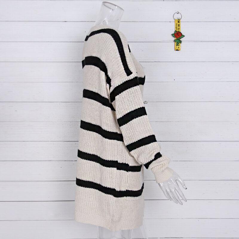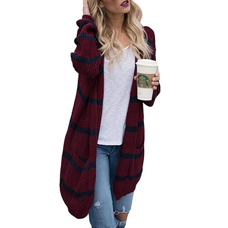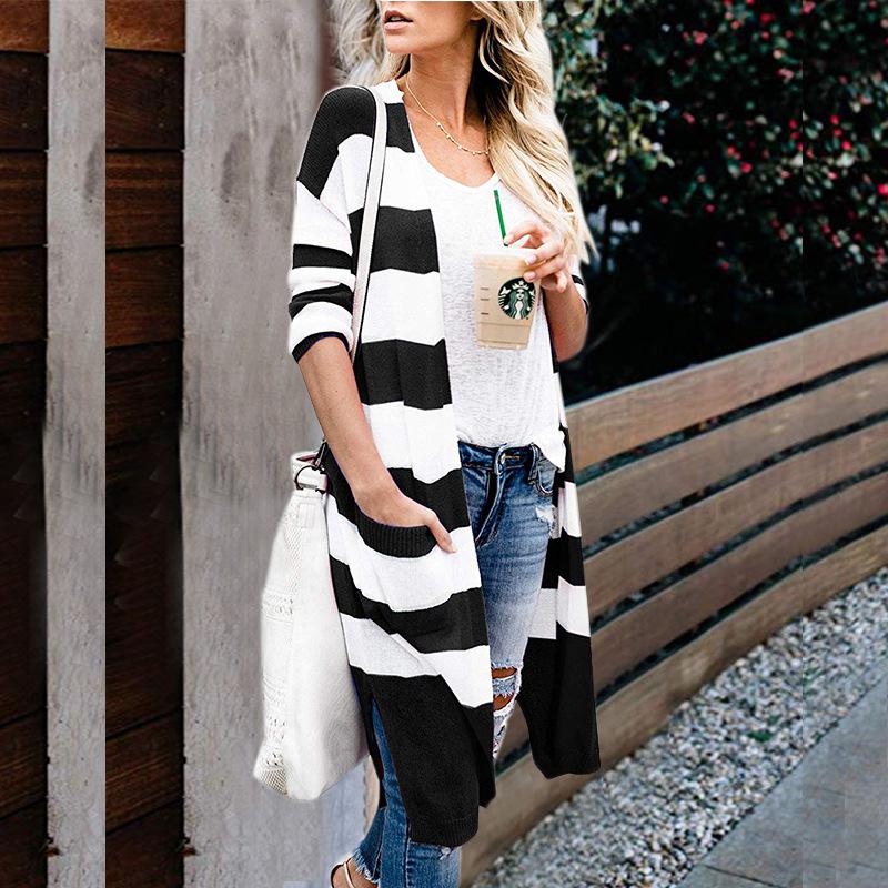 Nuevo suéter a rayas de Amazon para mujer en otoño e invierno, cárdigan de punto holgado de longitud media europeo y americano.