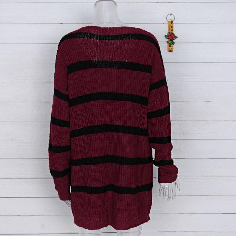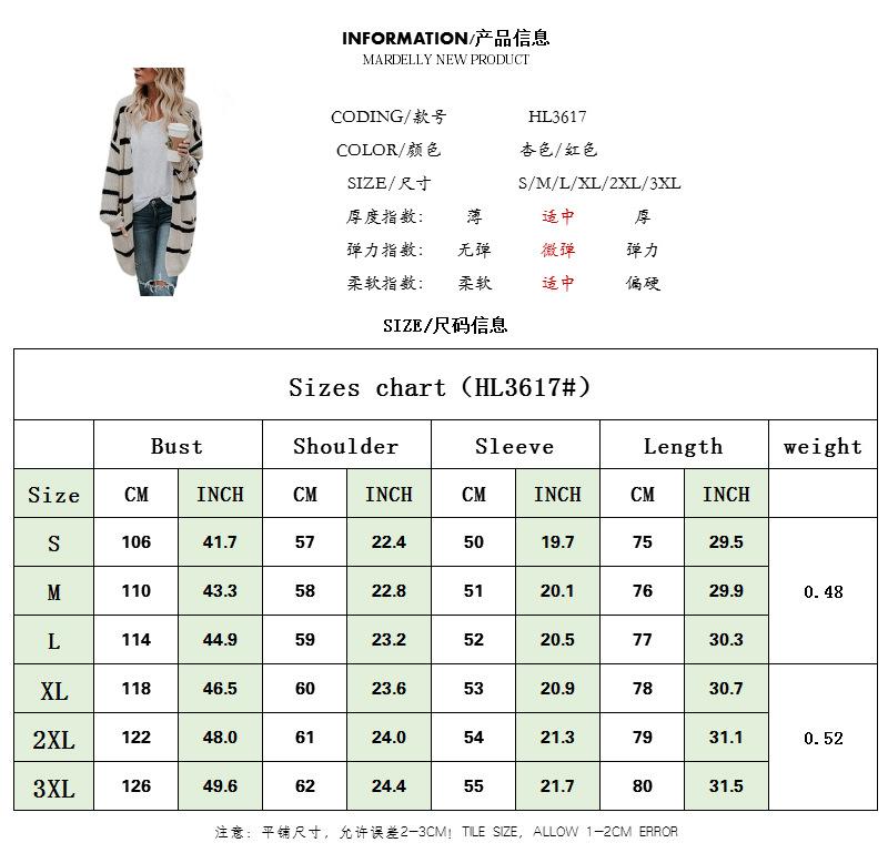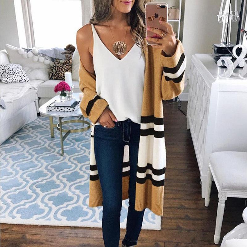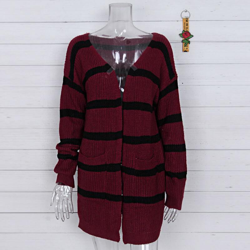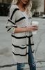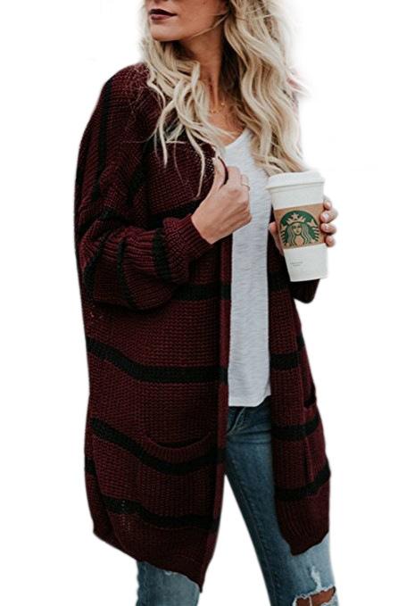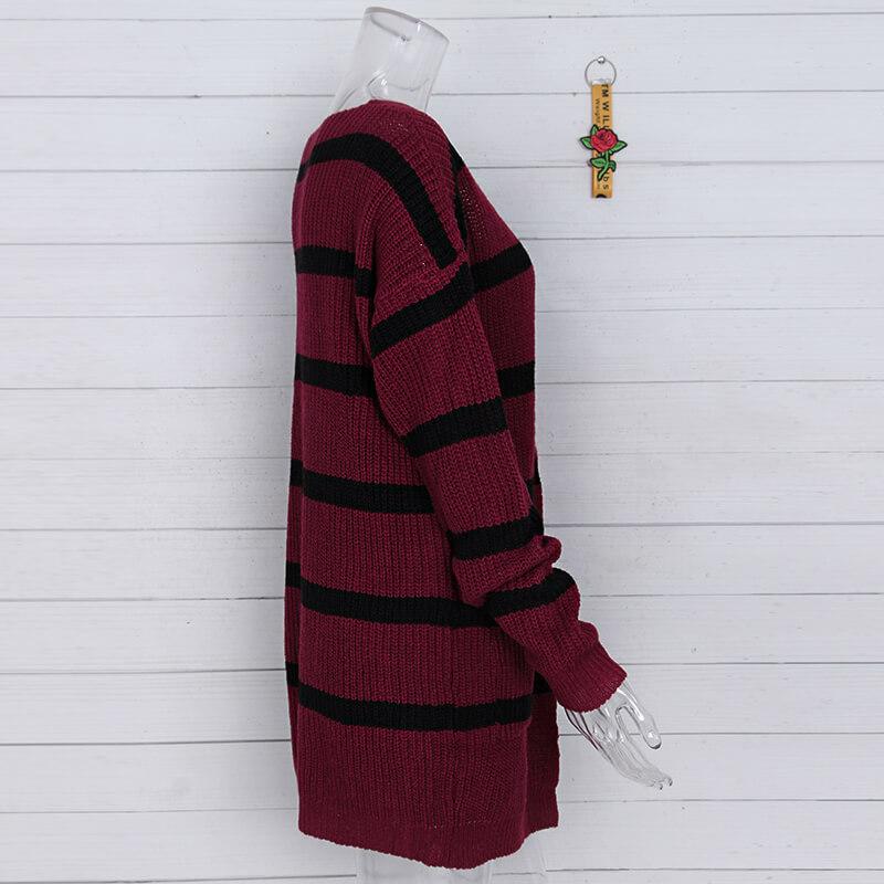 Nuevo suéter a rayas de Amazon para mujer en otoño e invierno, cárdigan de punto holgado de longitud media europeo y americano.