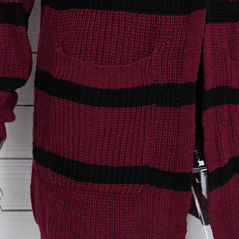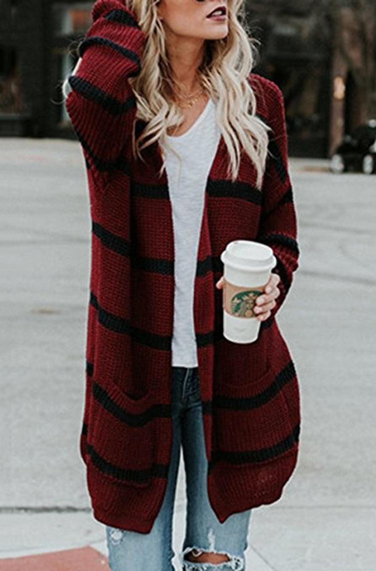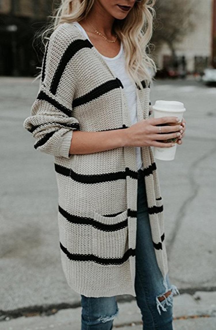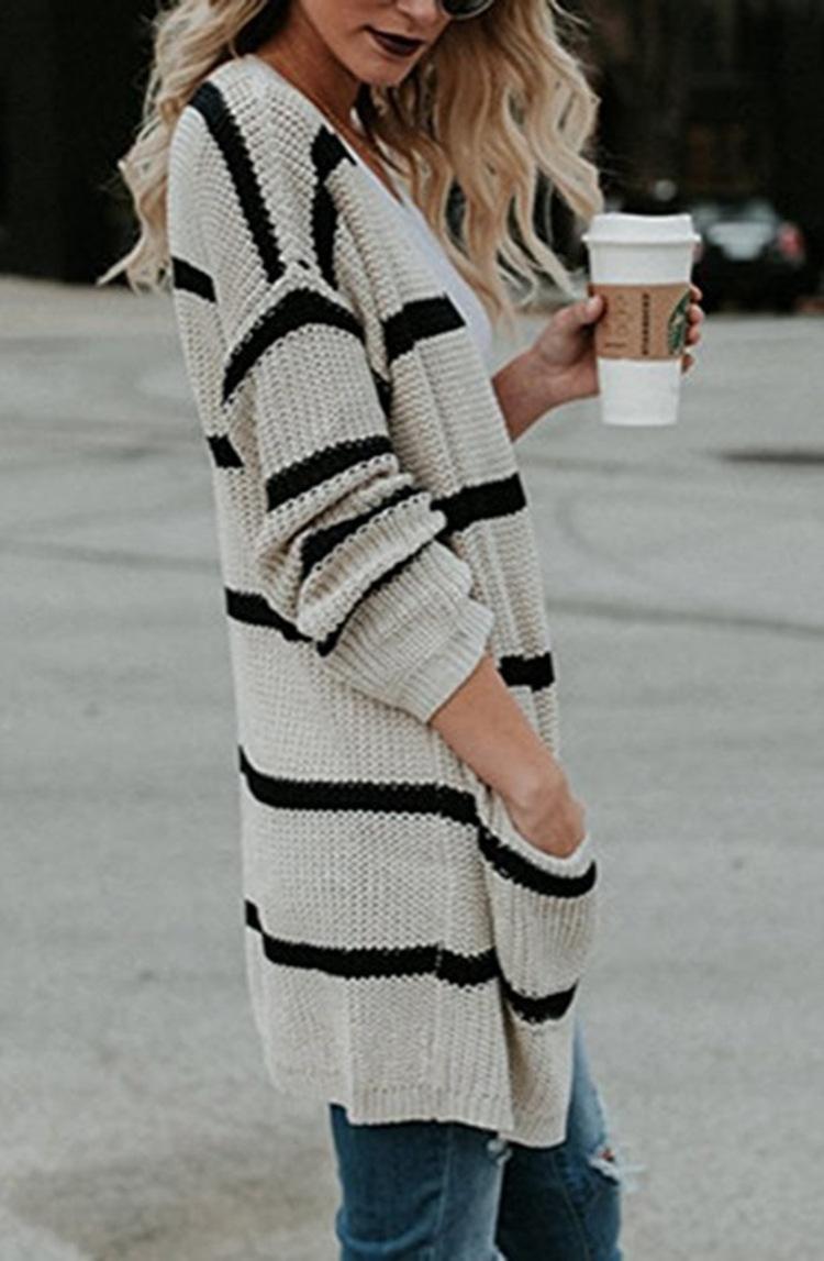 Suéter de otoño e invierno para mujer, nuevo cárdigan de punto a rayas con bolsillo de Amazon, abrigo fino para mujer
