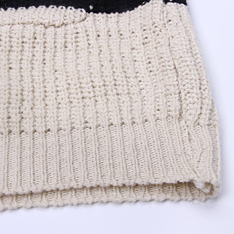 Suéter amazónico para mujer, otoño e invierno, nuevo suéter de punto largo con contraste de color, cárdigan con costuras europeas y americanas, abrigo para mujer