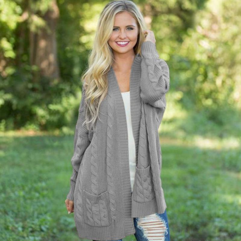 Suéter cárdigan de punto mediano y largo de comercio exterior europeo y americano de otoño e invierno de Amazon, fabricante de abrigos de mujer de una pieza, dropshipping