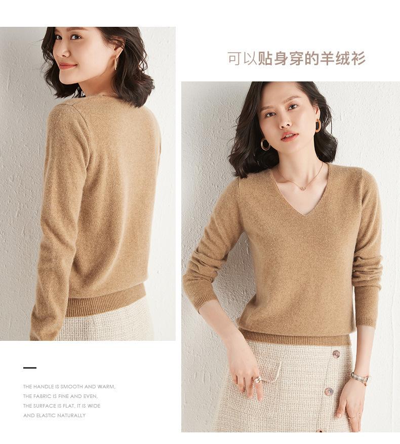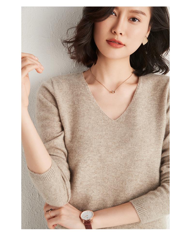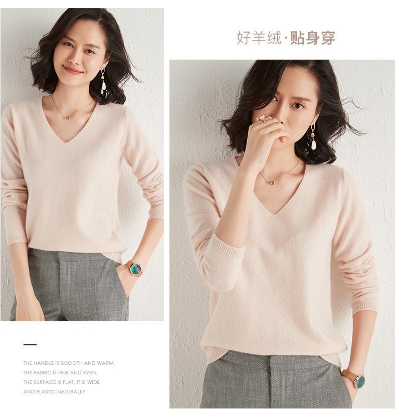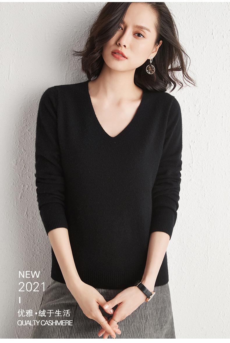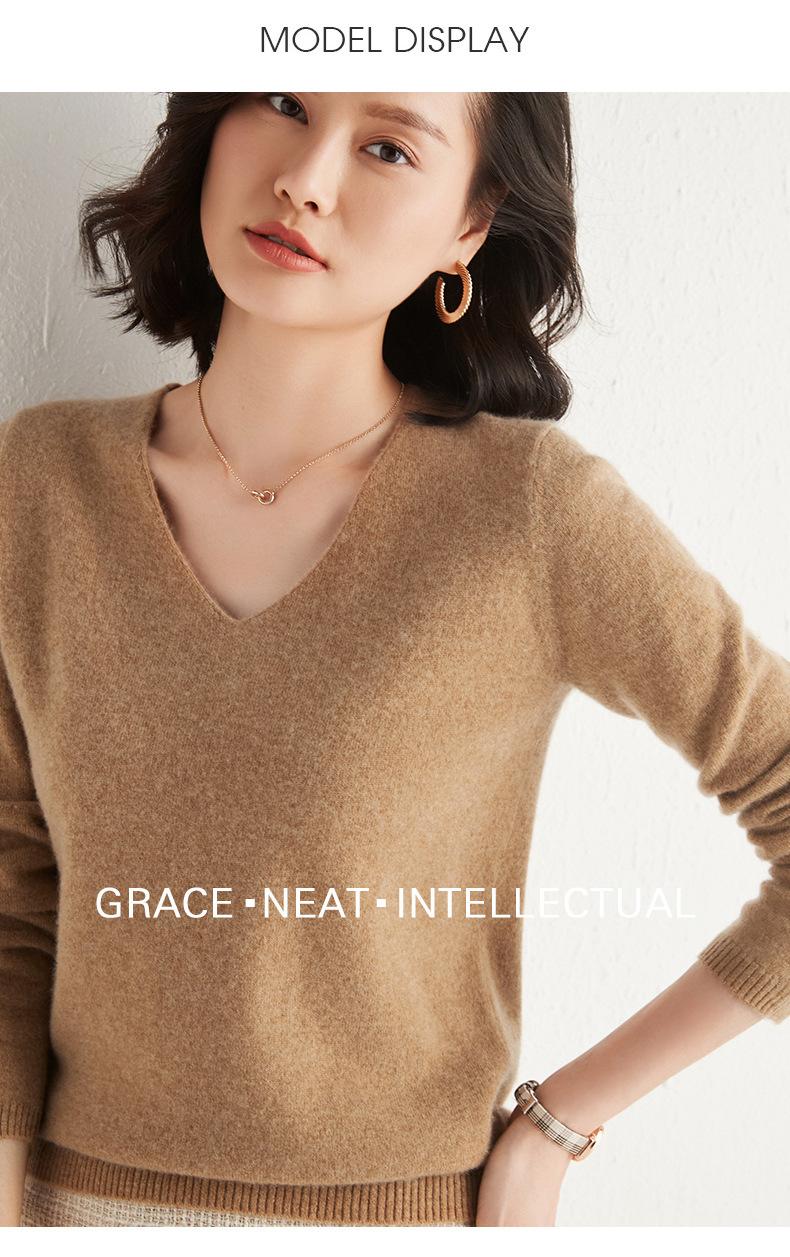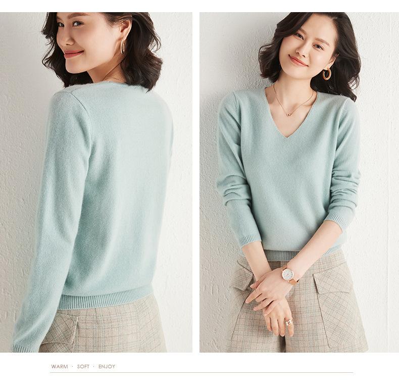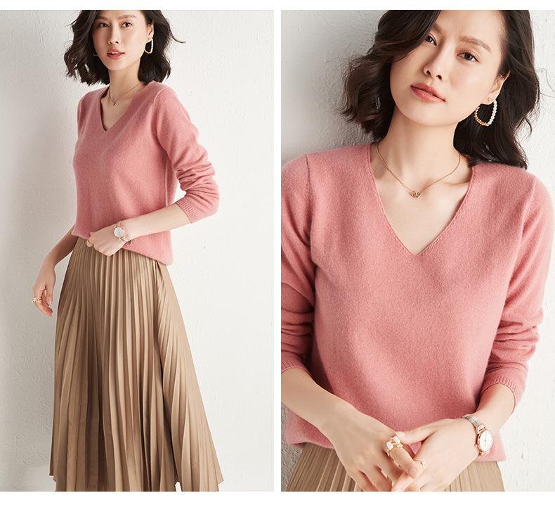 Temperamento Cuello en V Prendas de Punto de Cachemira para Mujer 2023 Otoño e Invierno Jersey Camiseta Básica Prendas de Punto de Lana Sueltas Prendas de Punto de Color Puro