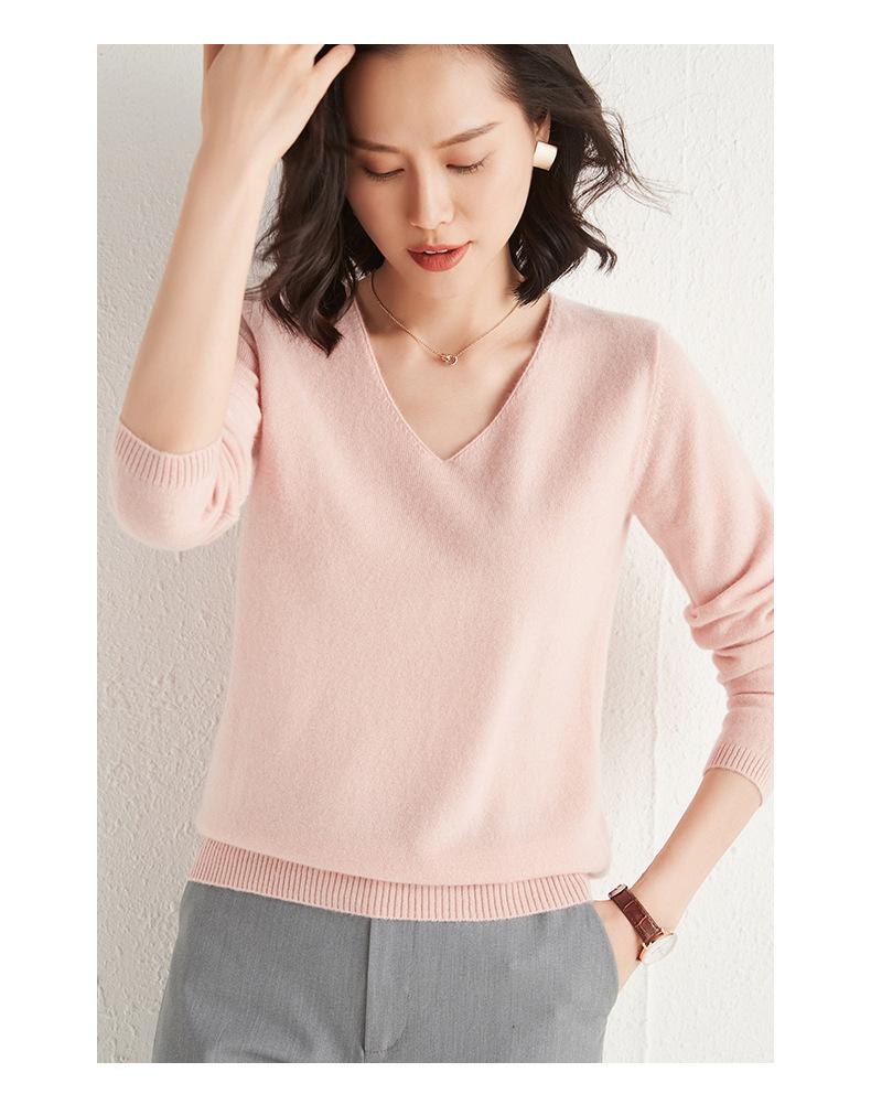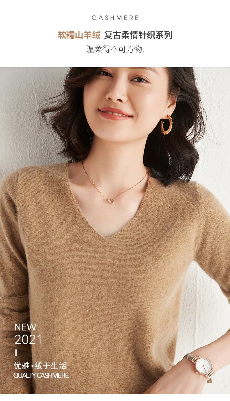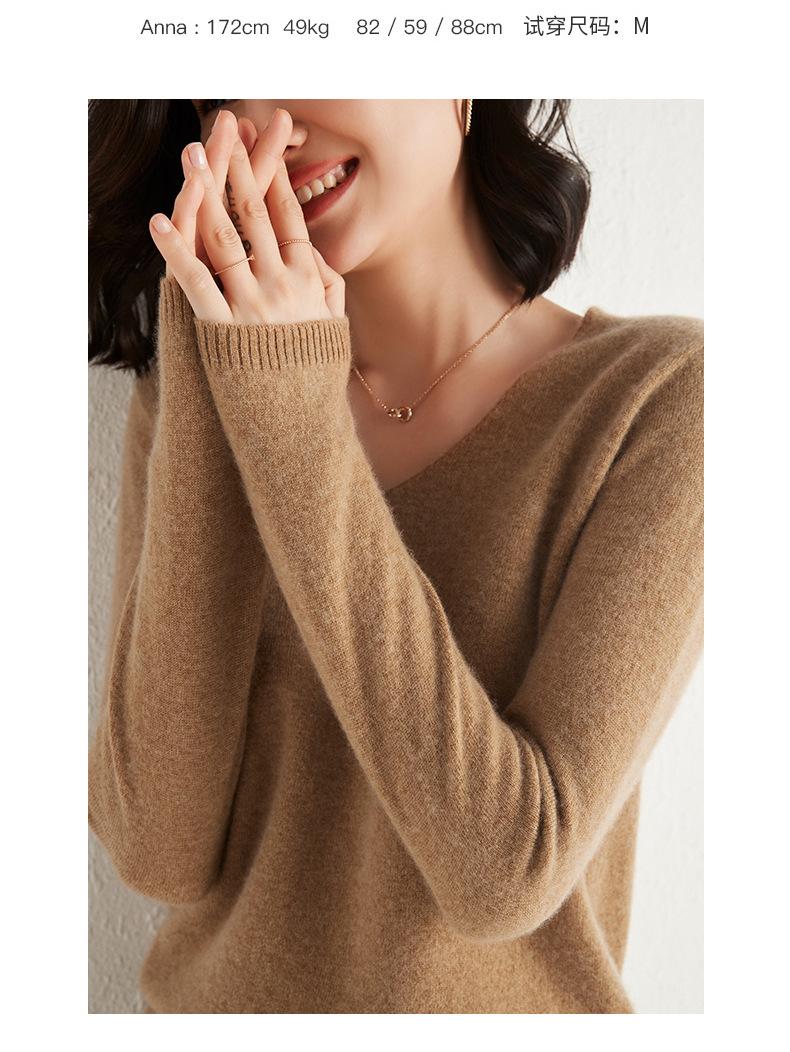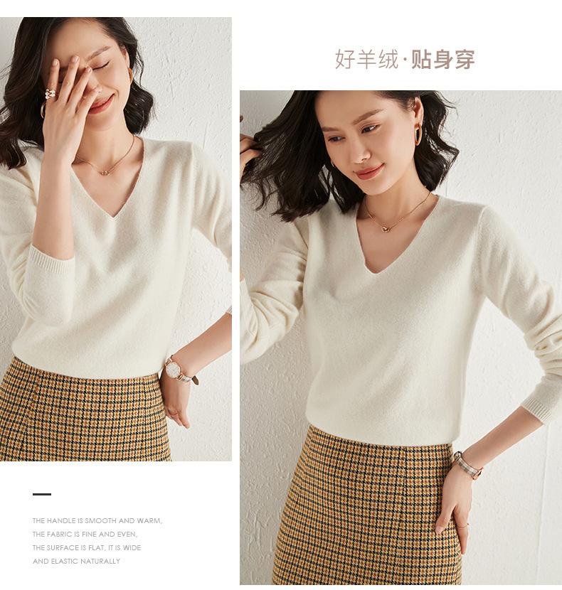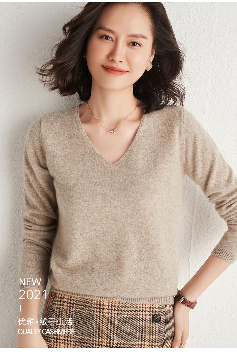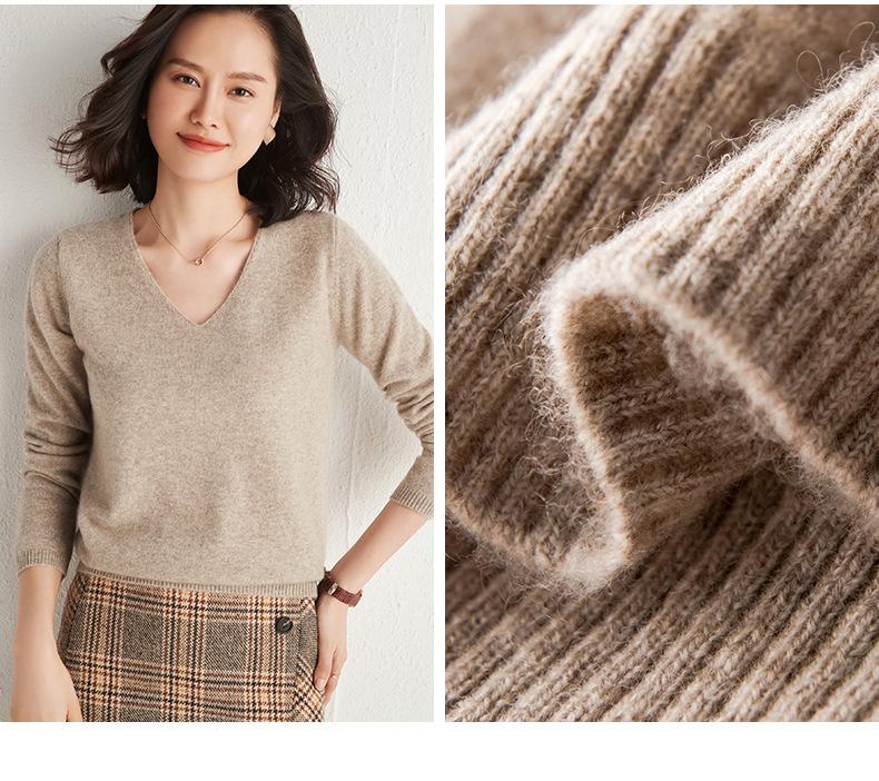 Temperamento Cuello en V Prendas de Punto de Cachemira para Mujer 2023 Otoño e Invierno Jersey Camiseta Básica Prendas de Punto de Lana Sueltas Prendas de Punto de Color Puro