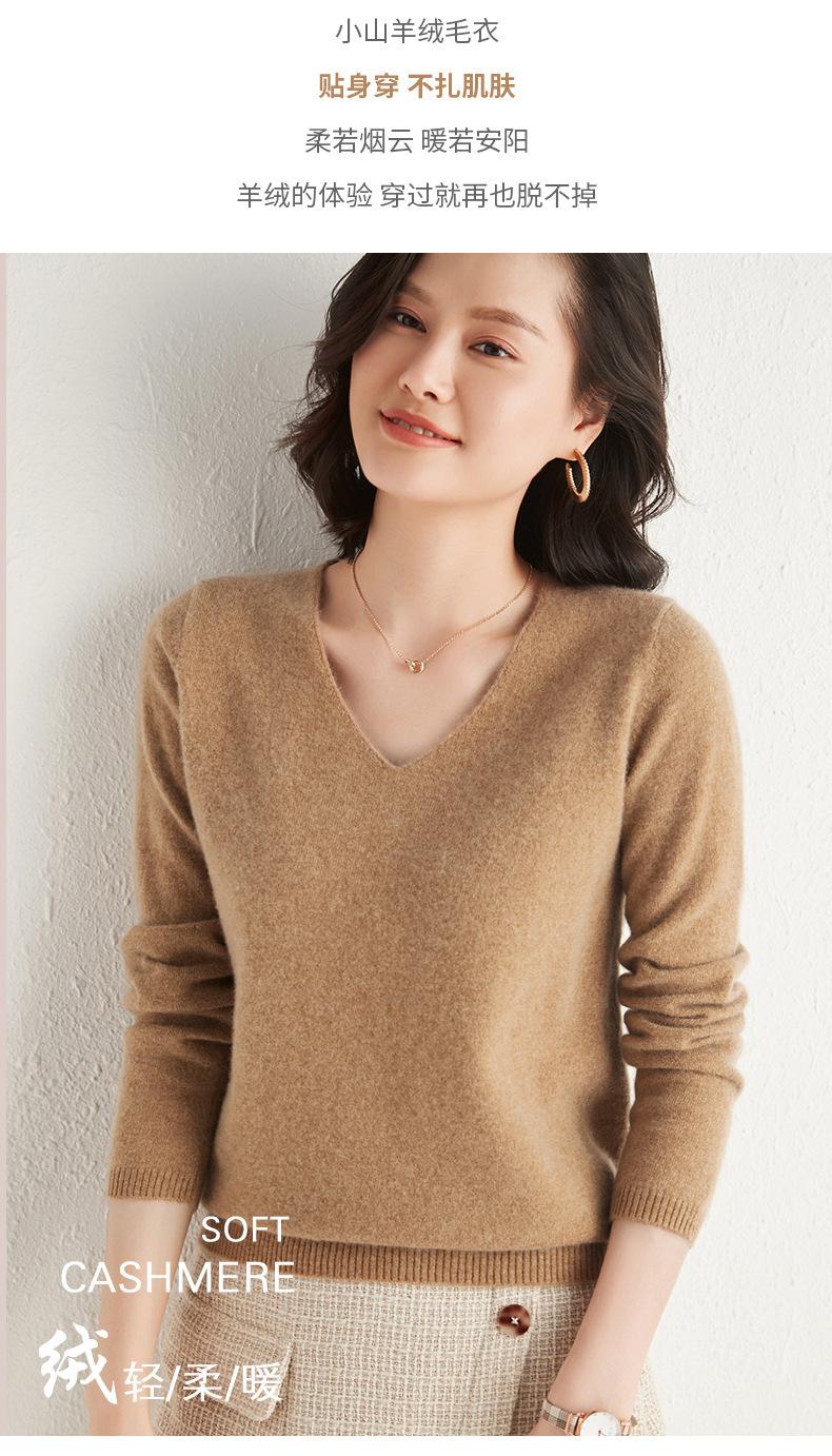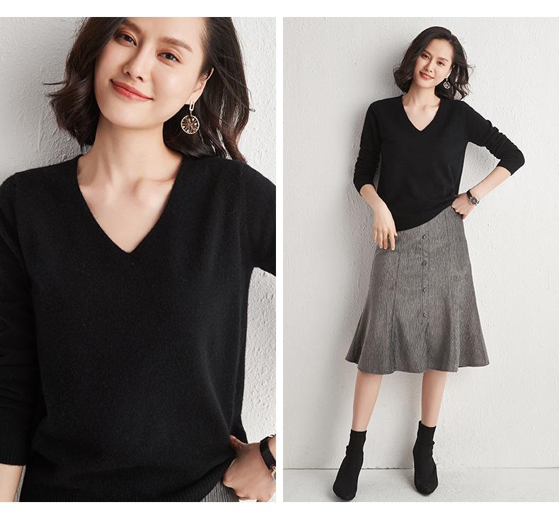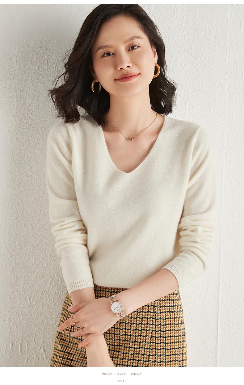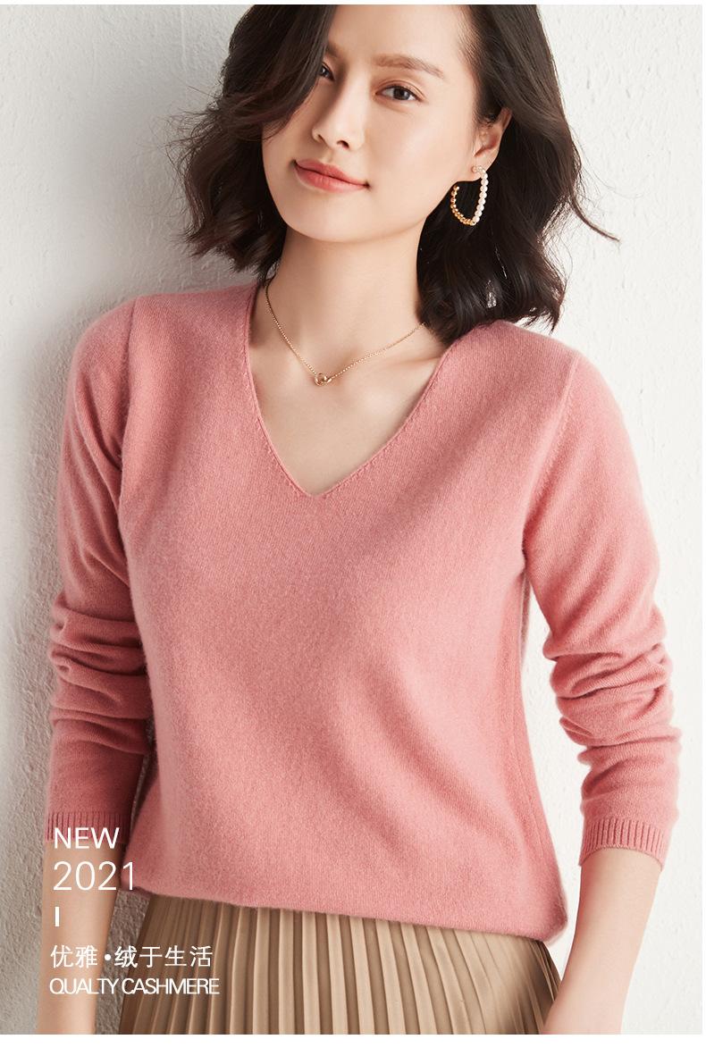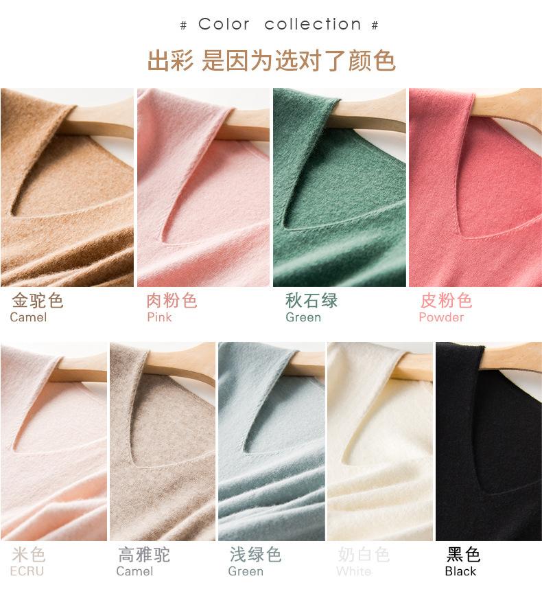 Temperamento Cuello en V Prendas de Punto de Cachemira para Mujer 2023 Otoño e Invierno Jersey Camiseta Básica Prendas de Punto de Lana Sueltas Prendas de Punto de Color Puro