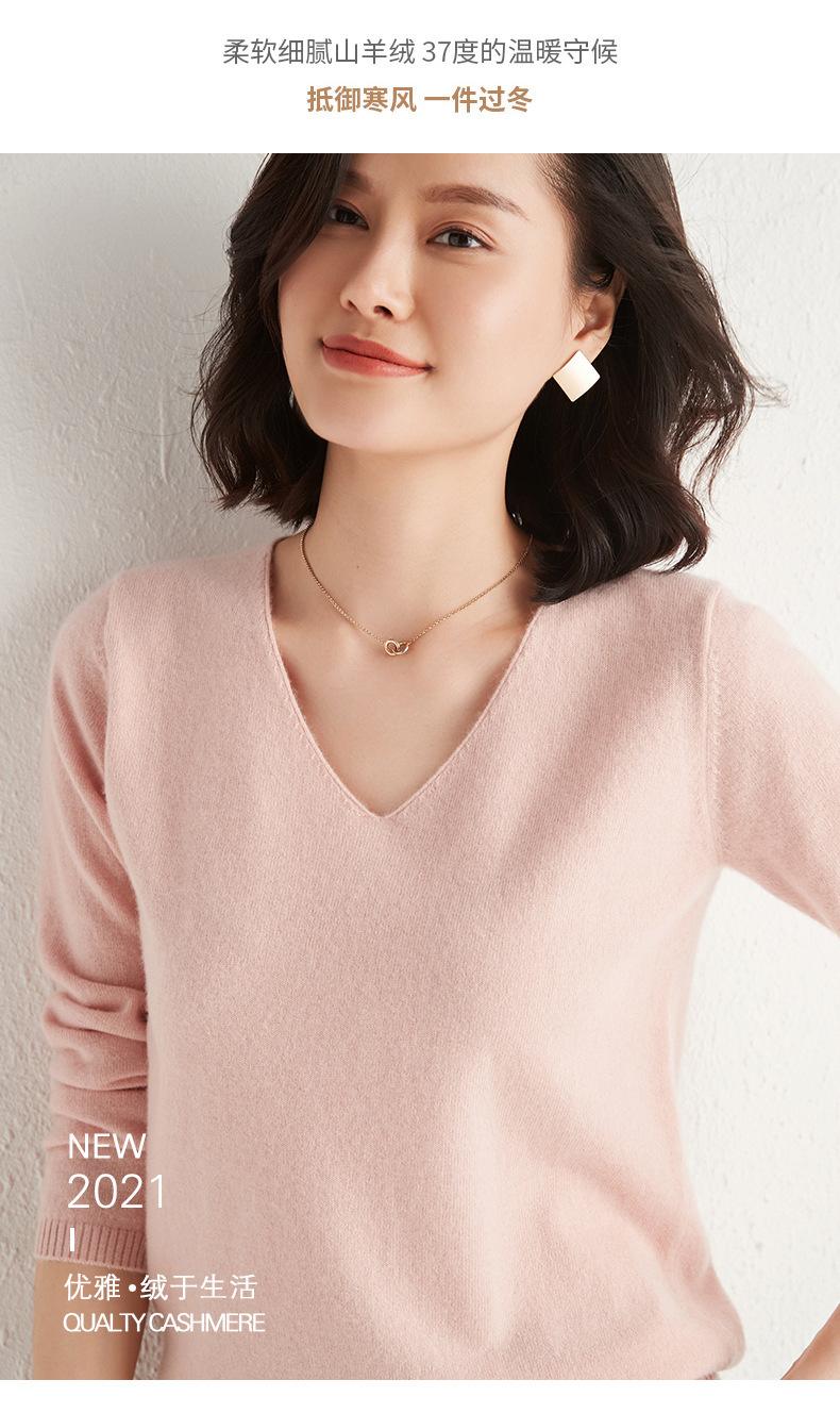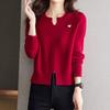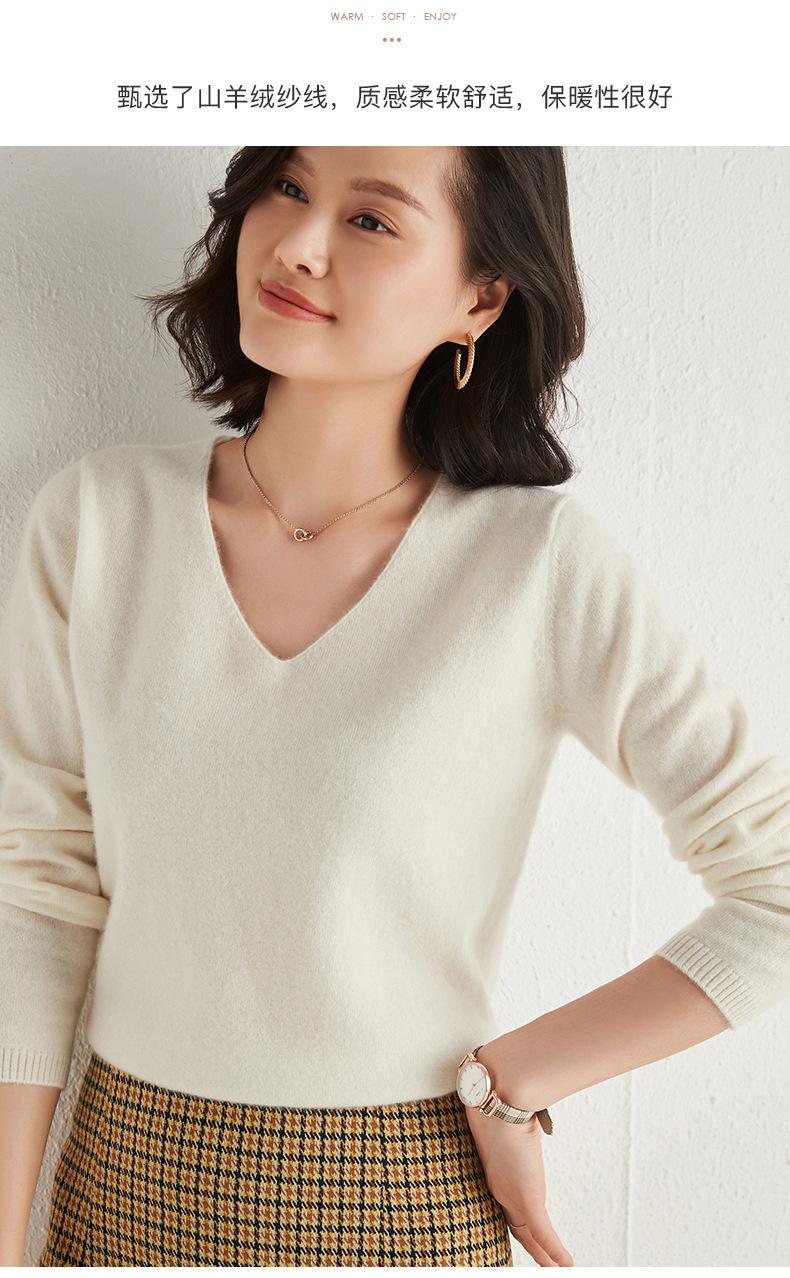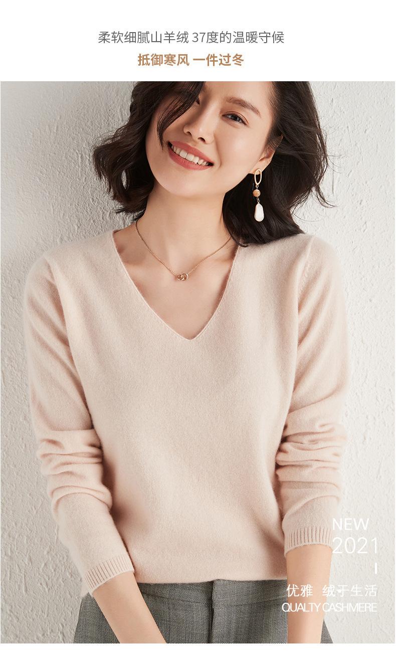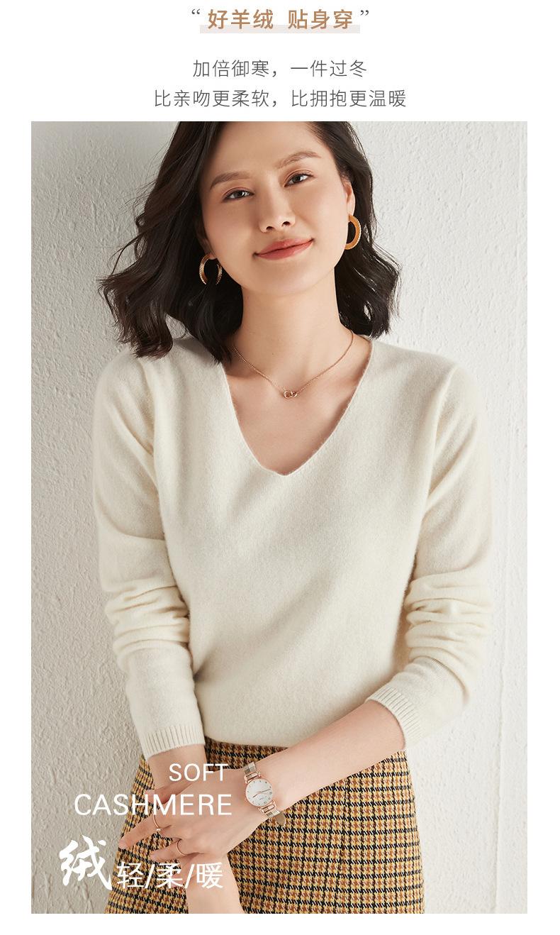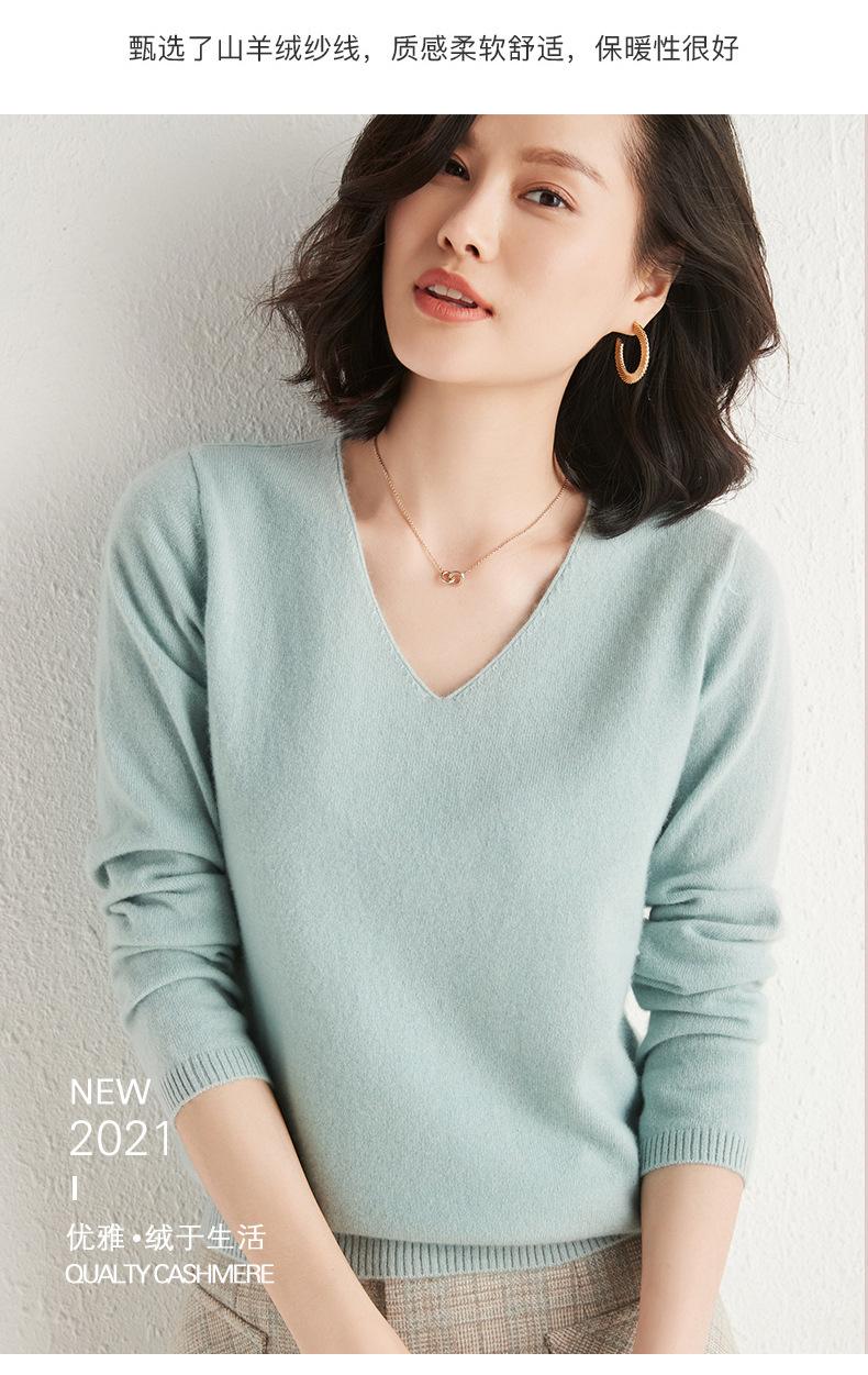 Temperamento Cuello en V Prendas de Punto de Cachemira para Mujer 2023 Otoño e Invierno Jersey Camiseta Básica Prendas de Punto de Lana Sueltas Prendas de Punto de Color Puro