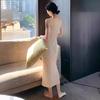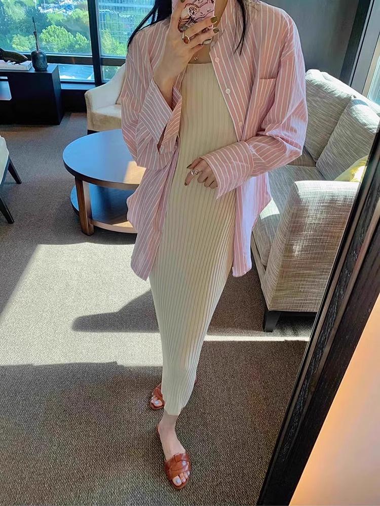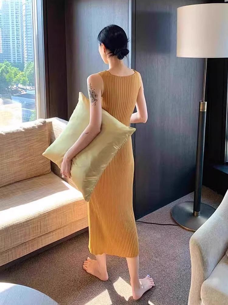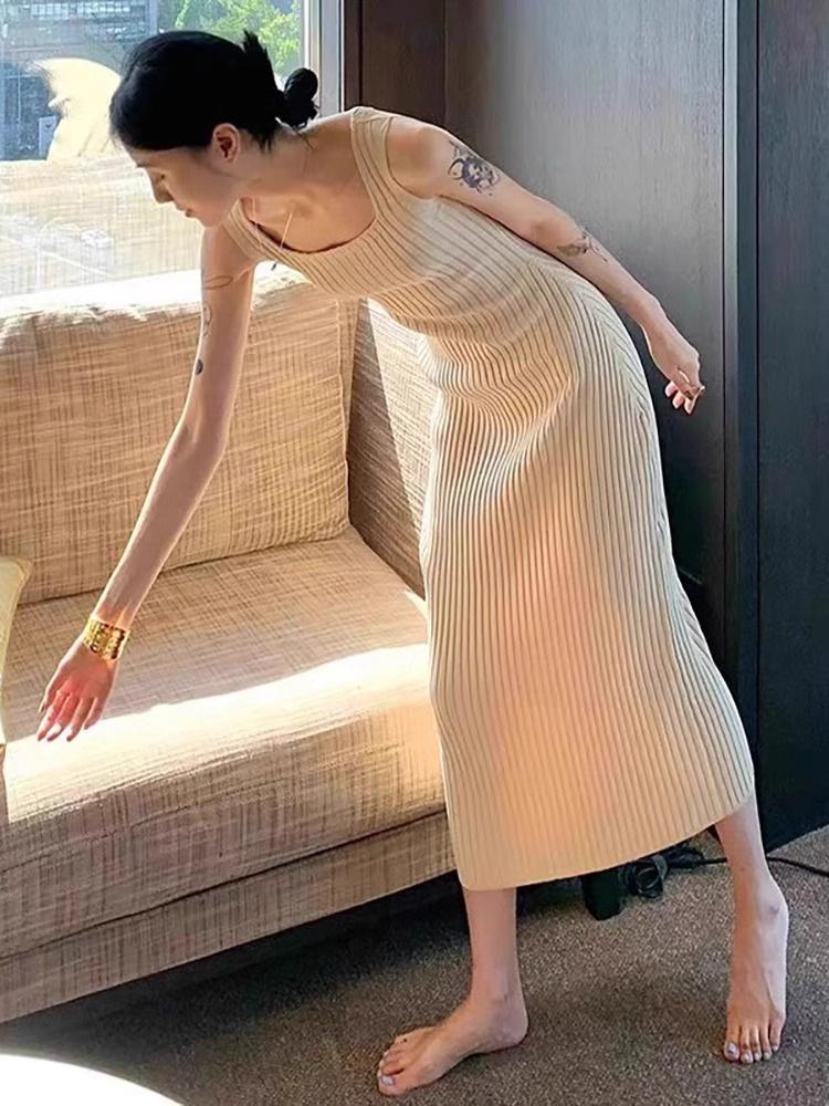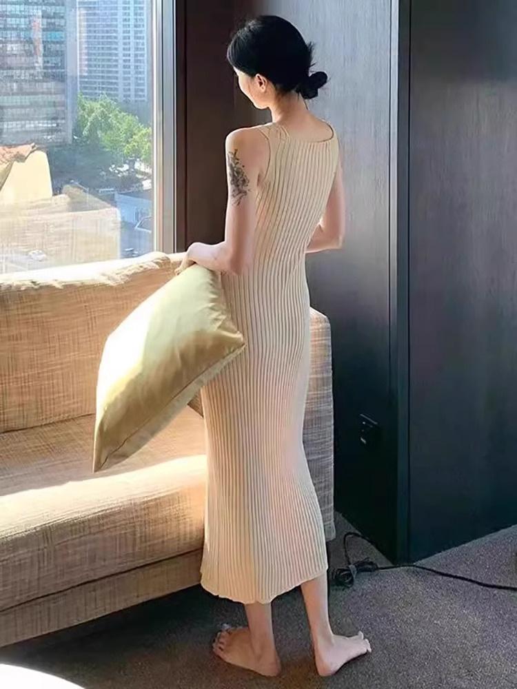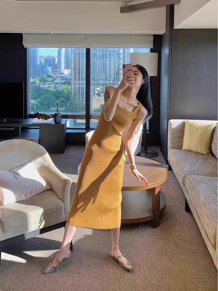 Vestido de Punto sin Mangas Albaricoque de Alta Gama Francés Otoño Temprano Adelgazante Camisola Falda Larga
