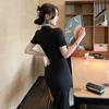2025 Nuevo Verano Nuevo Chinoiserie Cheongsam Mejorado Falda de Cadera Look Adelgazante Vestido Negro de Manga Corta 5846