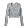 Conjunto de dos piezas de punto de estilo europeo y americano para mujer, cárdigan de manga larga con cuello en V y camisola interior en color otoño 2023