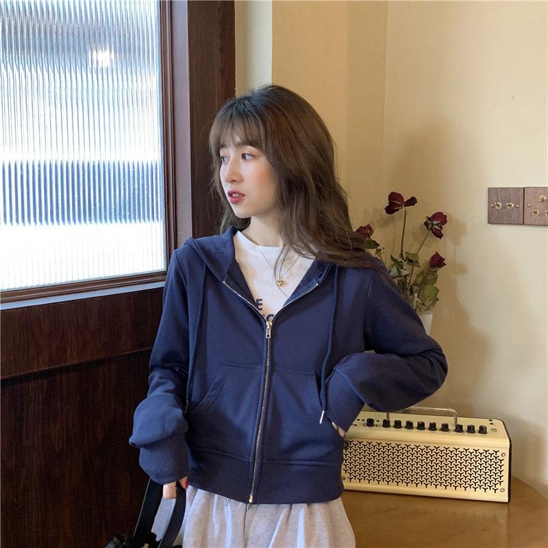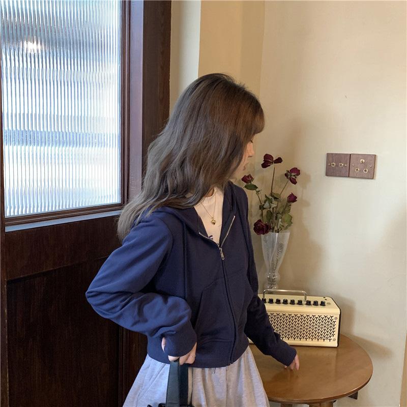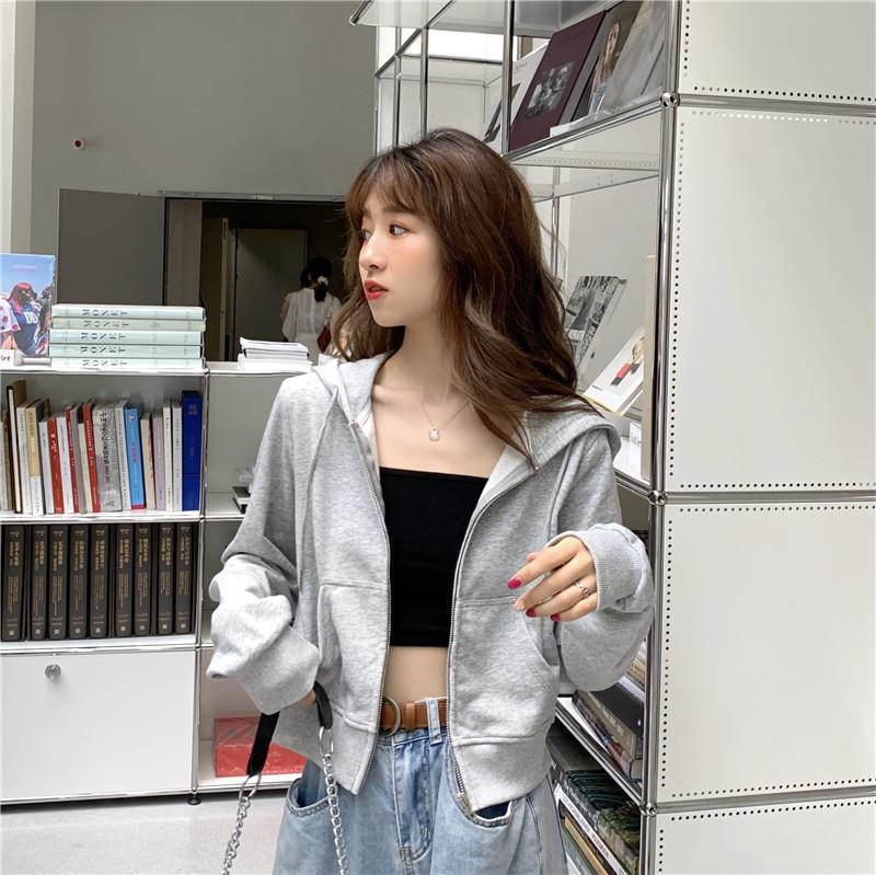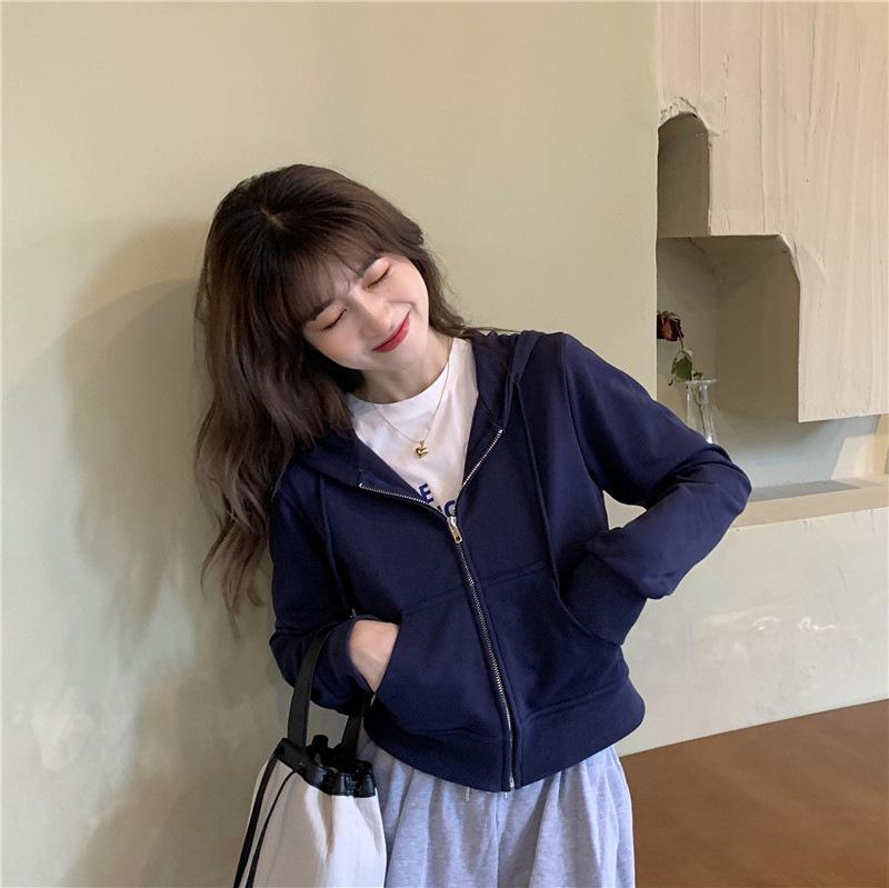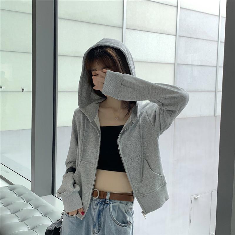Chaqueta con Cierre para Mujer Otoño 2025 Nuevo Estilo Coreano Suelto Moderno con Capucha Manga Larga Cárdigan Delgado Sudadera para Mujer