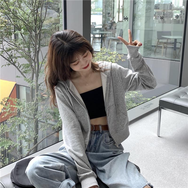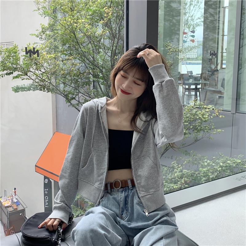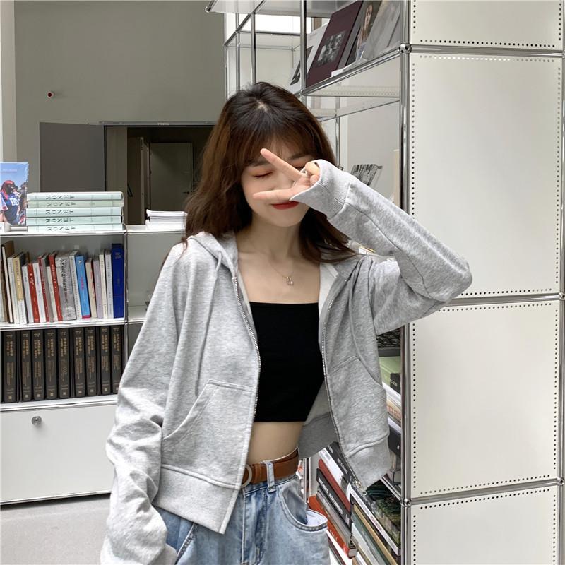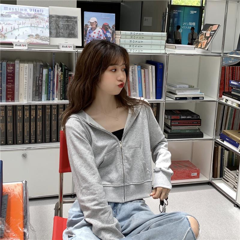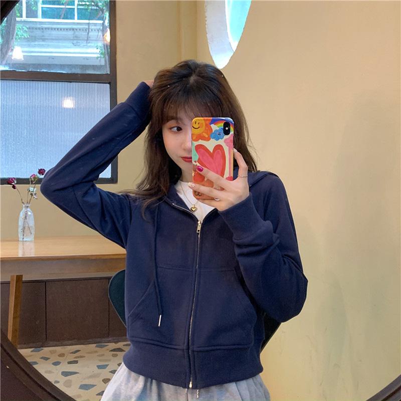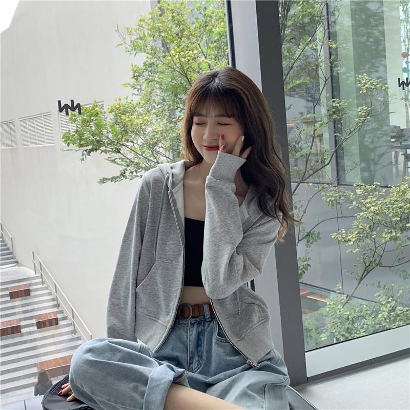 Chaqueta con Cierre para Mujer Otoño 2025 Nuevo Estilo Coreano Suelto Moderno con Capucha Manga Larga Cárdigan Delgado Sudadera para Mujer