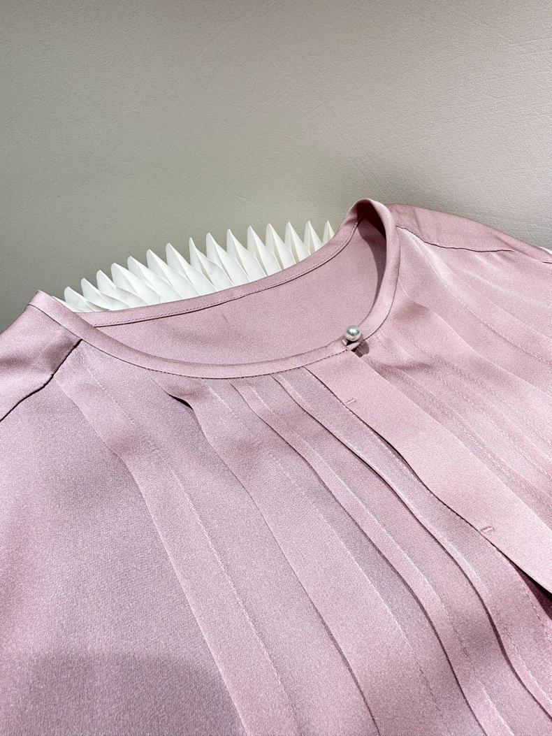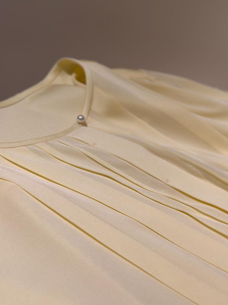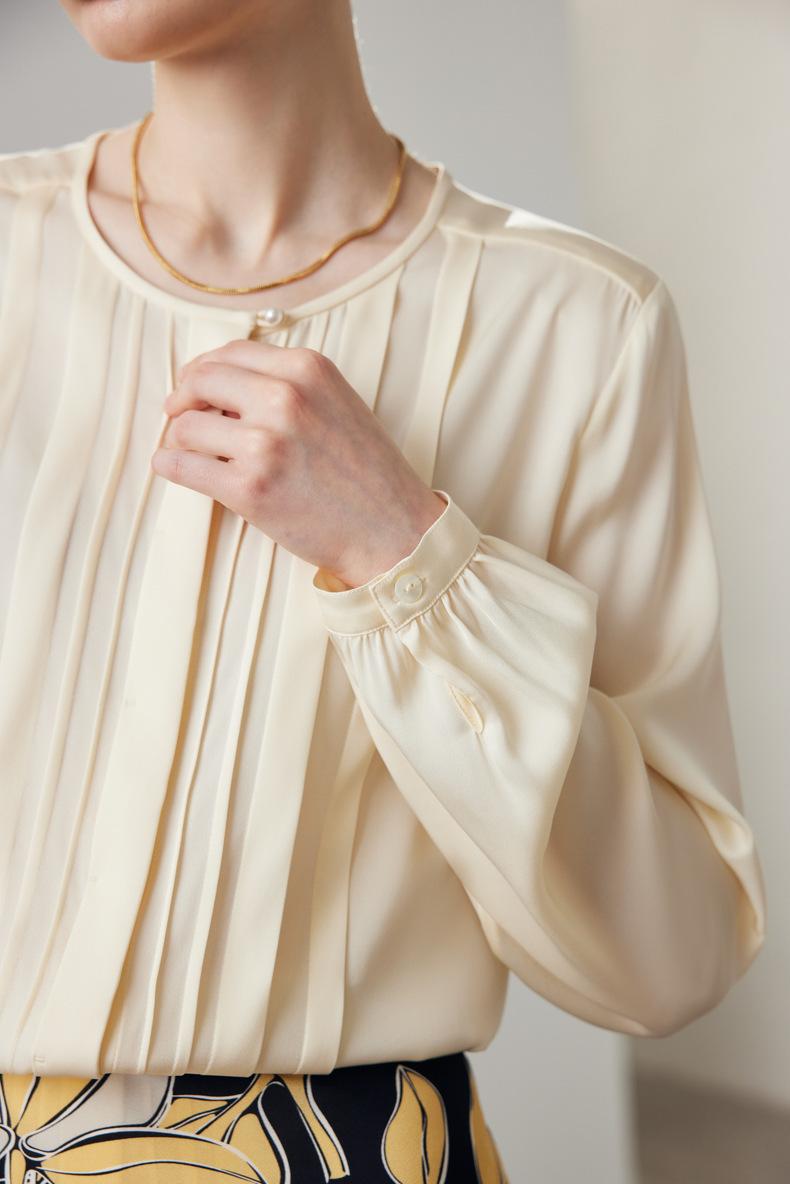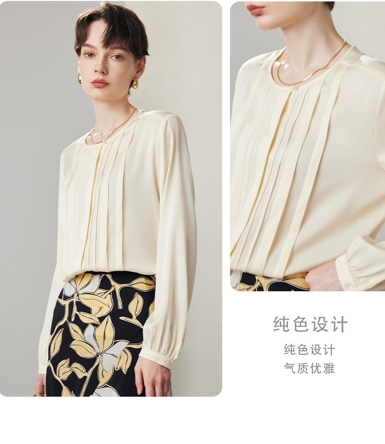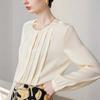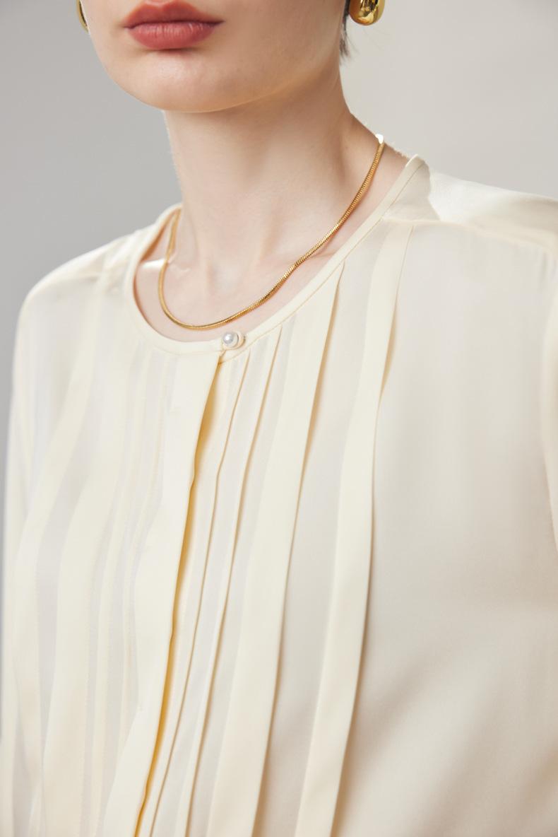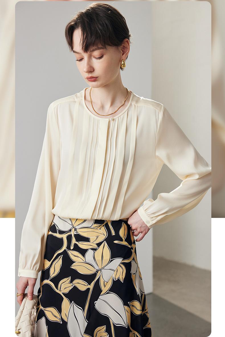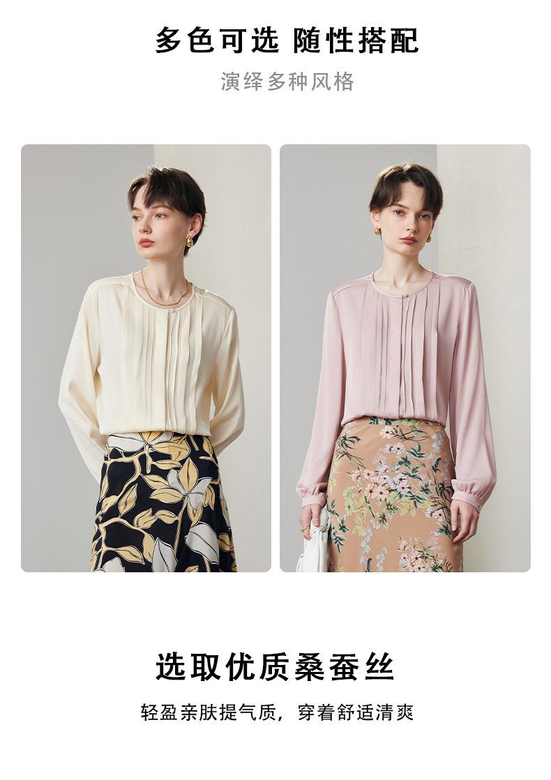 Camisa de Seda para Mujer Primavera y Verano 2025 Cuello Redondo Rayada Color Sólido para Ir al Trabajo 19 Mumi Elástica Doble Joe Camisa de Seda Mulberry
