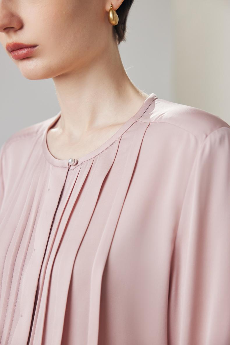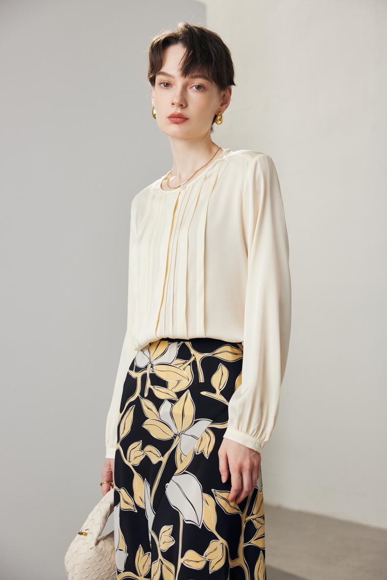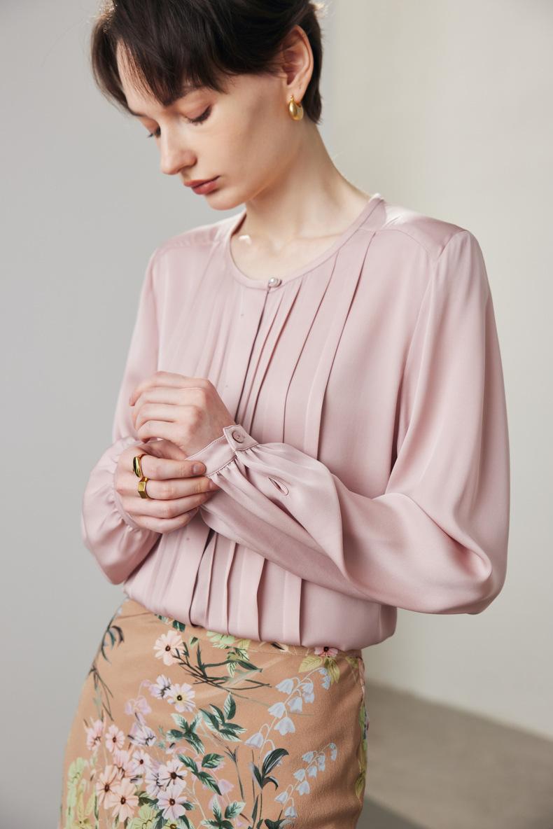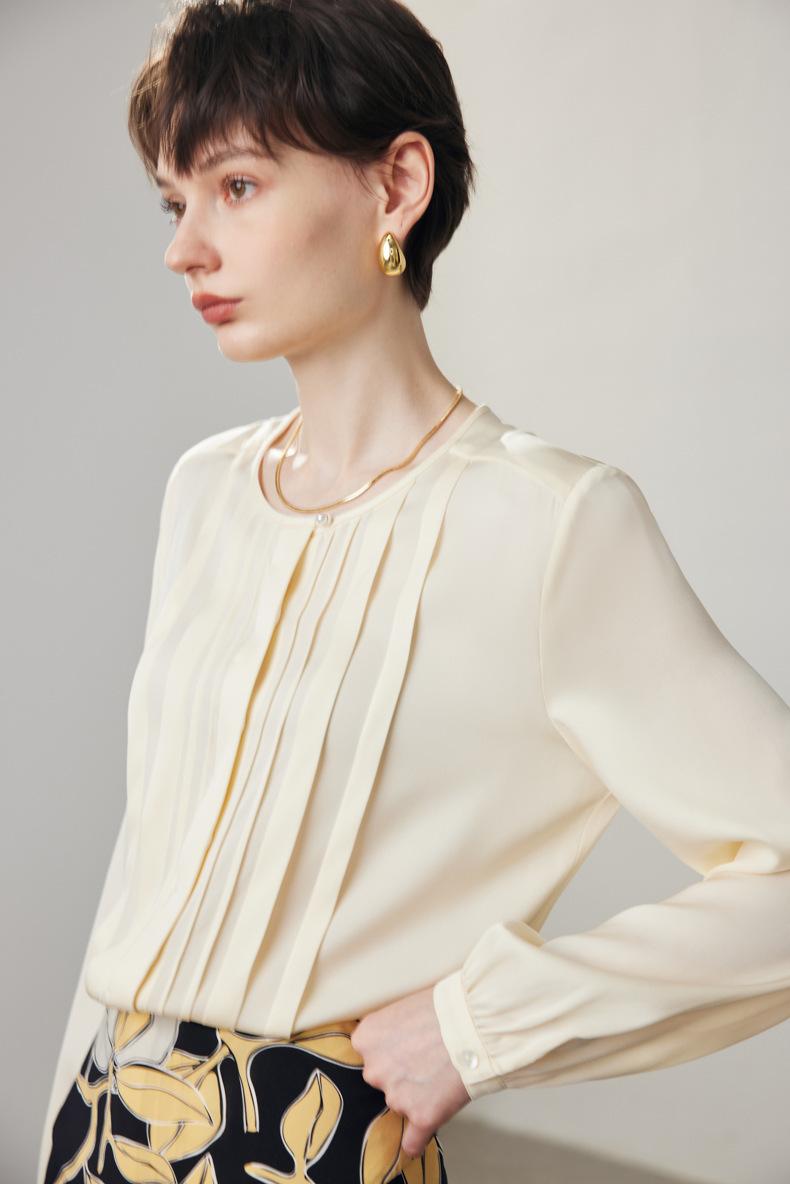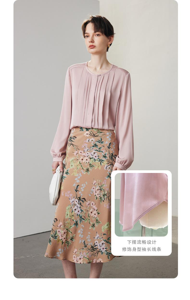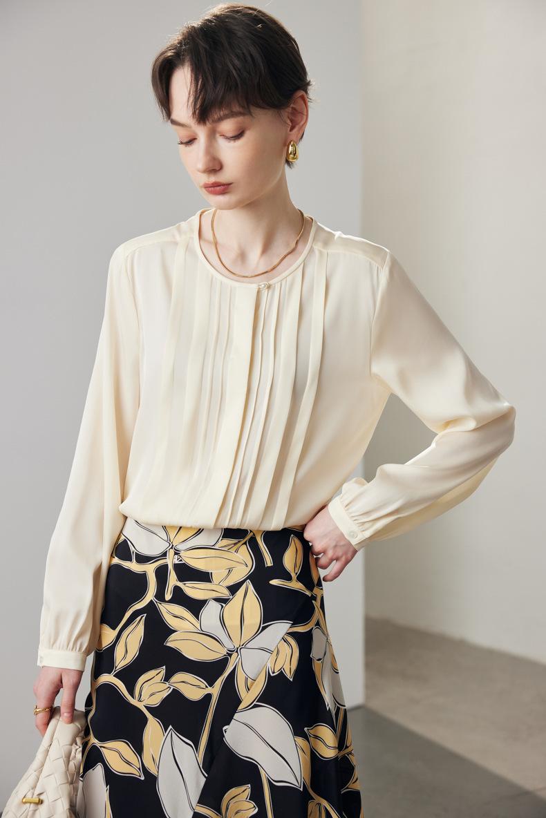 Camisa de Seda para Mujer Primavera y Verano 2025 Cuello Redondo Rayada Color Sólido para Ir al Trabajo 19 Mumi Elástica Doble Joe Camisa de Seda Mulberry