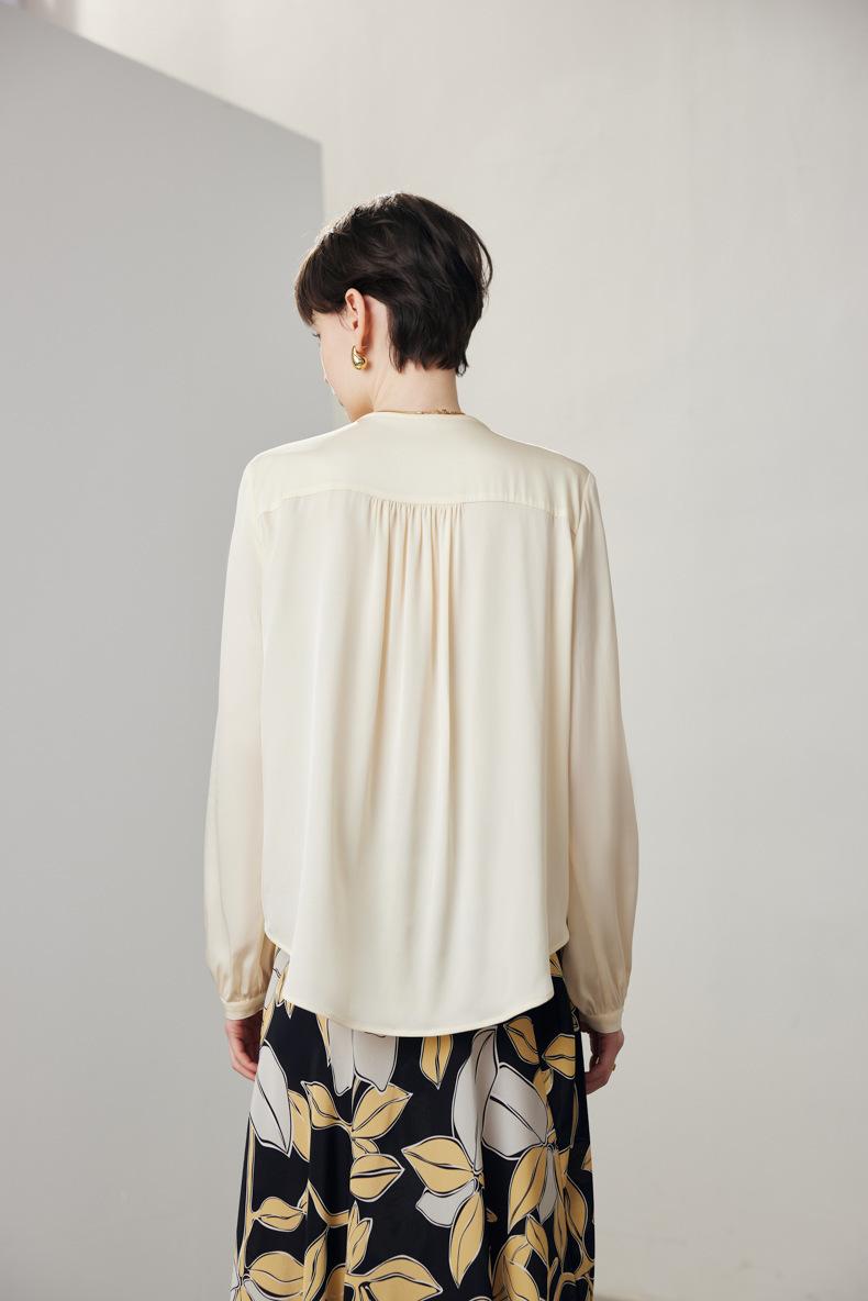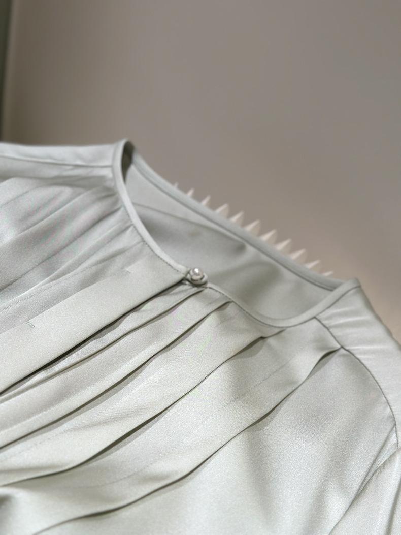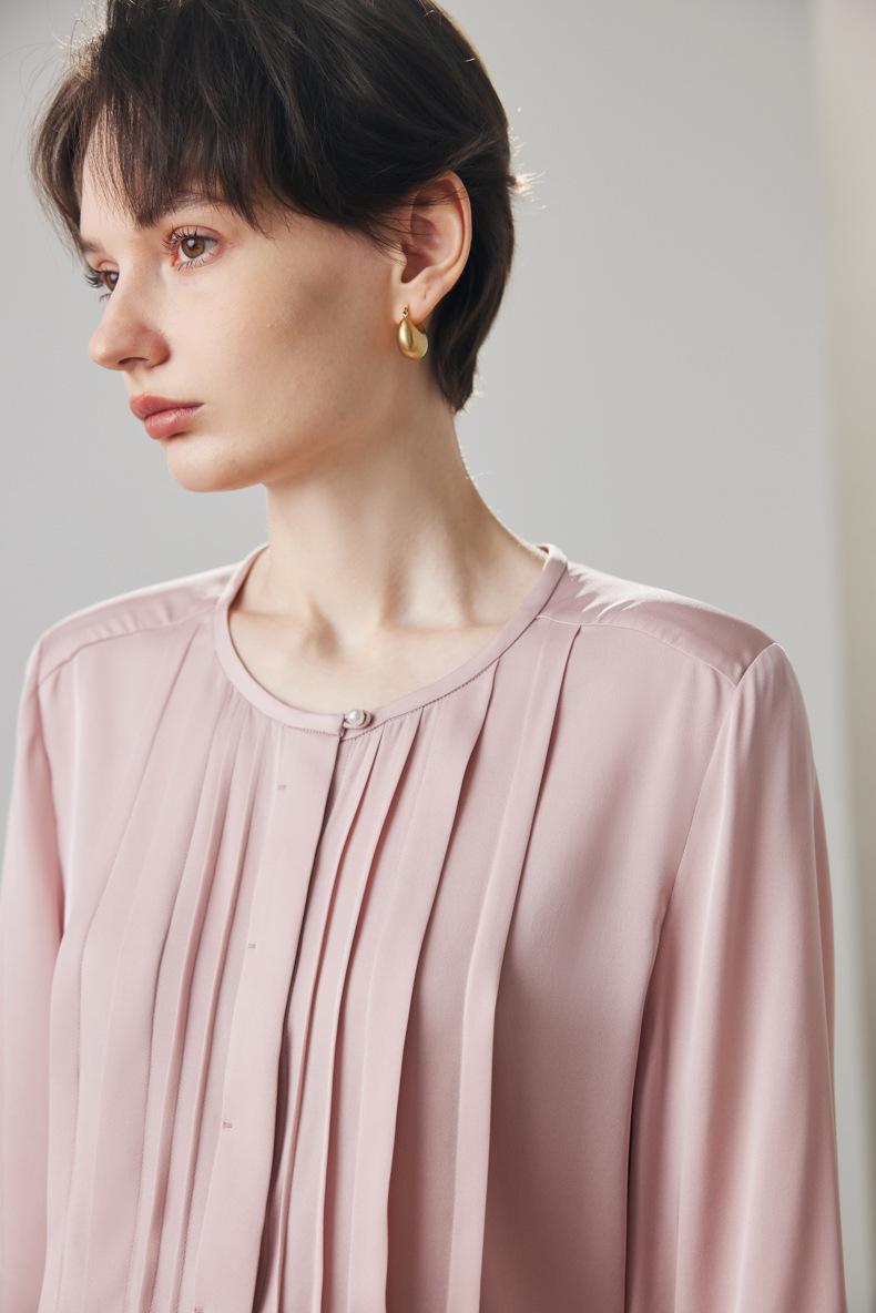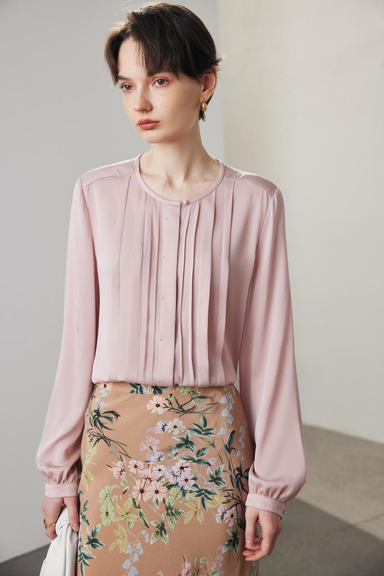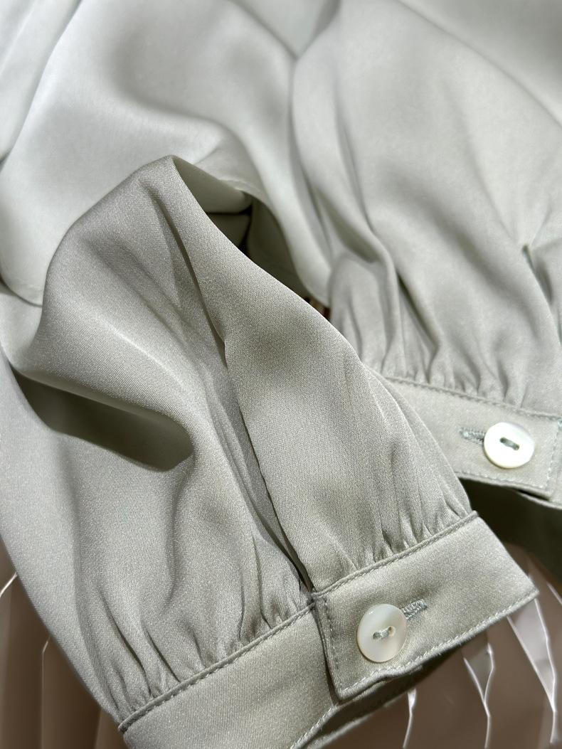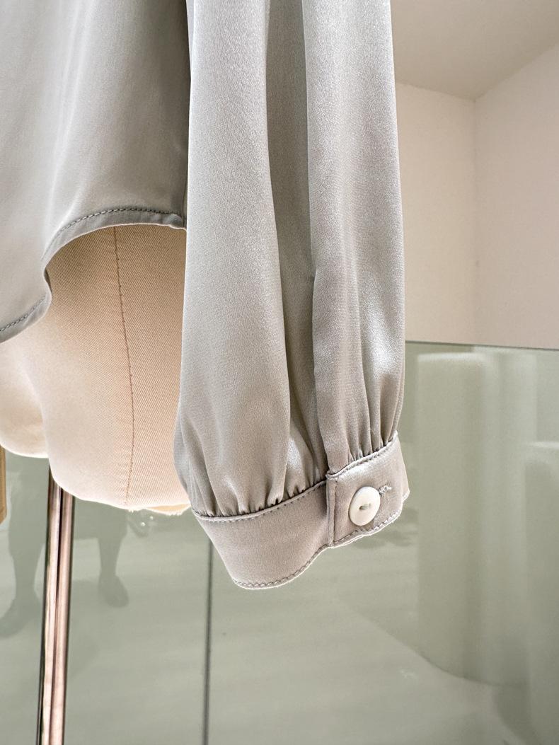 Camisa de Seda para Mujer Primavera y Verano 2025 Cuello Redondo Rayada Color Sólido para Ir al Trabajo 19 Mumi Elástica Doble Joe Camisa de Seda Mulberry