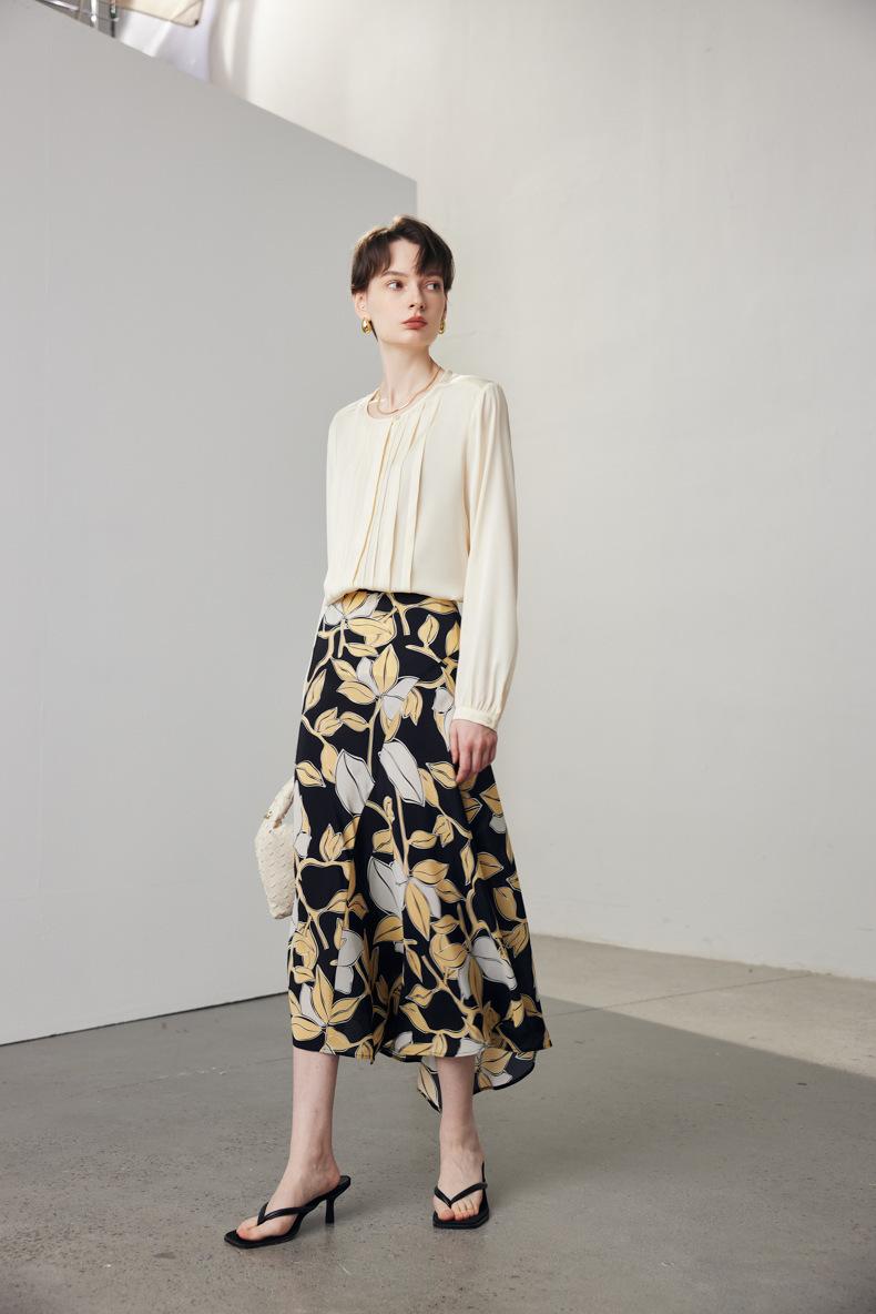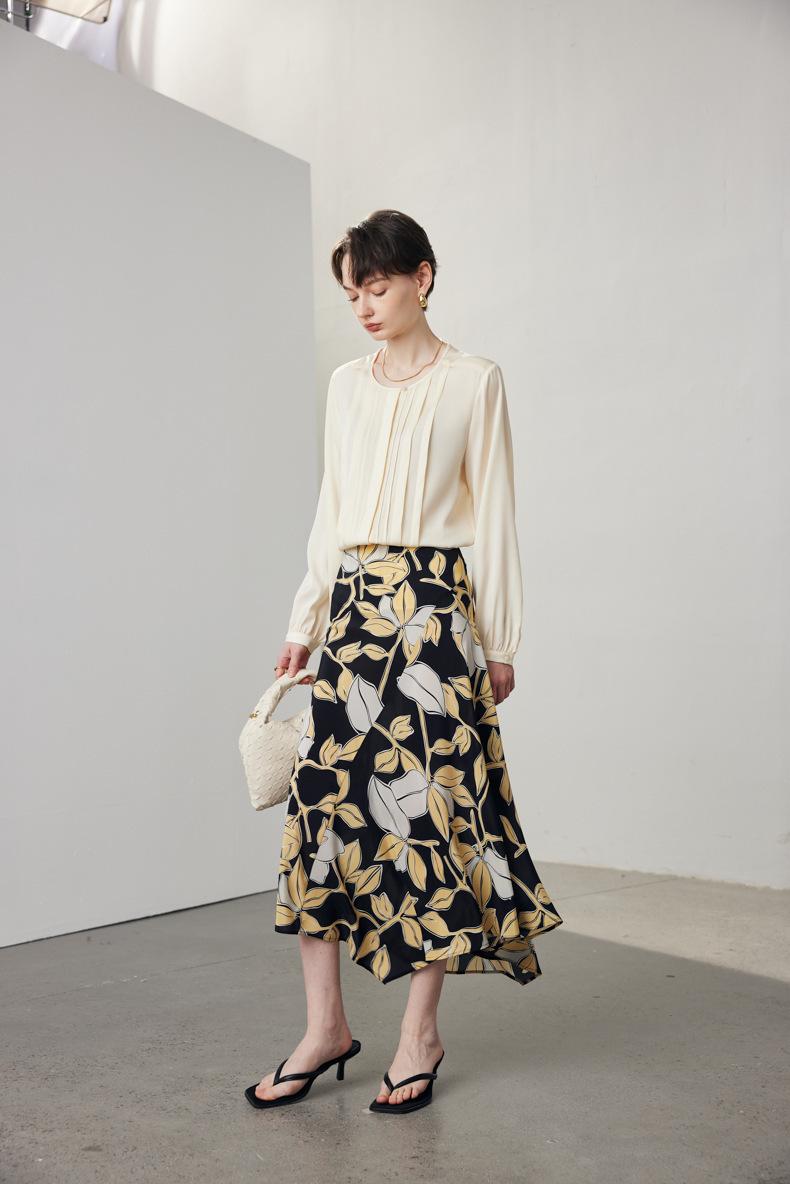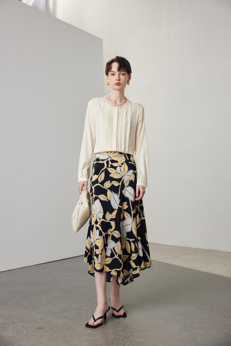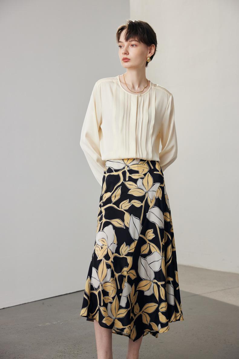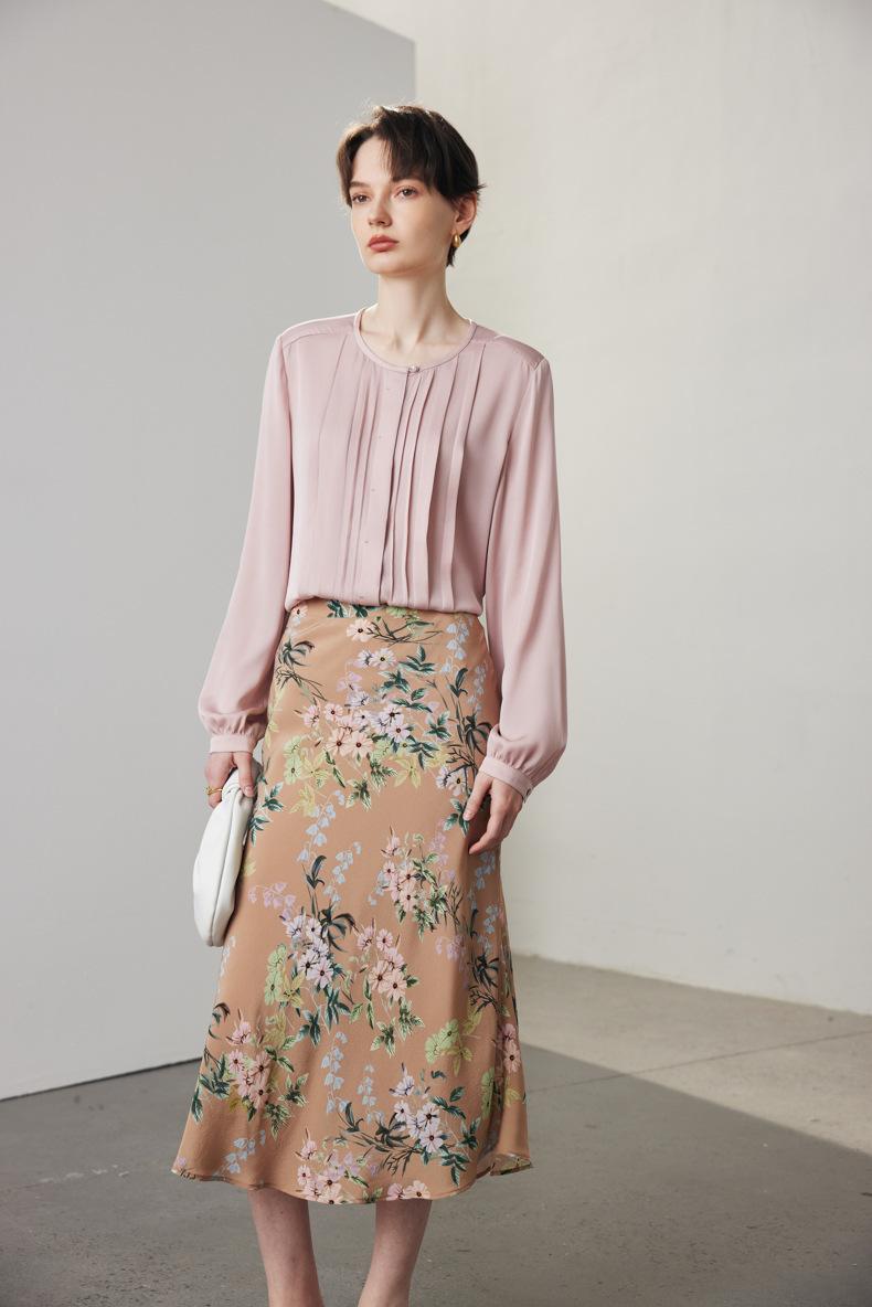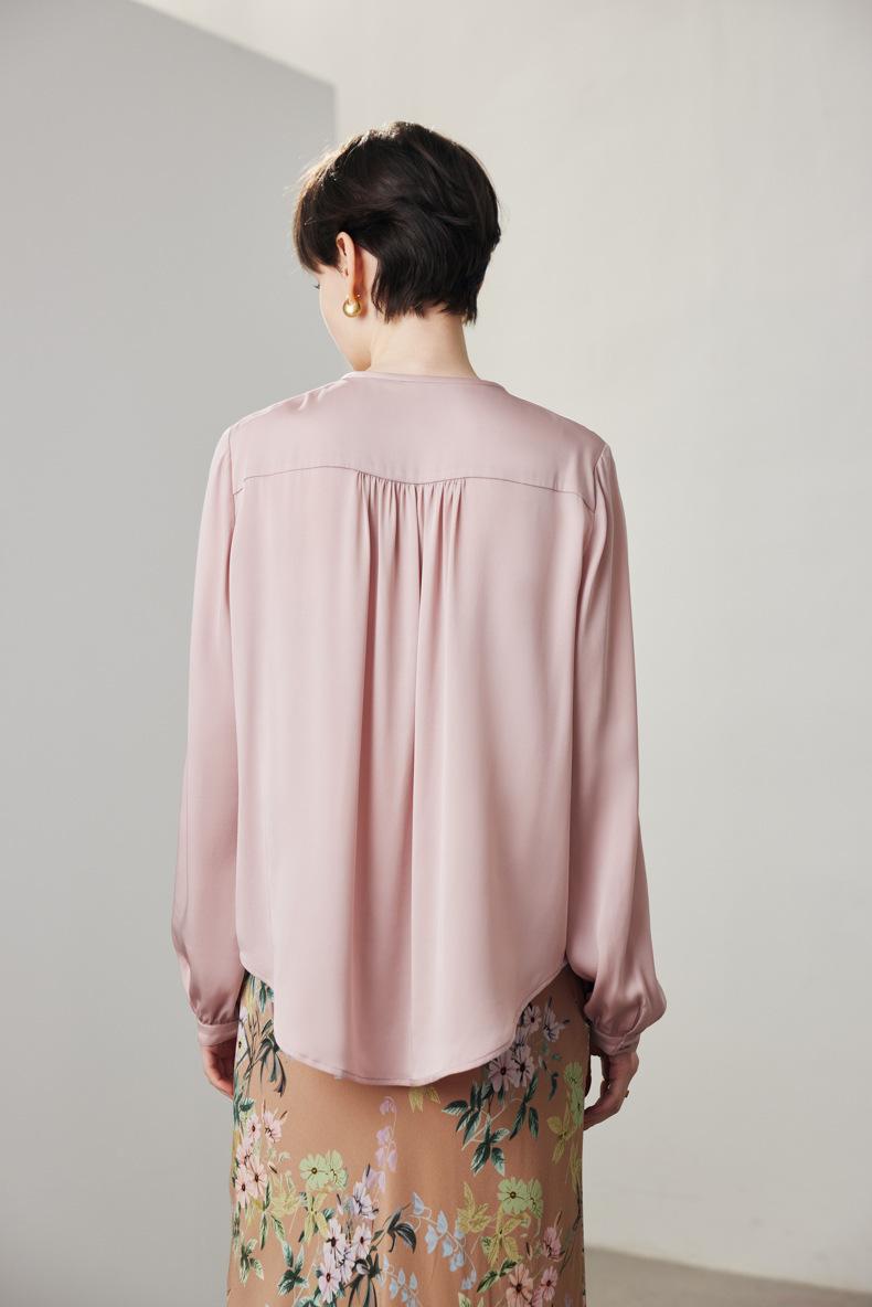 Camisa de Seda para Mujer Primavera y Verano 2025 Cuello Redondo Rayada Color Sólido para Ir al Trabajo 19 Mumi Elástica Doble Joe Camisa de Seda Mulberry